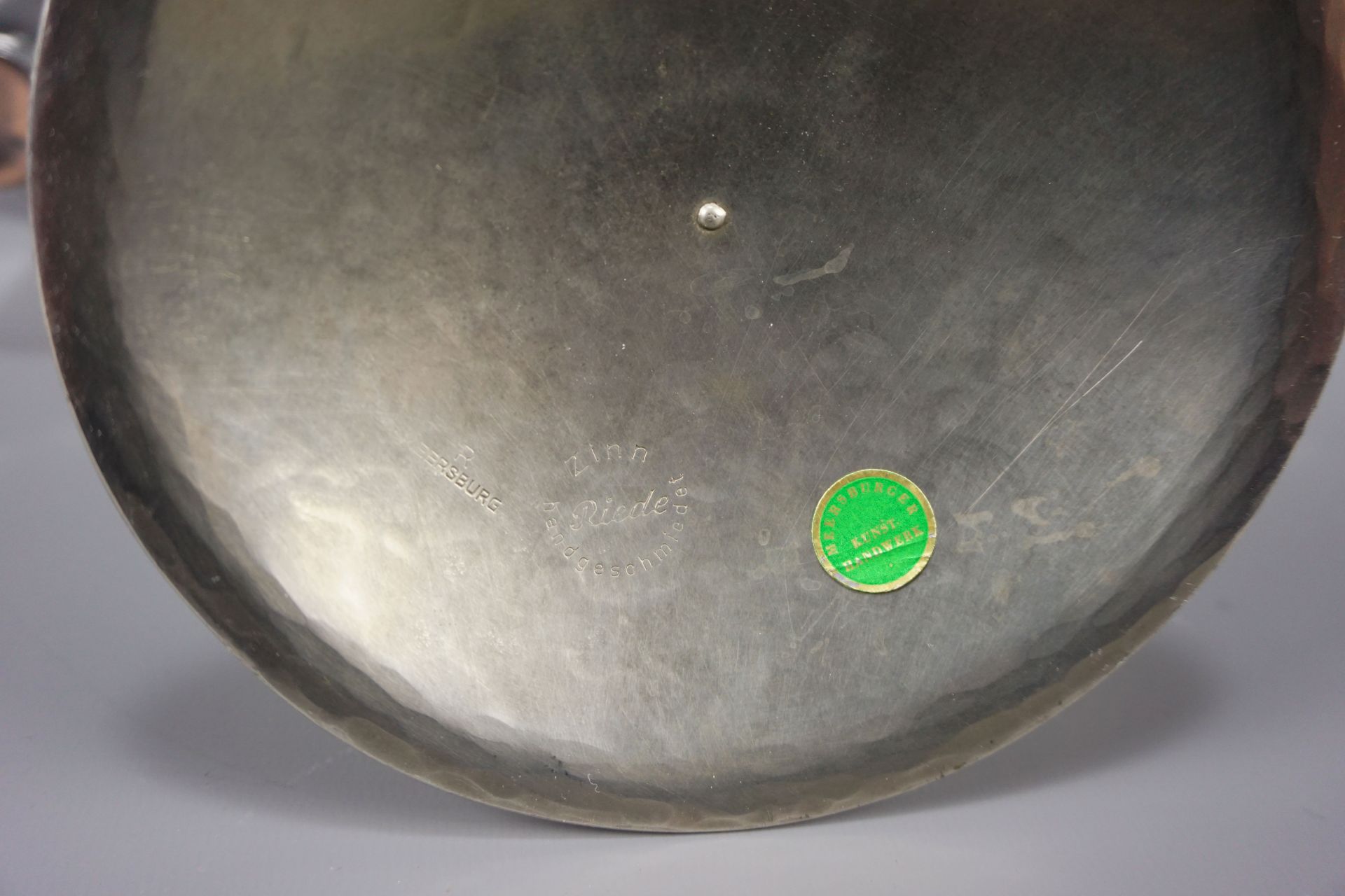 Raichle was a student in the metal workshop at the Bauhaus in Dessau. After his studies, he opened his own art forge, first in Urach, then in Meersburg, where he mainly made objects from brass, copper and pewter. His helping hand as a workshop employee was art forge Wilhelm Riede.