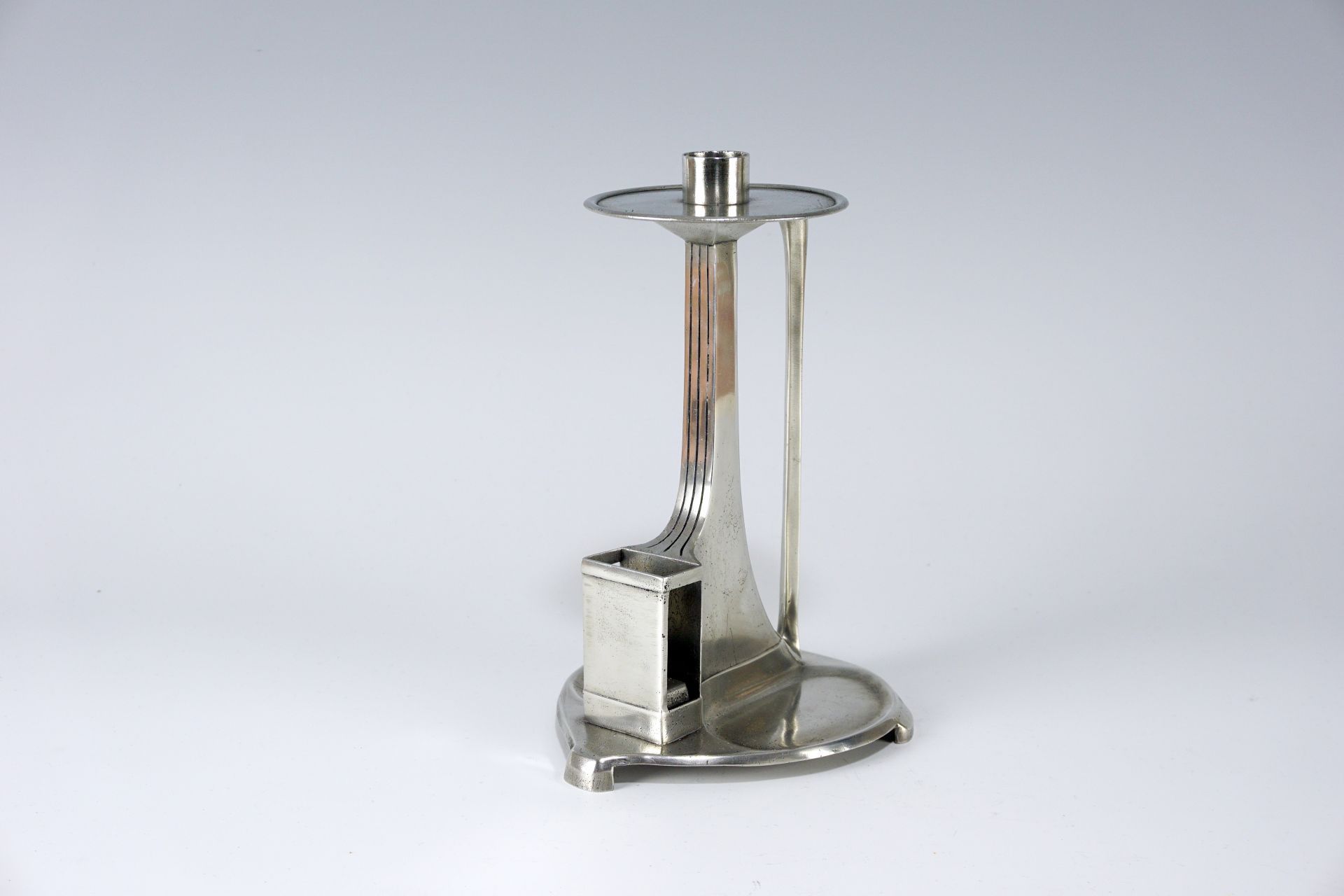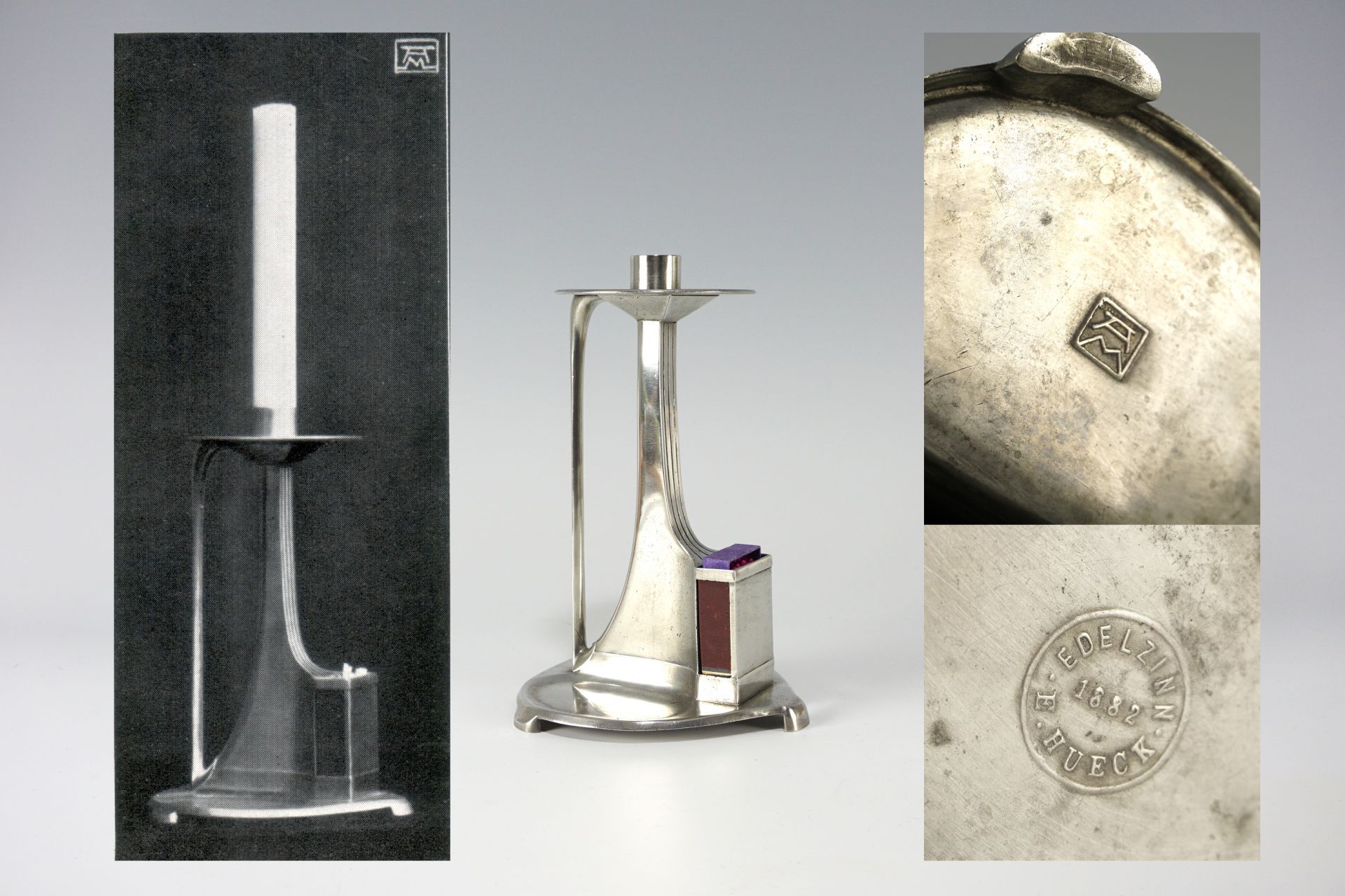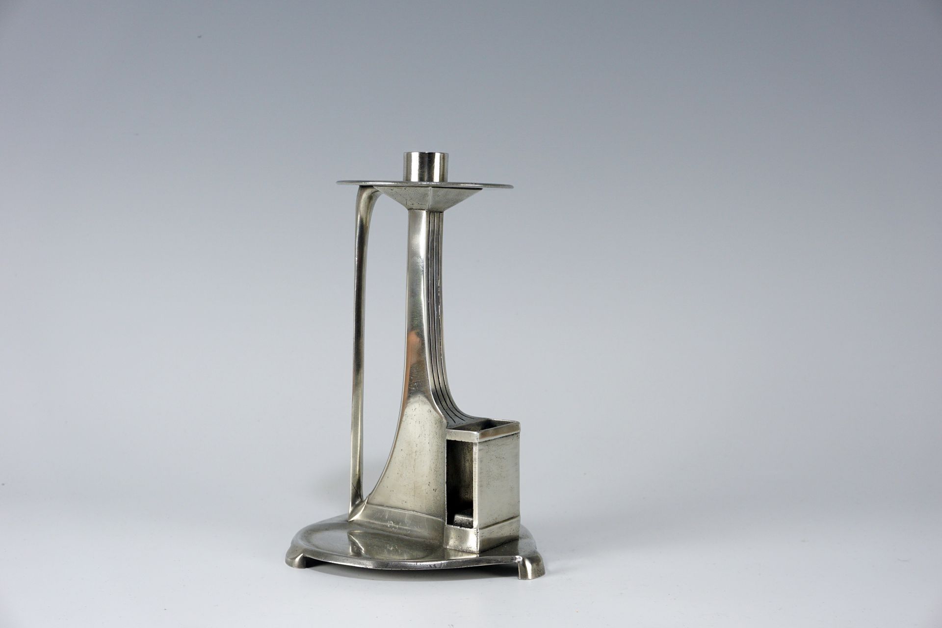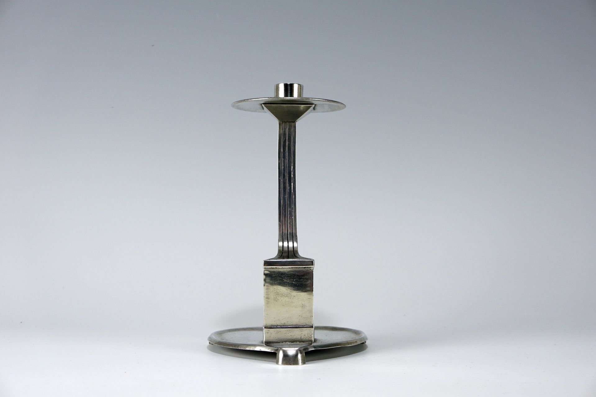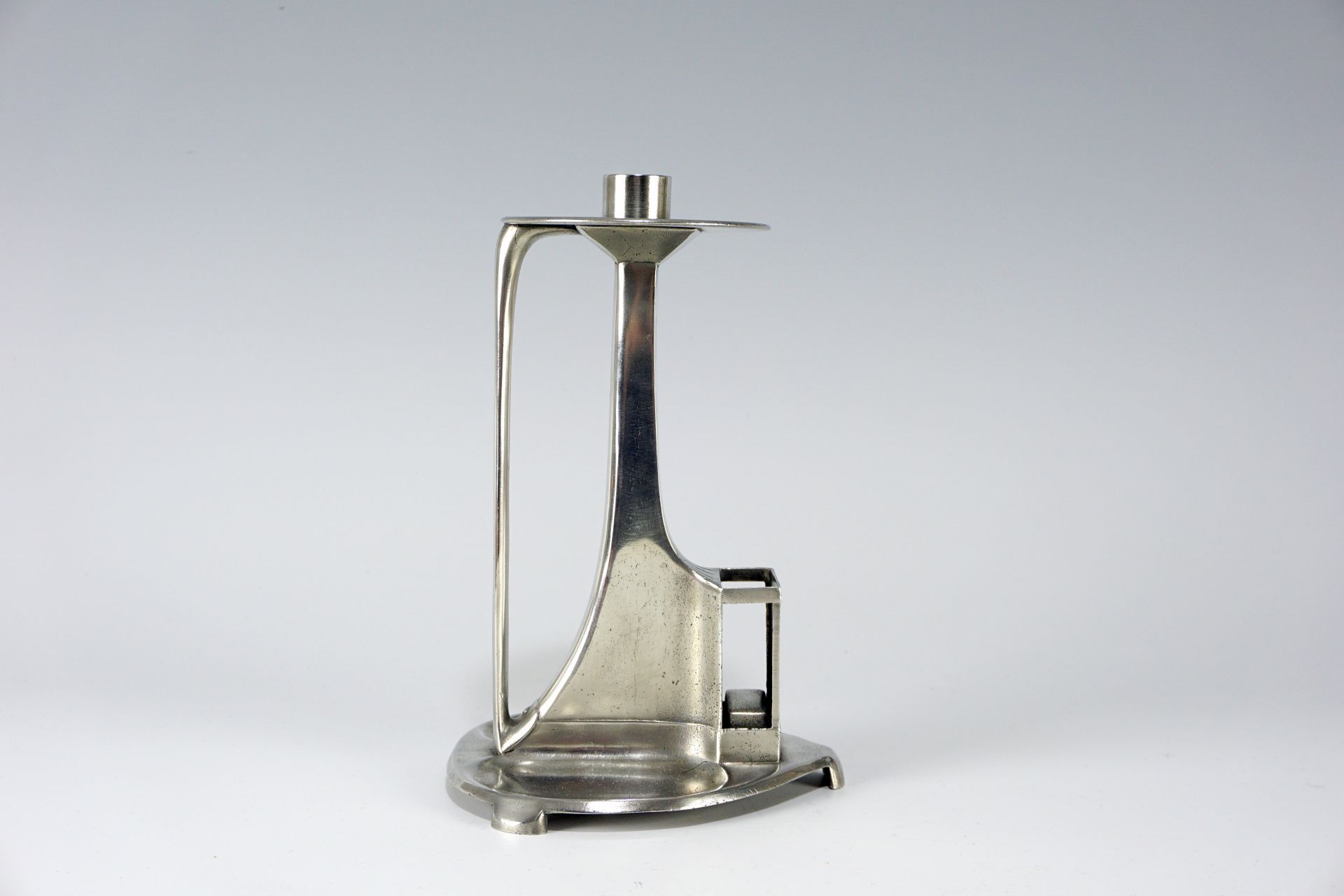This candlestick made of precious pewter was designed by Albin Müller in 1904 and included in the E.Hueck range under model number 1882.