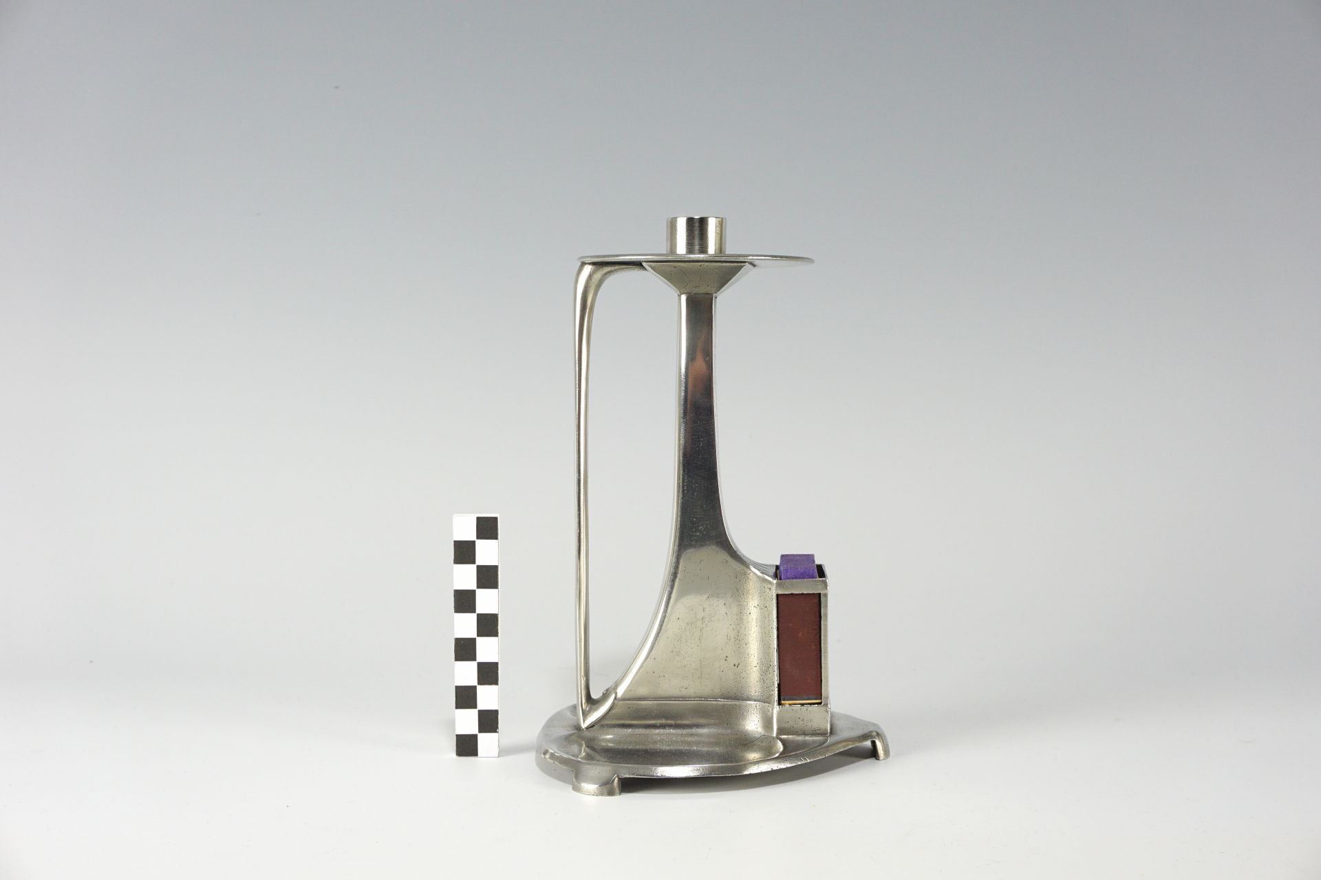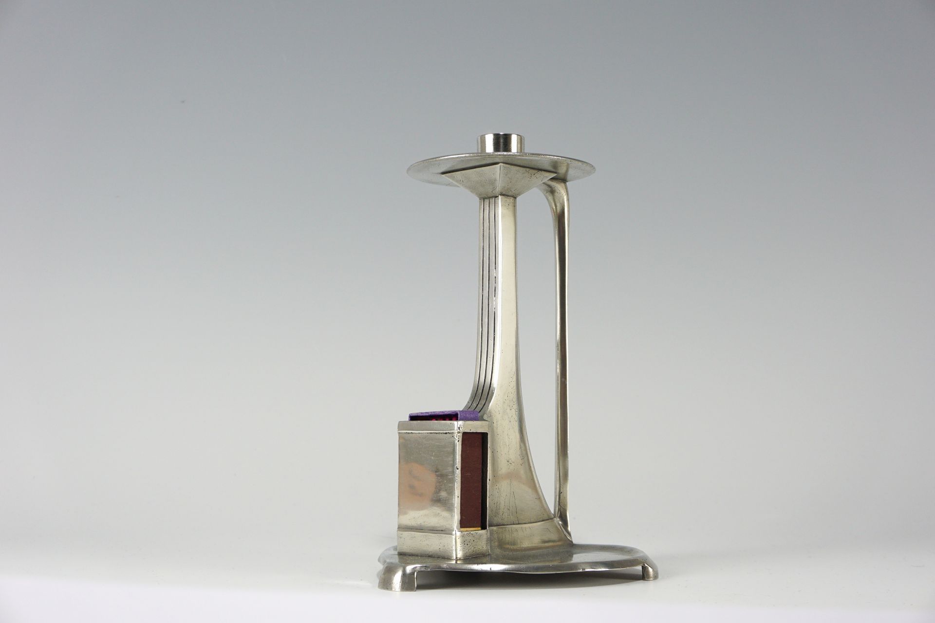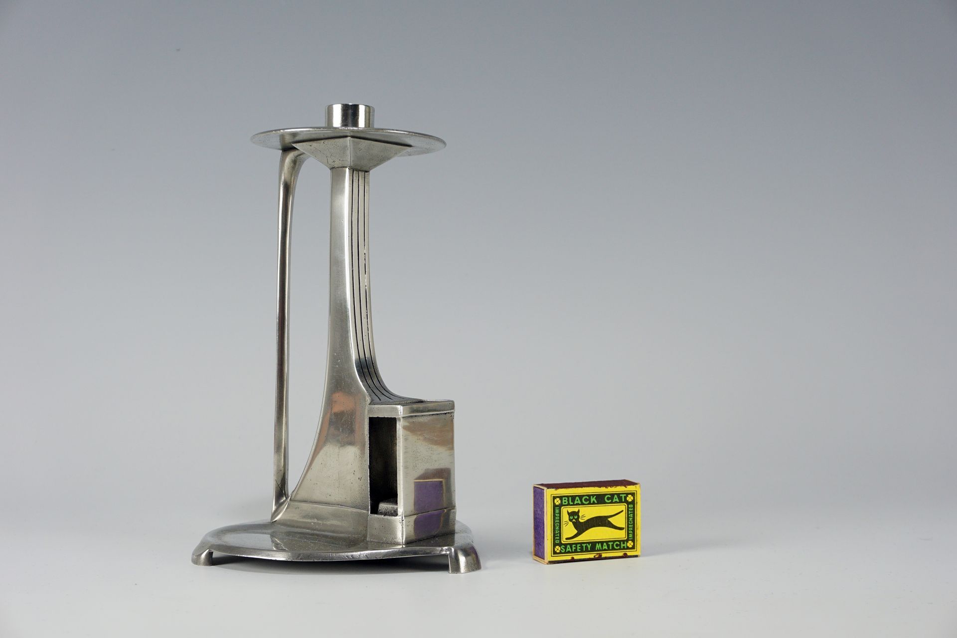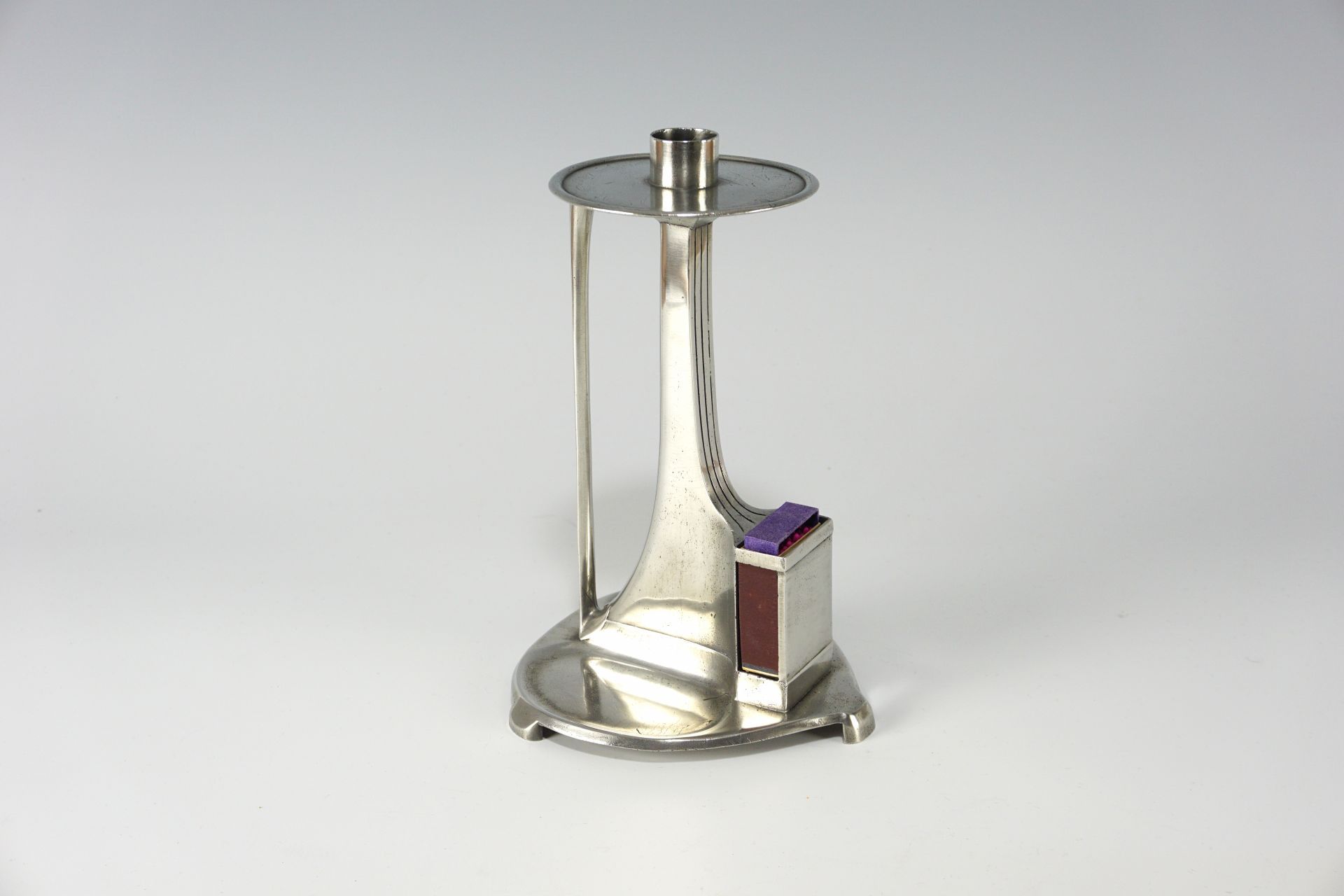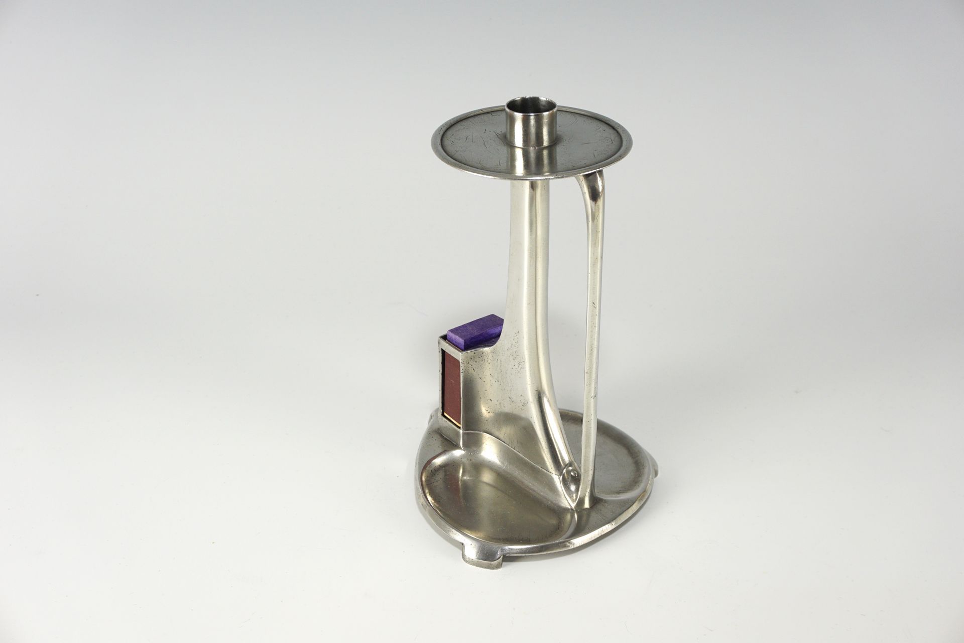 This candlestick made of precious pewter was designed by Albin Müller in 1904 and included in the E.Hueck range under model number 1882.