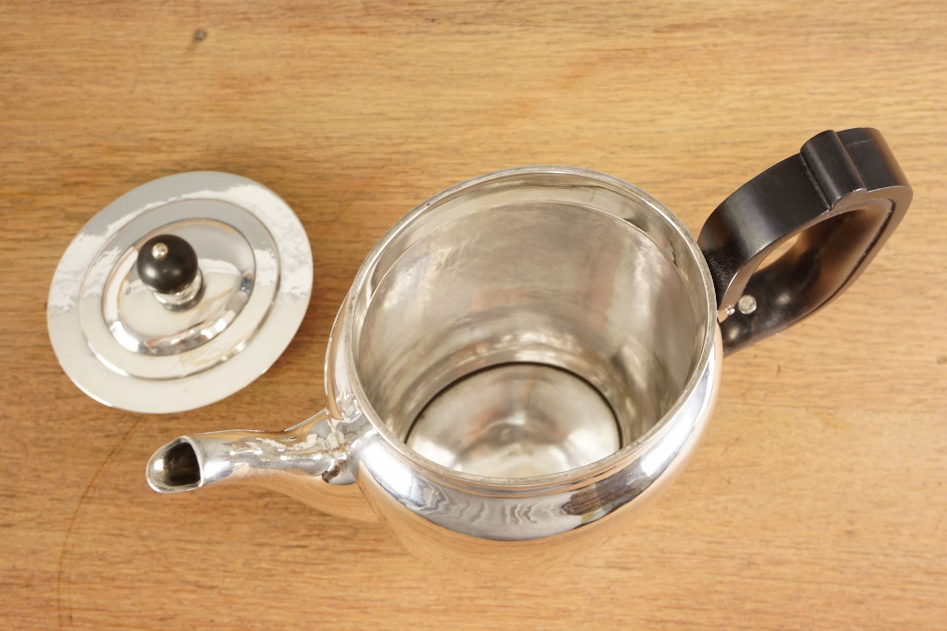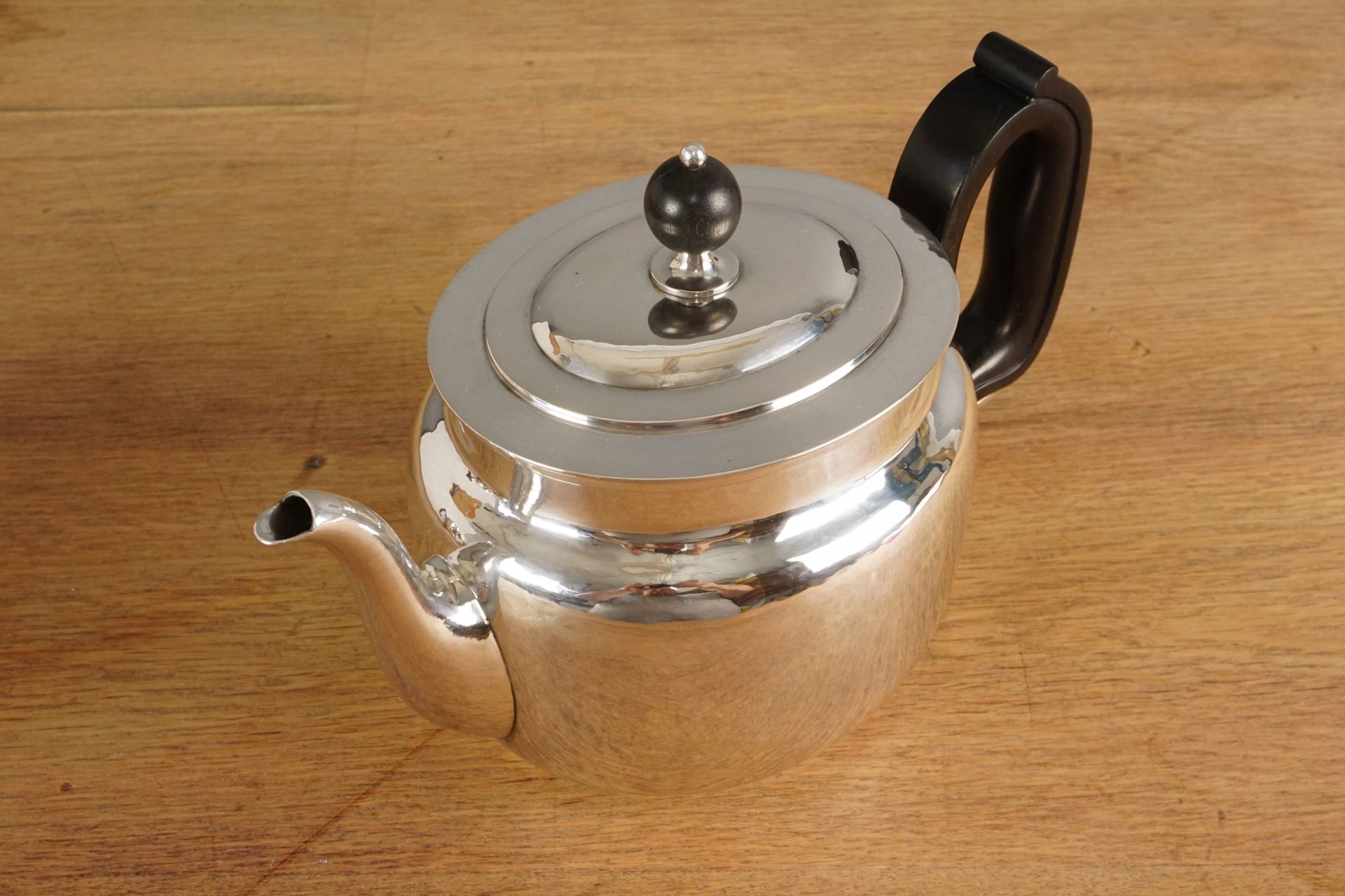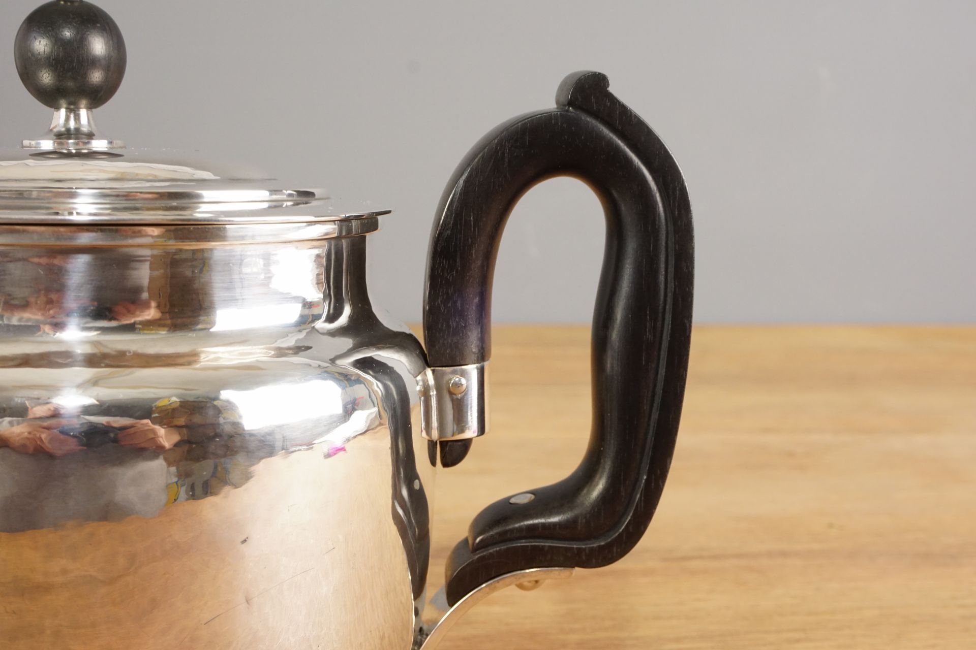 The teapot also has an ebonized wooden handle with a knob on the lid.