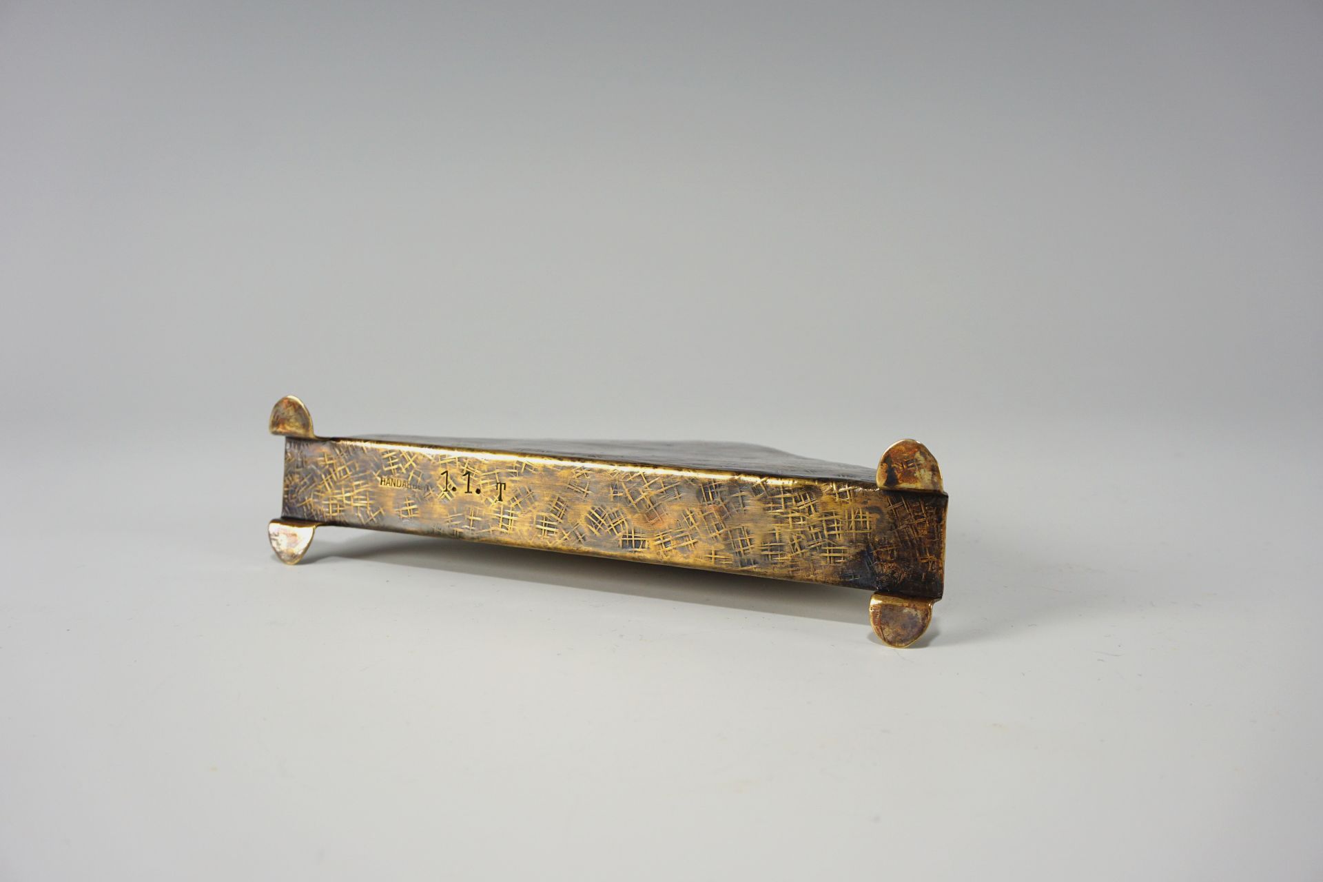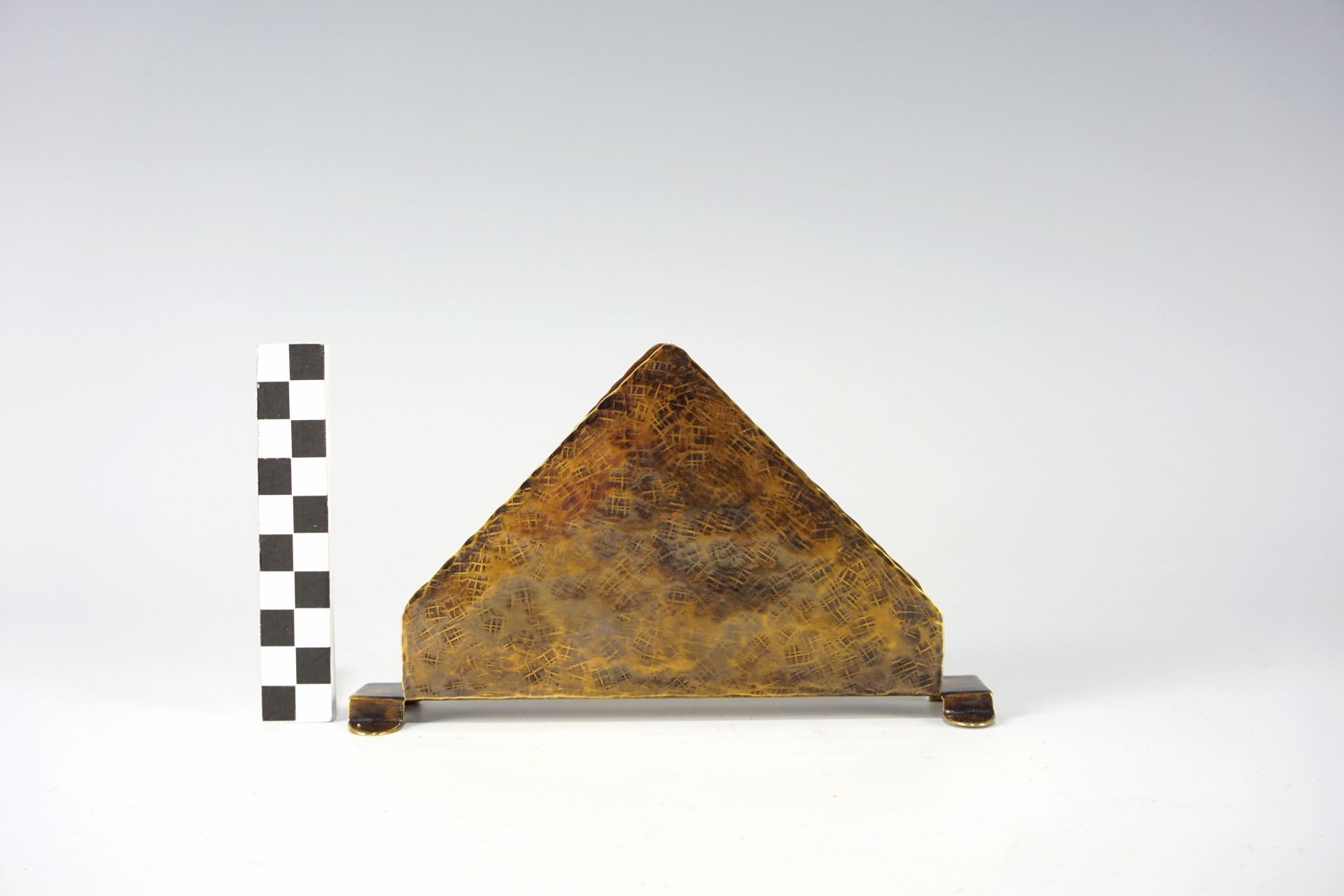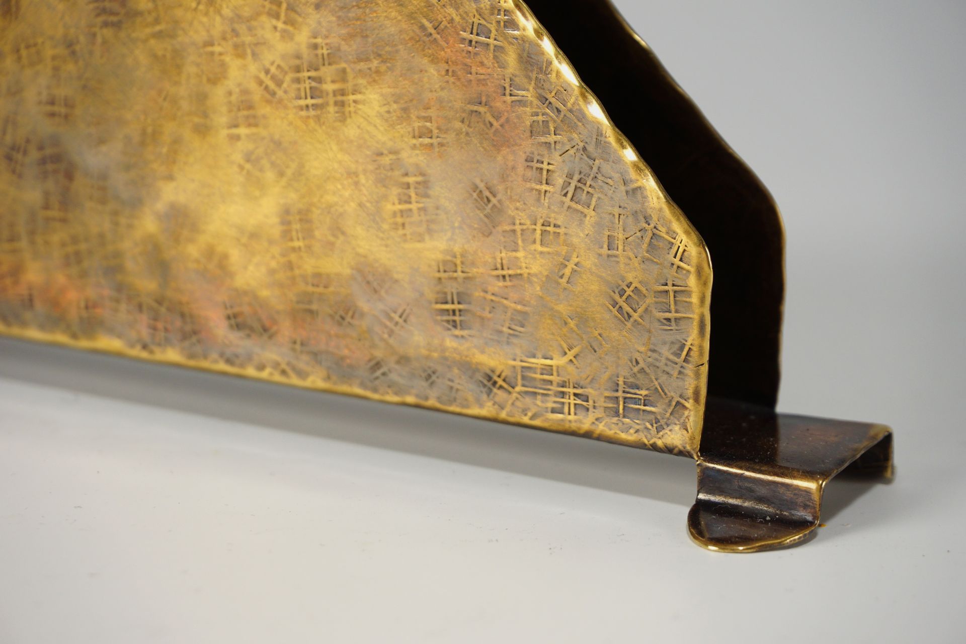 The holder, made and hand-hammered from a single piece of sheet brass, is a wonderful example