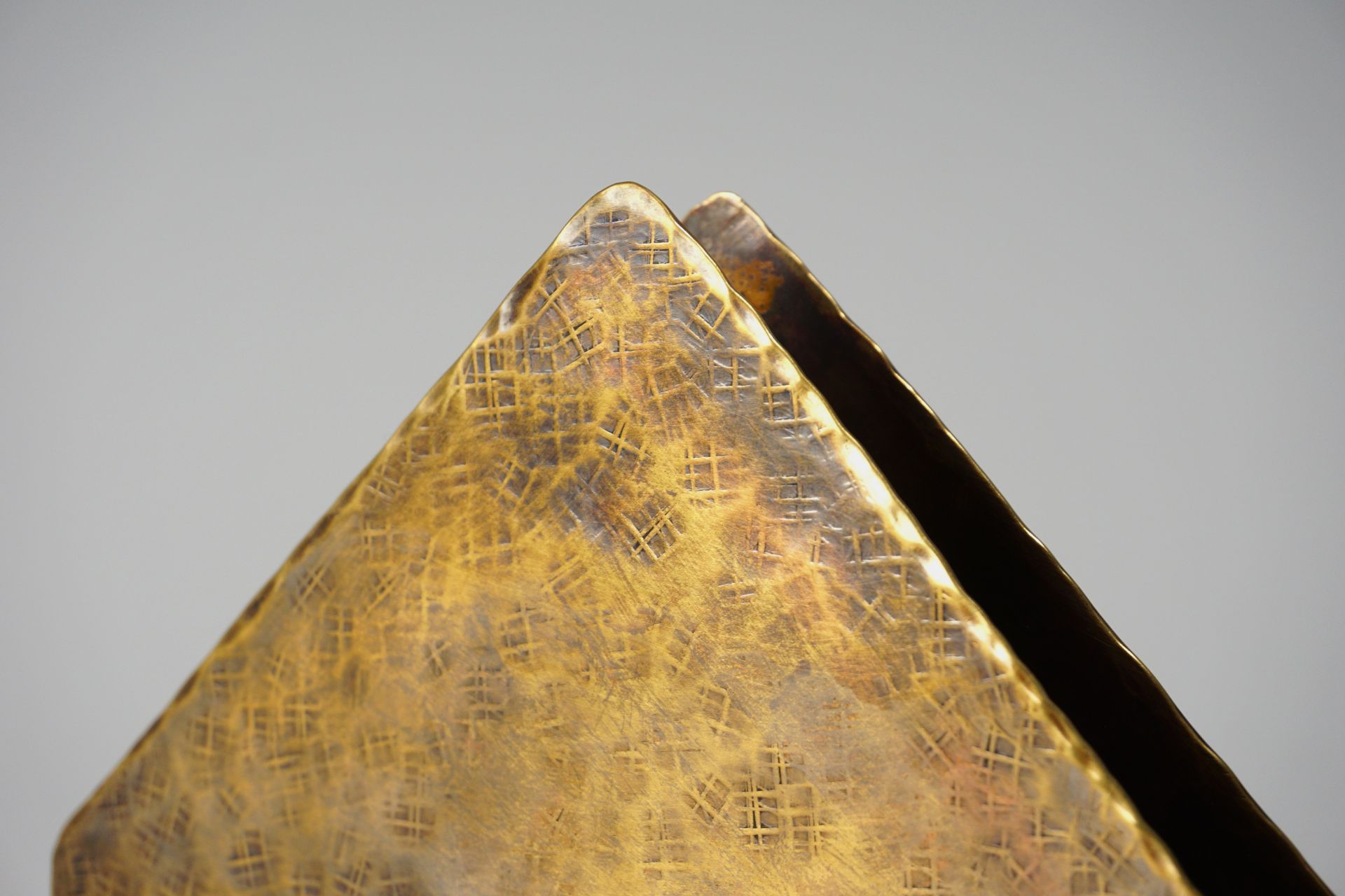 In addition to the classic basic geometric shape of a triangle, the beautiful surface treatment impresses with a punched hammer finish in a line look.