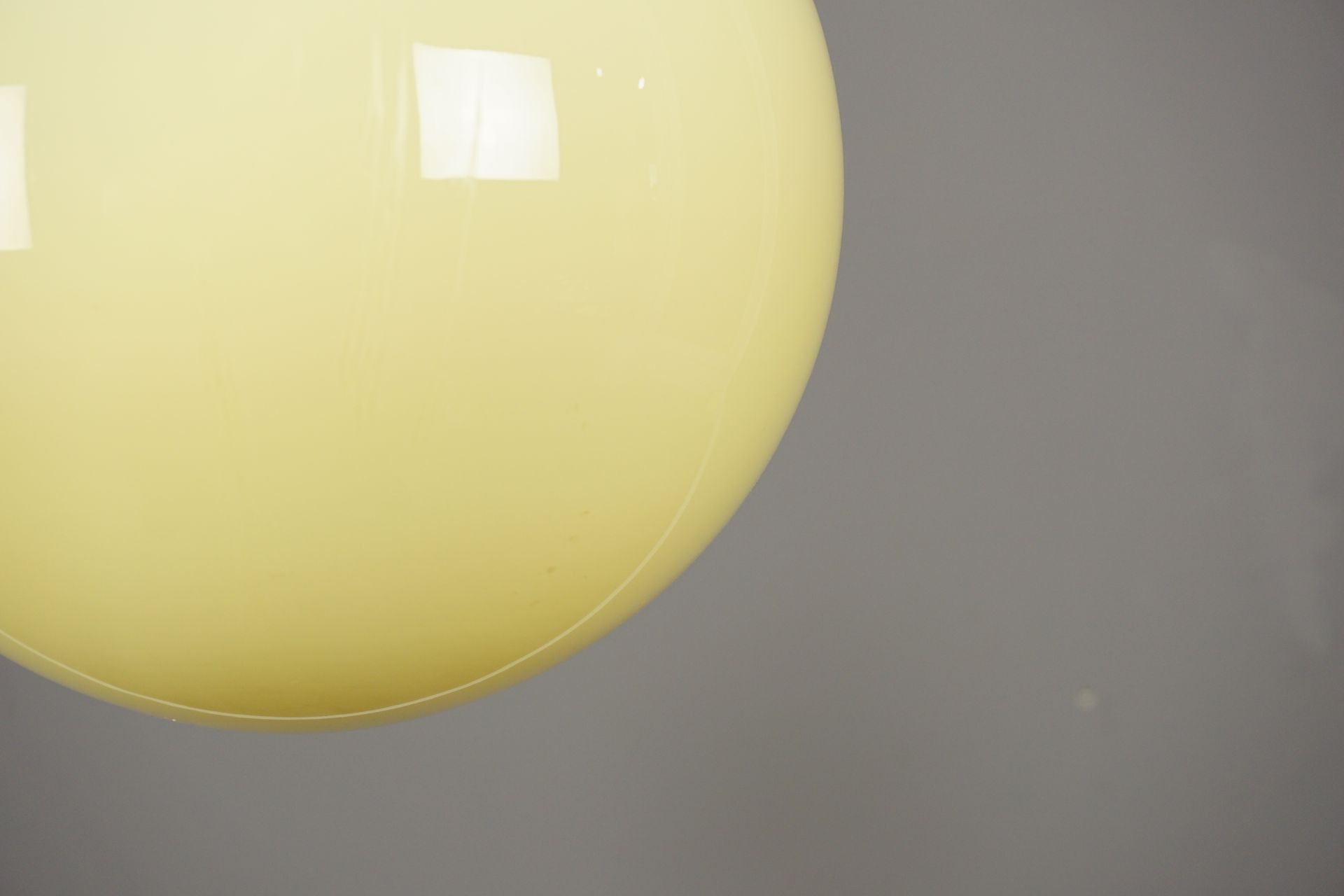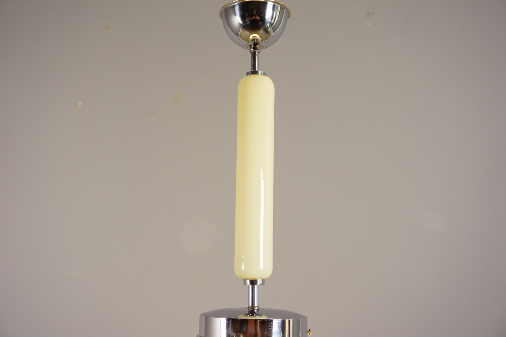 Creamcoloured overlay glassball with identical coloured glasstube in combination with chromed mounting.