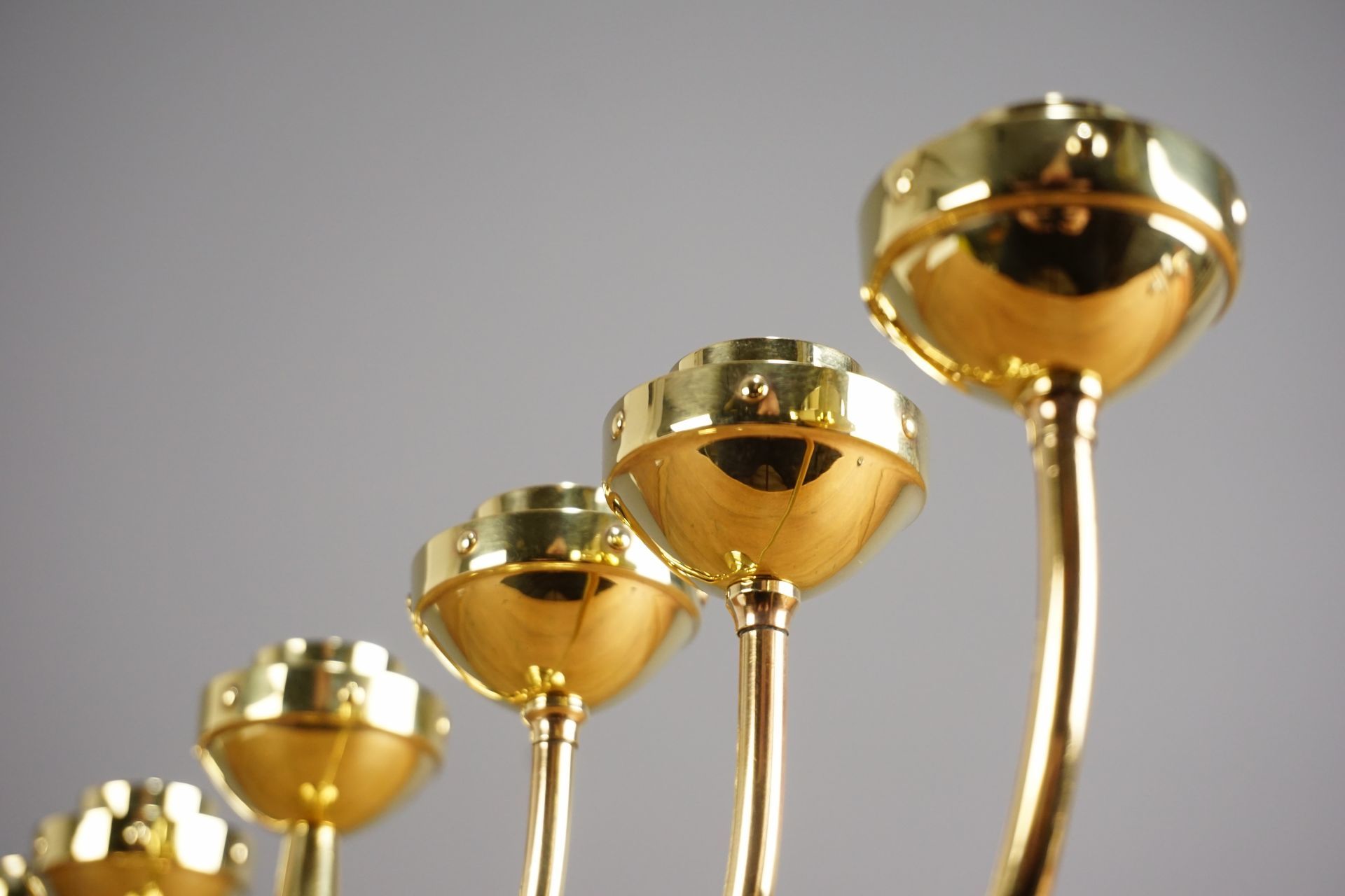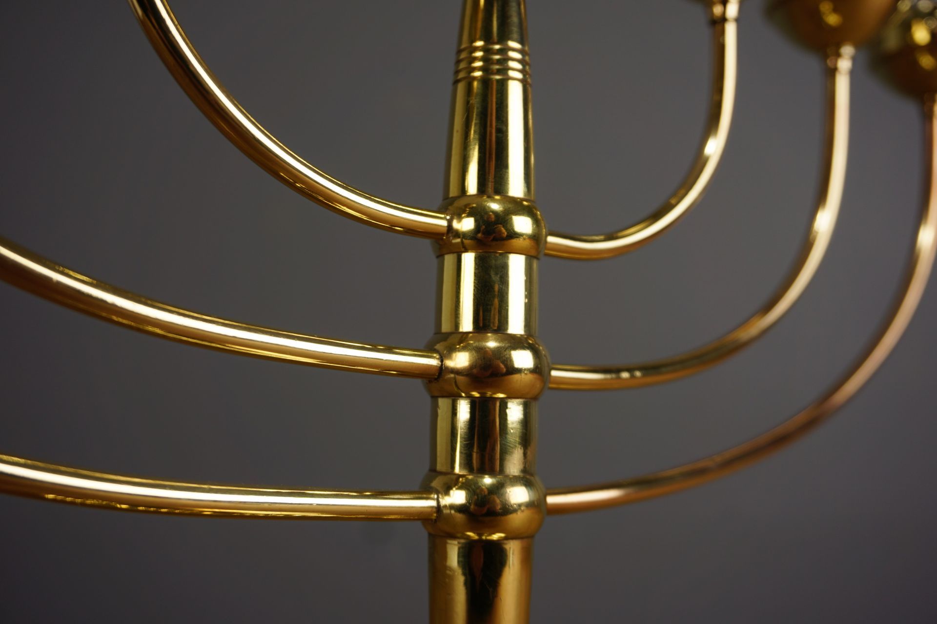The chandelier was completely restored, disassembled, cleaned and highly polished without taking away the character of a design classic that is over 100 years old. Of course, there are still minimal signs of wear due to age and material.