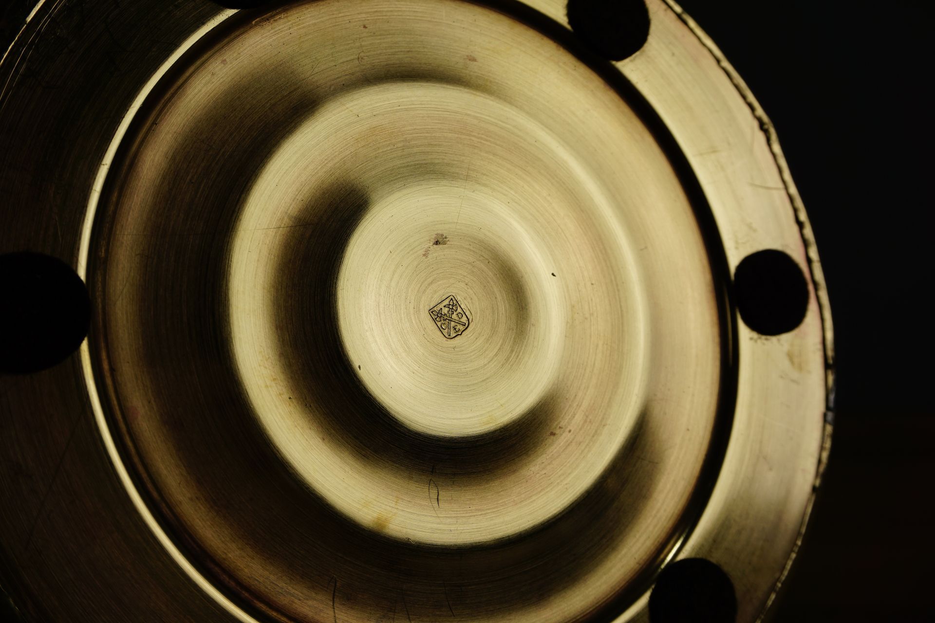 The base is hollow and equipped with a precisely fitting pewter weight on the inside (not visible) for stability.
