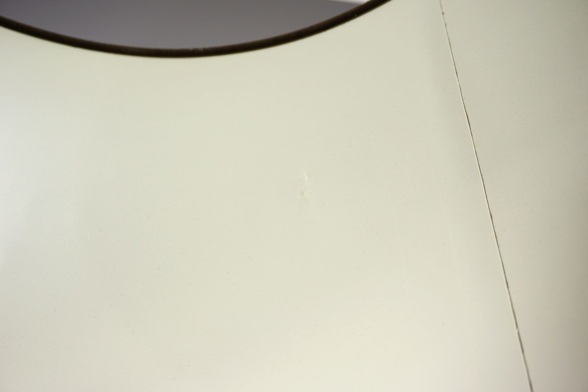 Perfect condition. Just the shade shows a little small break in the inner shell near the vertical seam, which won´t be seen from outside.