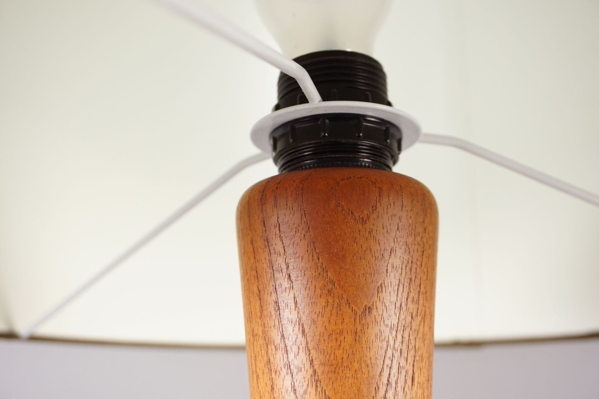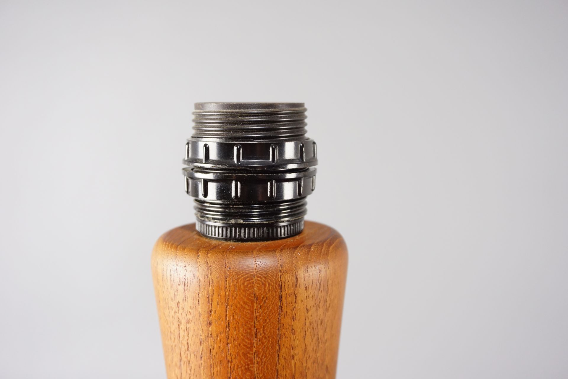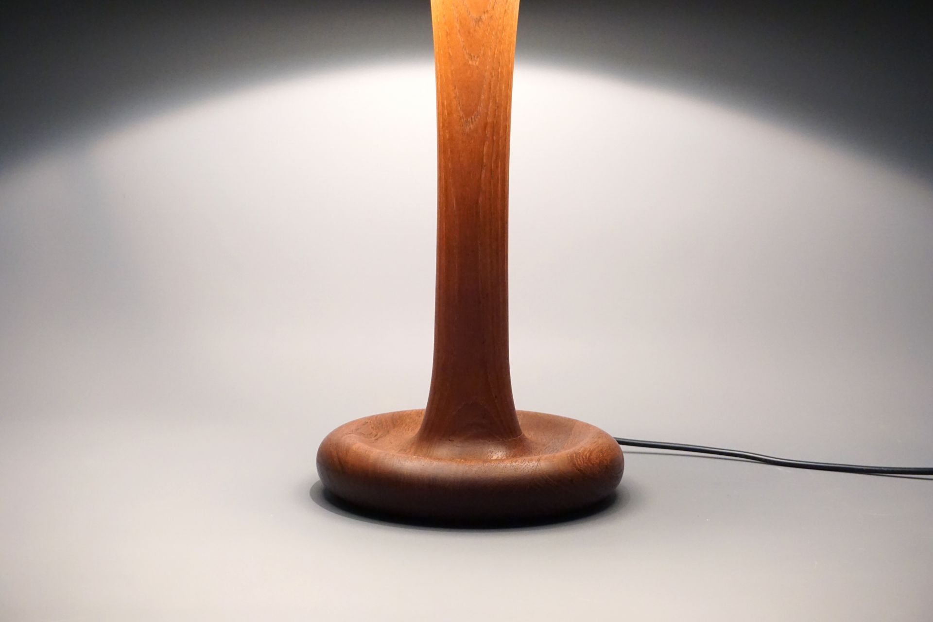 The lamp was completely dismantled, the wood was deeply cleaned and re-preserved with teak oil.