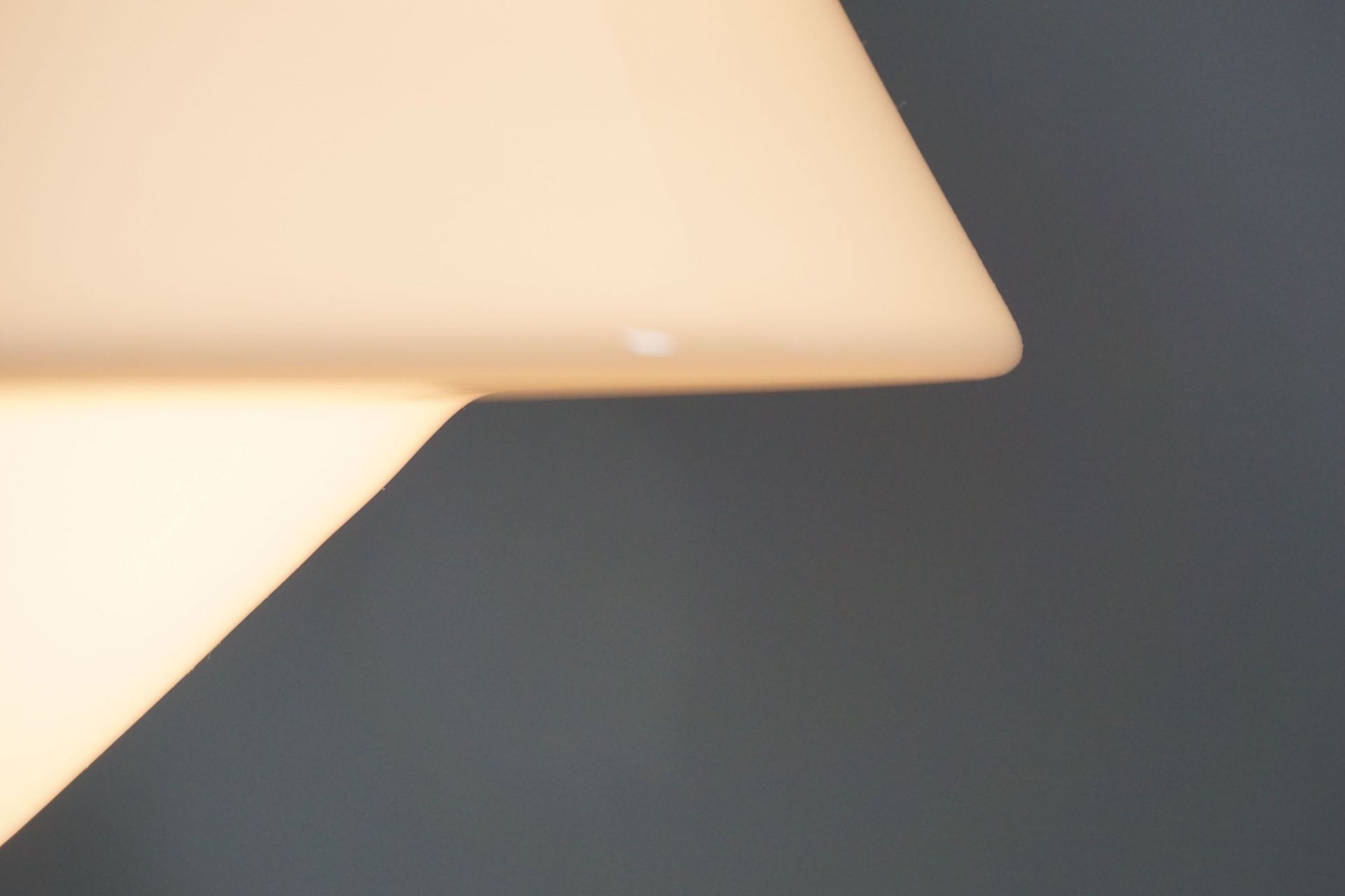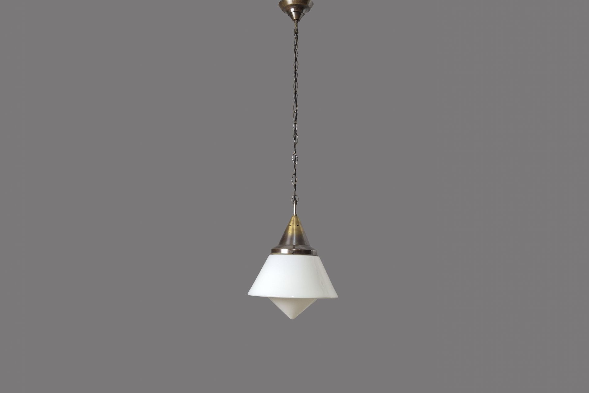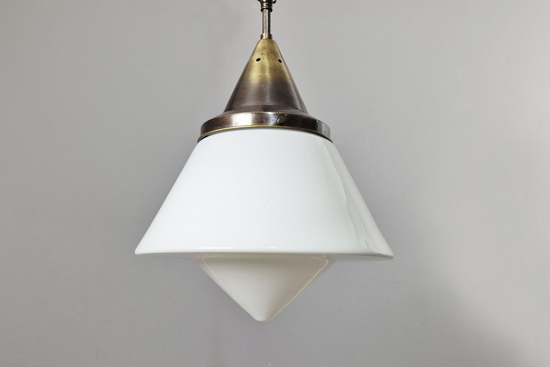 The white opal glass shade consists of cones that appear to be adjacent to one another.