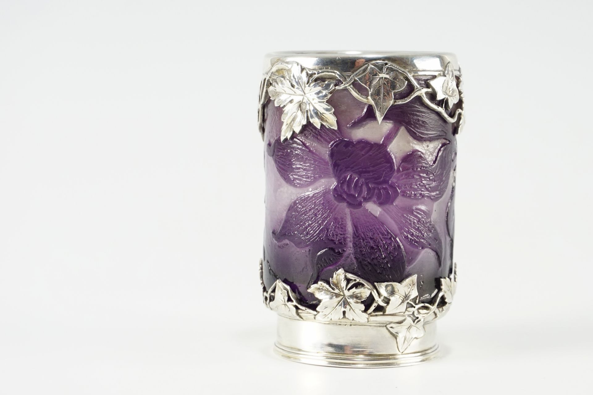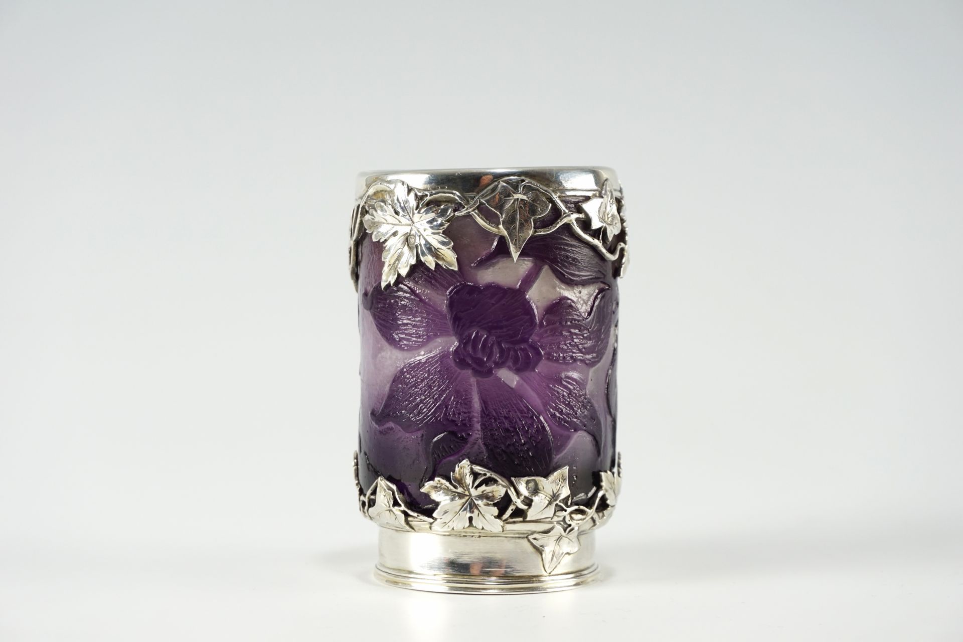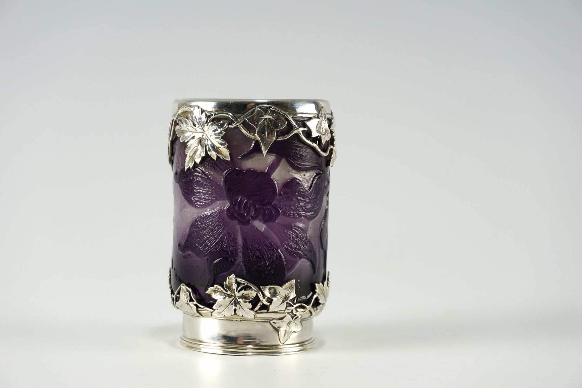 Émile Gallé - Cristallerie Nancy Clematis vase with silver fittings around 1895