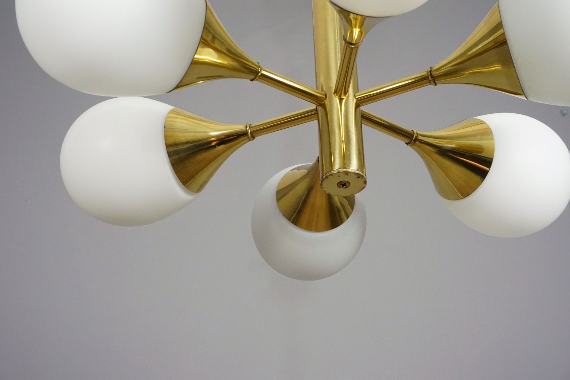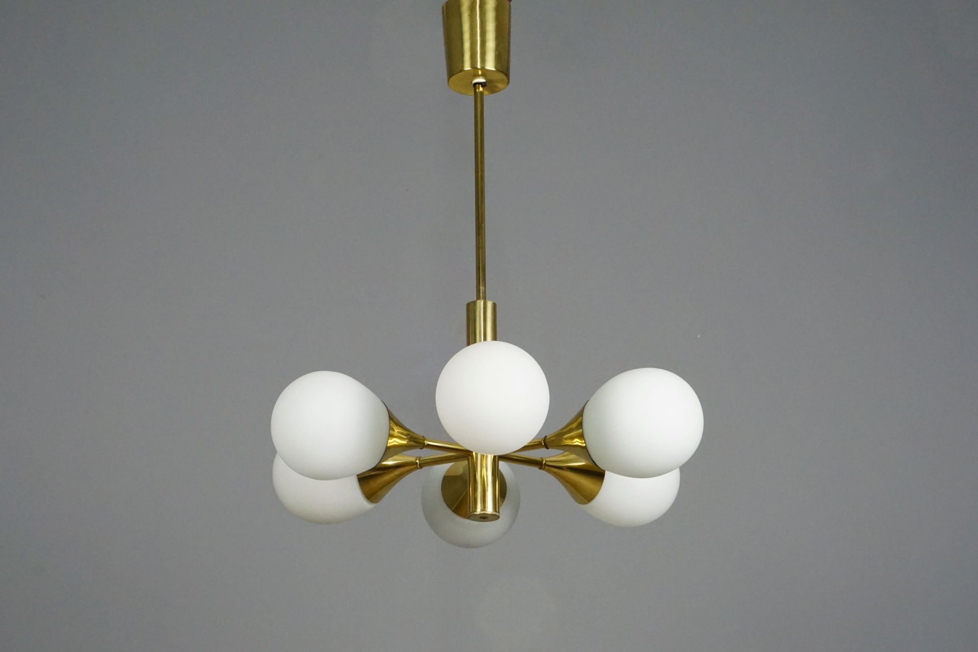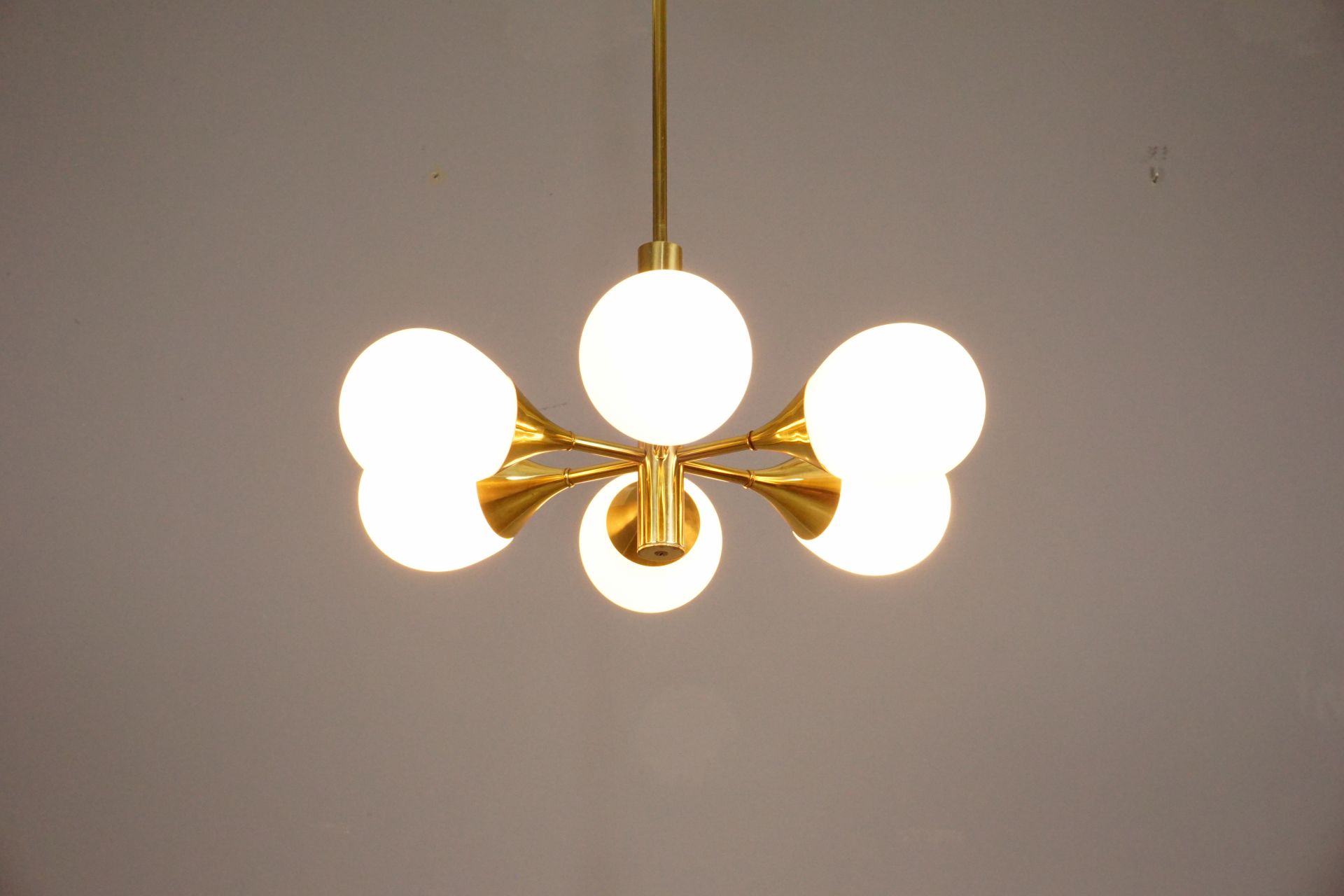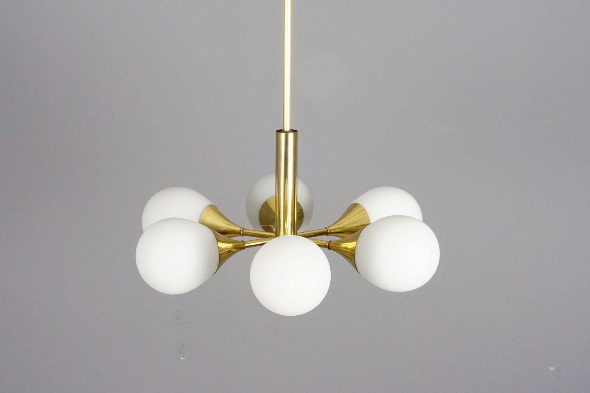 Design: ceiling lamp with 6 frosted white drop-shaped glass spheres