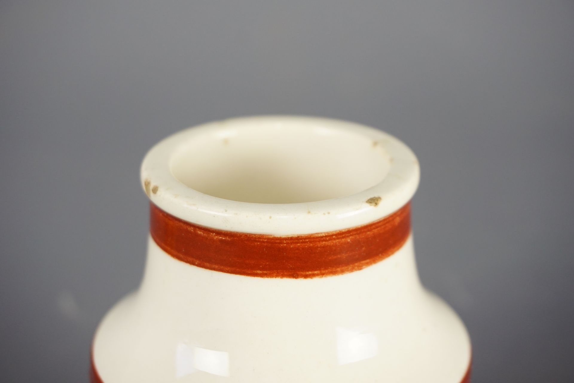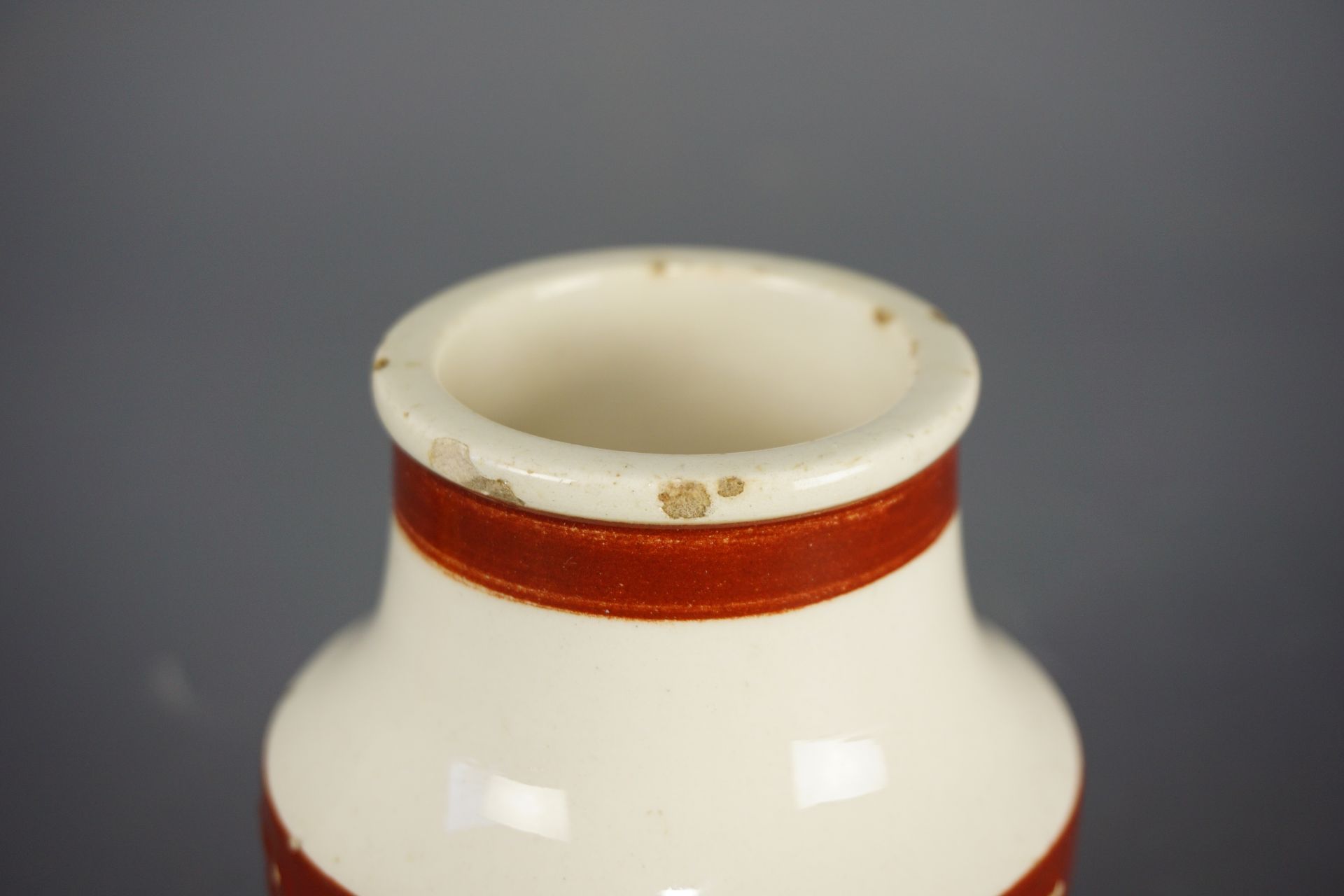 The upper part is white with a reddish-brown ring on the neck, while the lower, bulbous part is only reddish-brown.