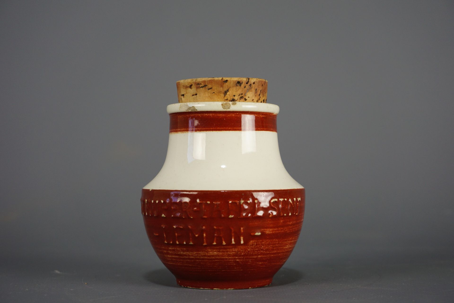 It is a mustard pot that was made for a small mustard factory in Eystrup - Lower Saxony.