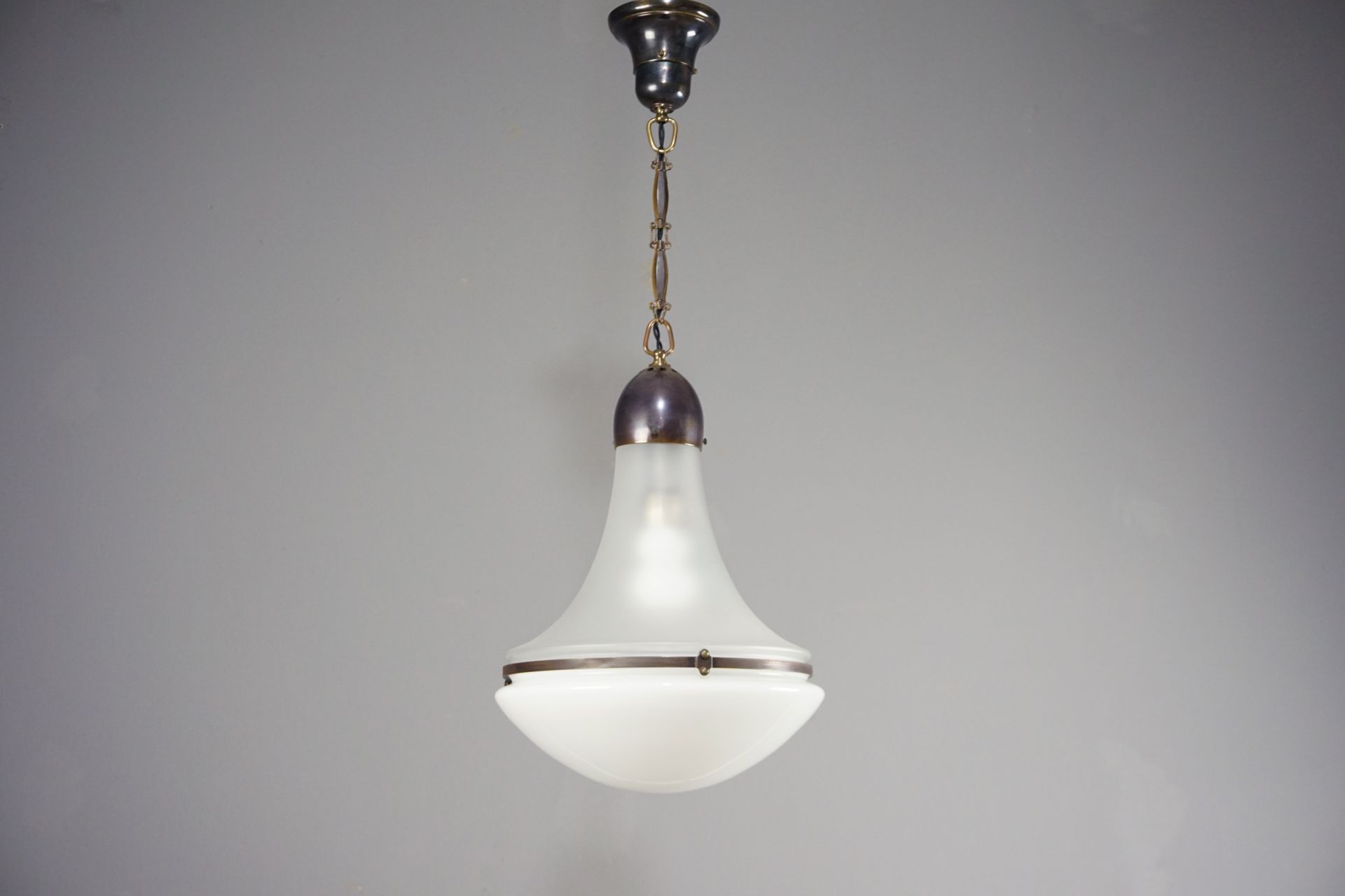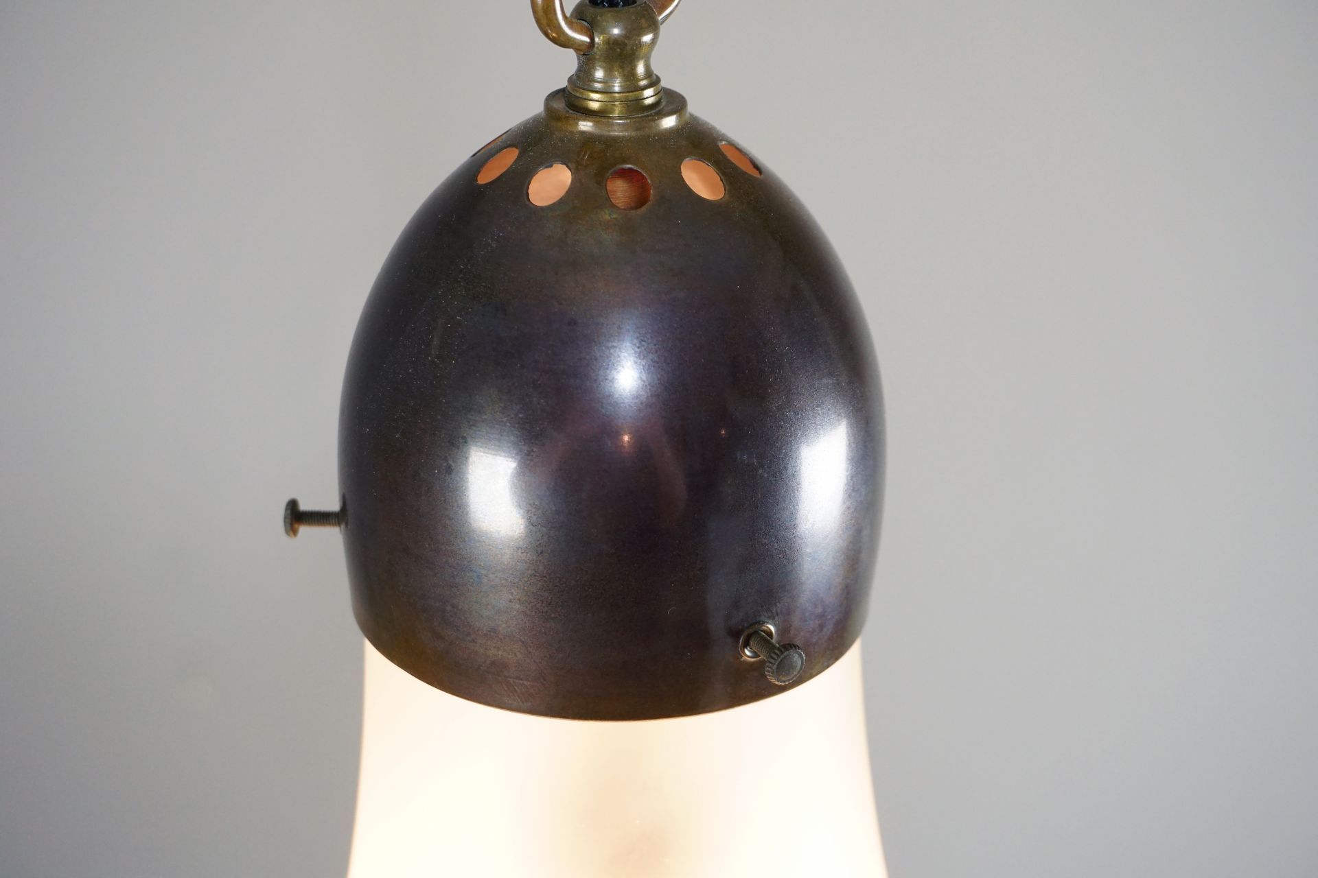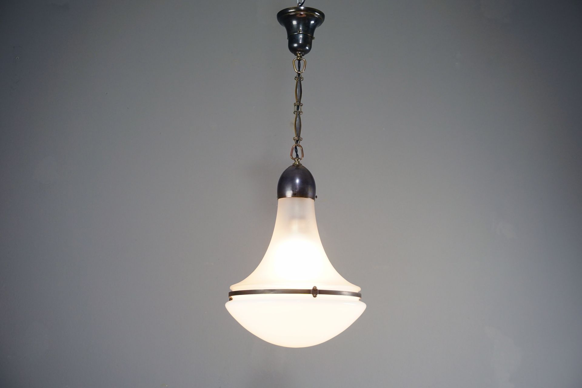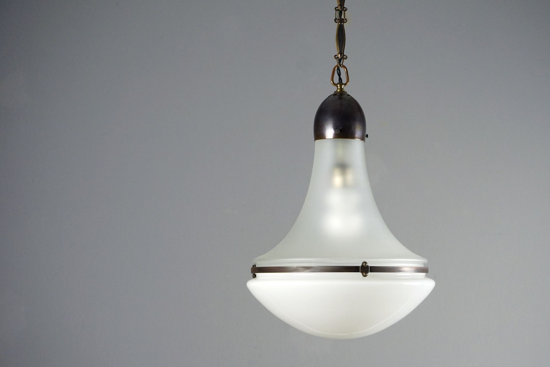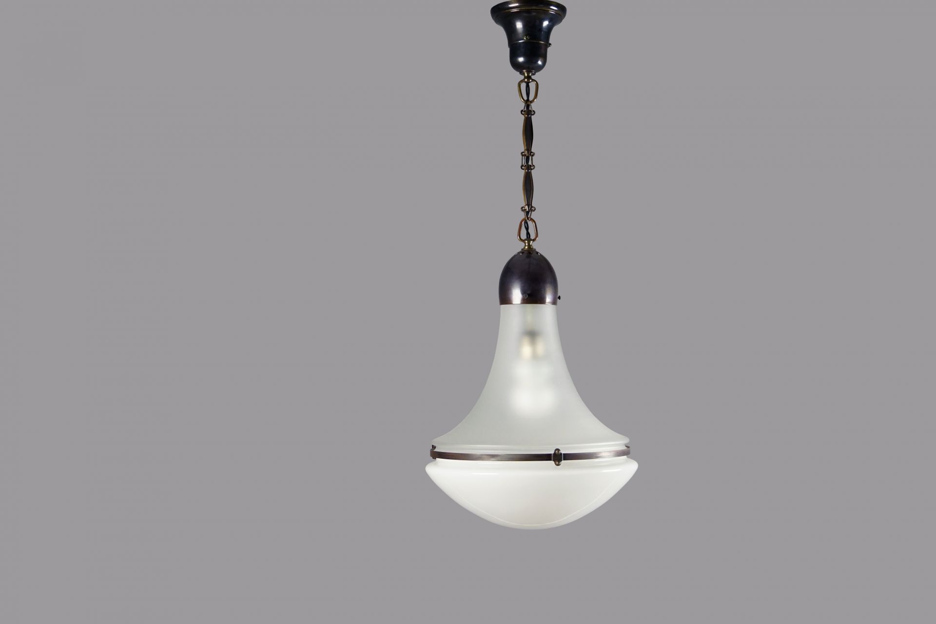 The Luzette is one of the German lighting classics, which has lost none of its elegance and charisma even more than 100 years after its creation and design. Gracefully made of satined clear glass and/or opal glass, based on a design by the producer S&H. The Luzette was available in different sizes, with a chain, with a rod, as well as with interchangeable glass parts.