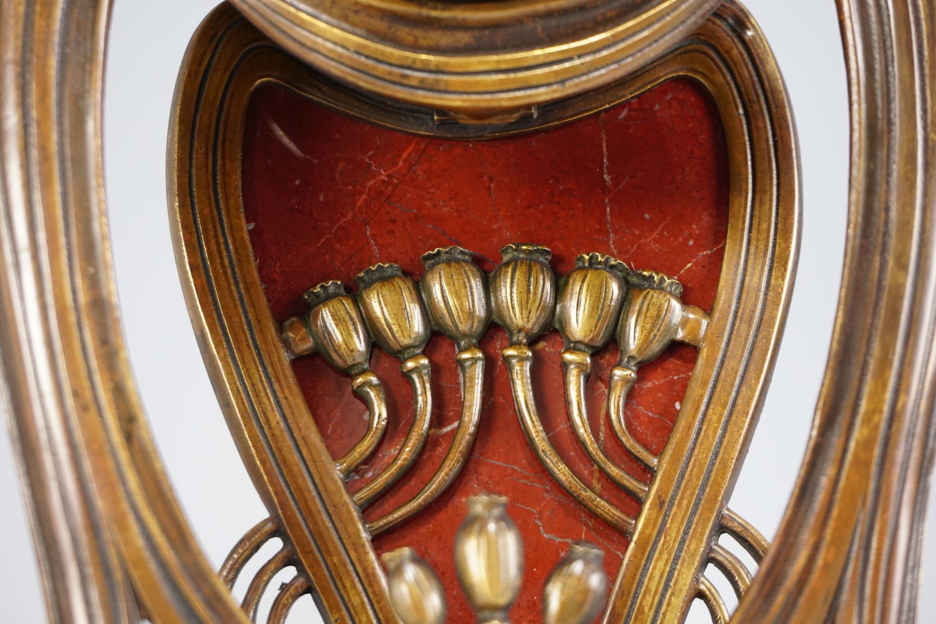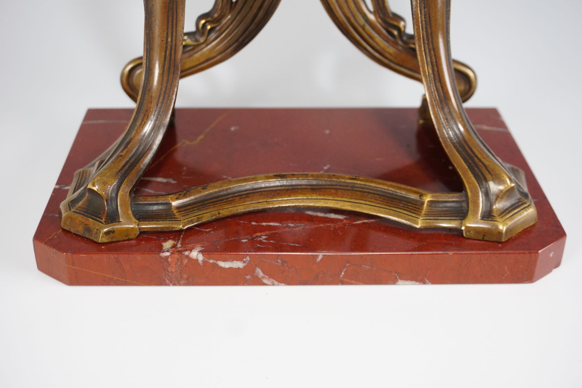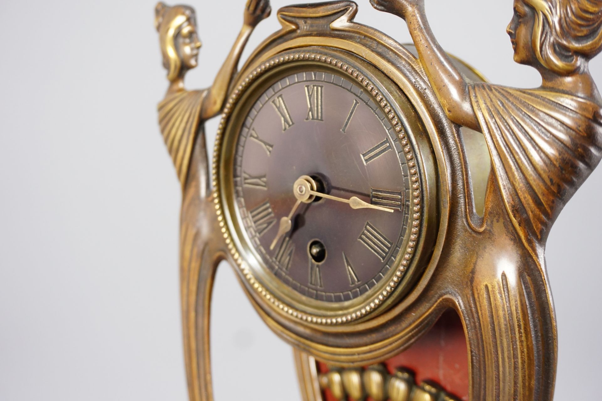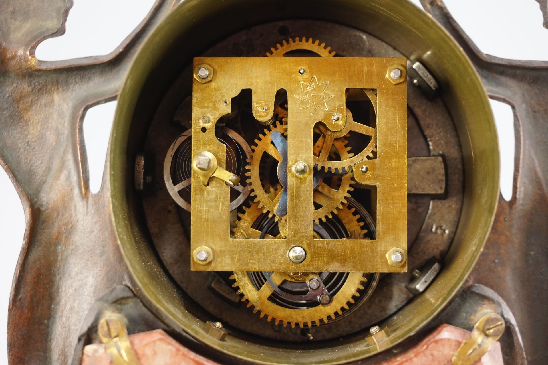 Junghans around 1890-1900. Rustred marble in combination with bronzed brass fittings.