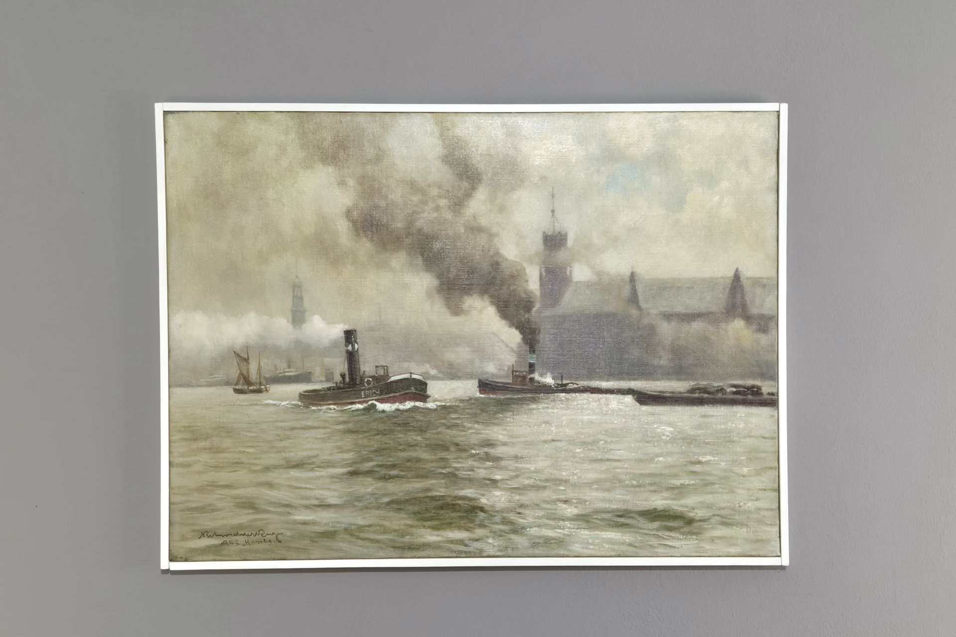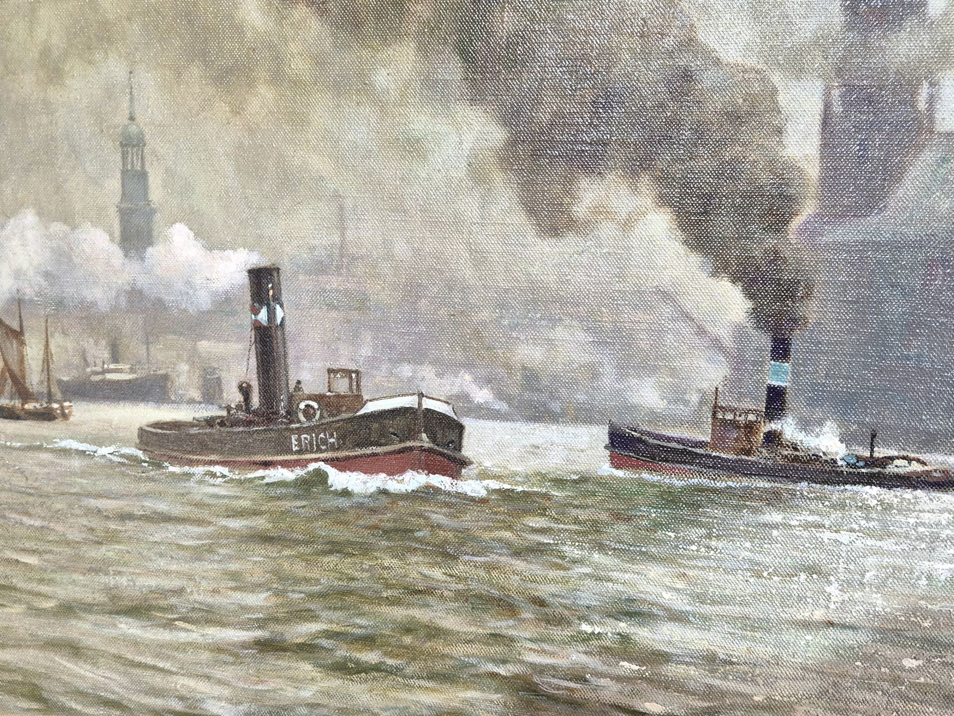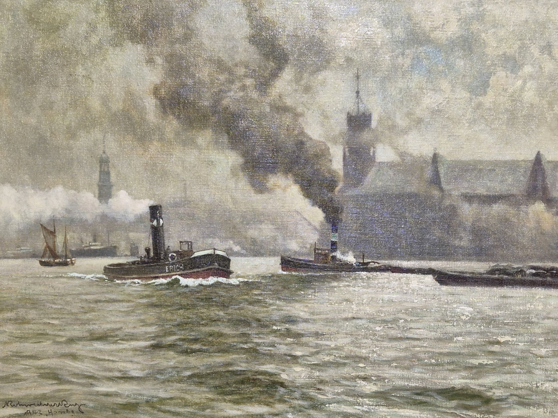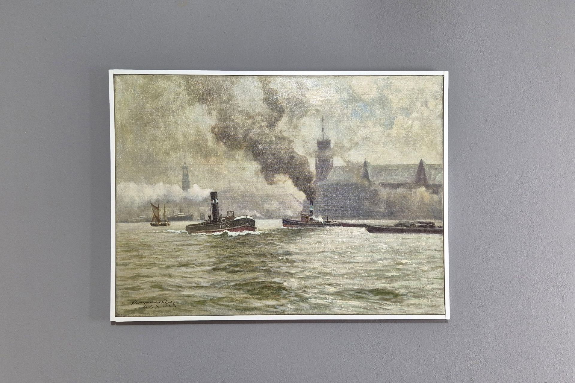 Very beautiful Hamburg painting by the well-known marine painter Karl Rohwedder Ruge (1865 ~ 1943)
