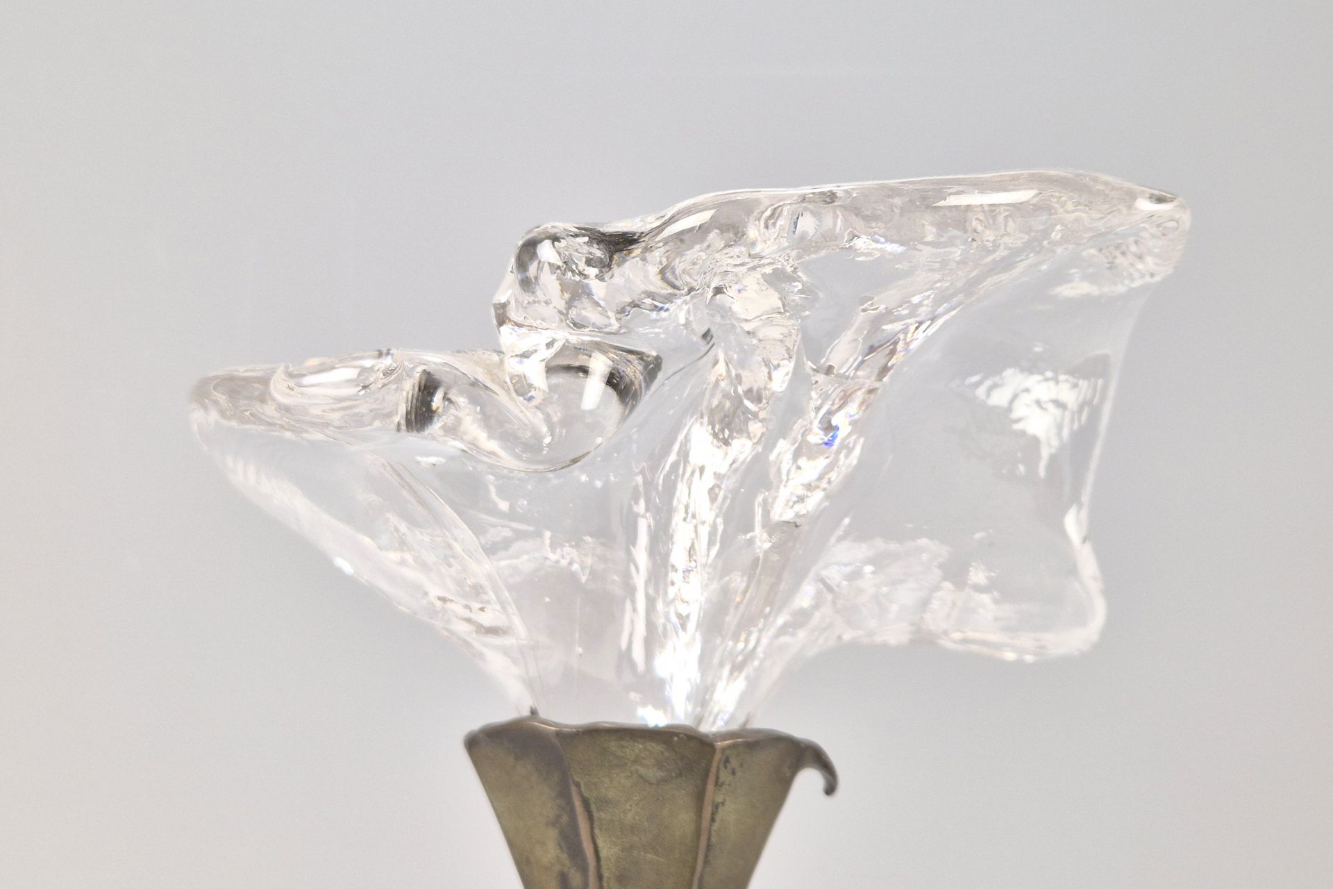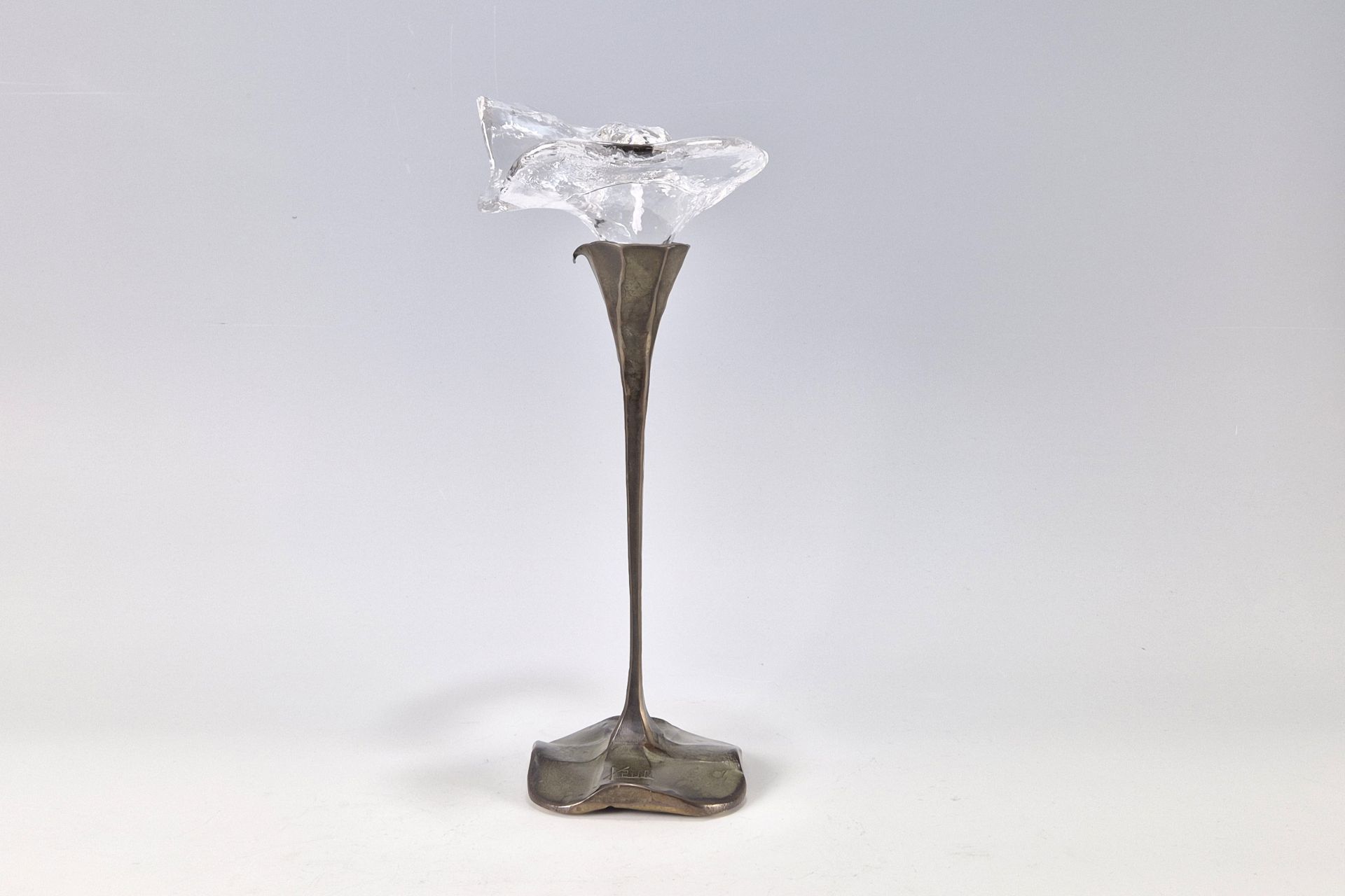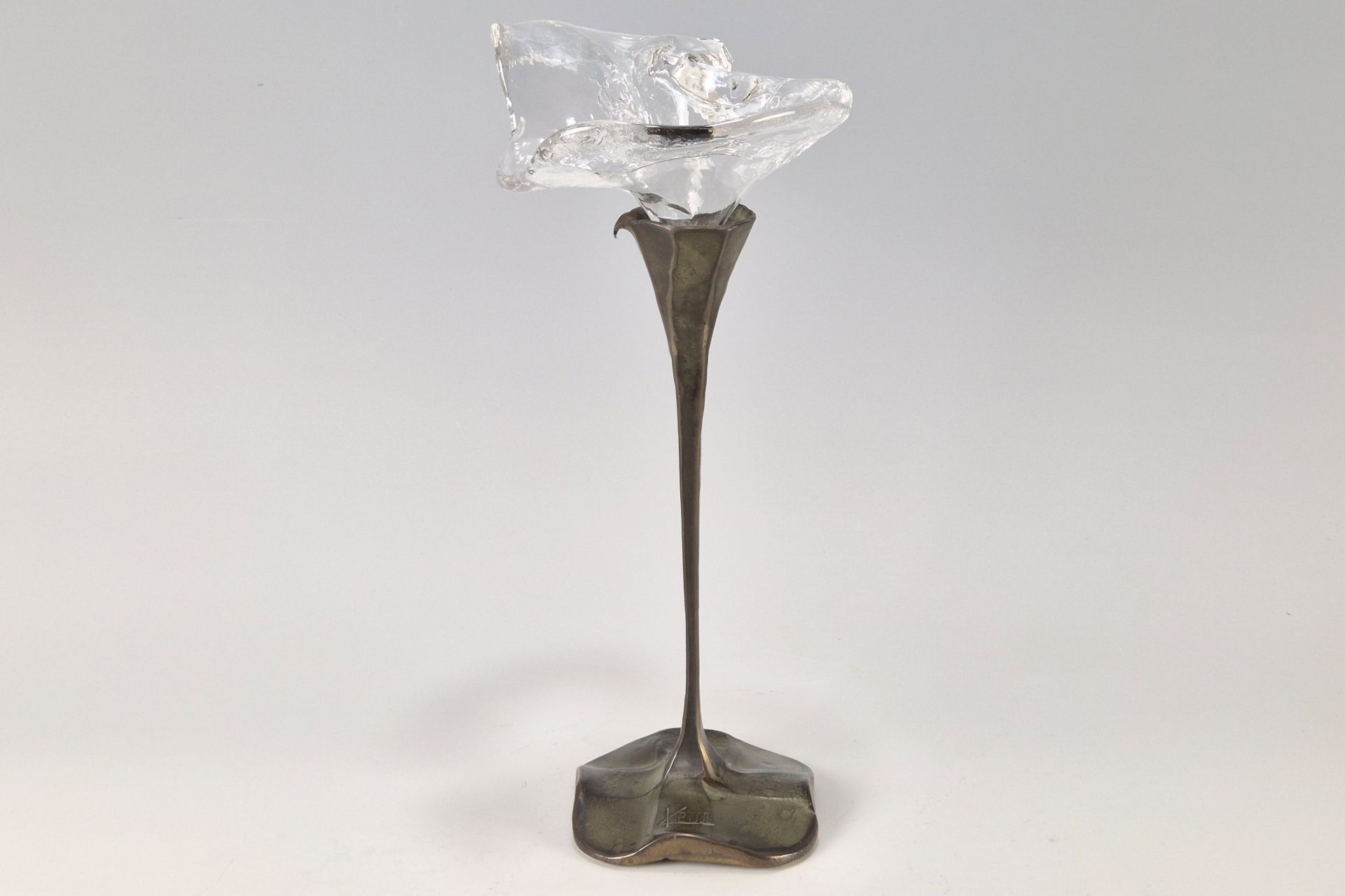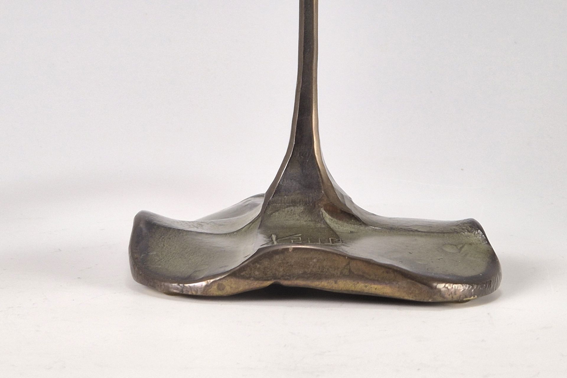 This candlestick, also made of bronze, by the well-known artist Lothar Klute (1946-2023), has a special feature in combination with hand-crafted glass.