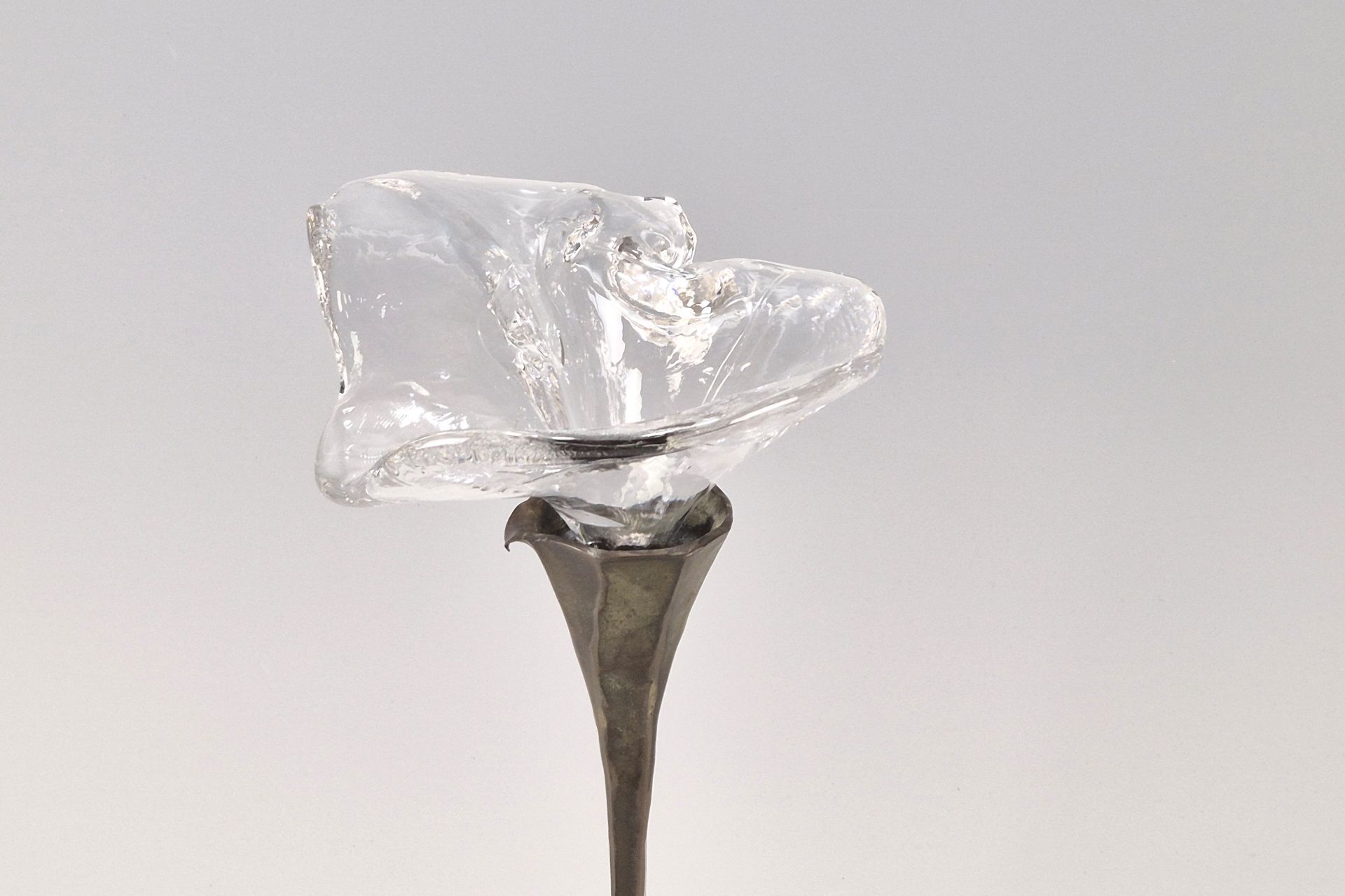 The glass, like the bronze itself, is wild and unstructured, like ice glass, handcrafted in various thicknesses and shapes.