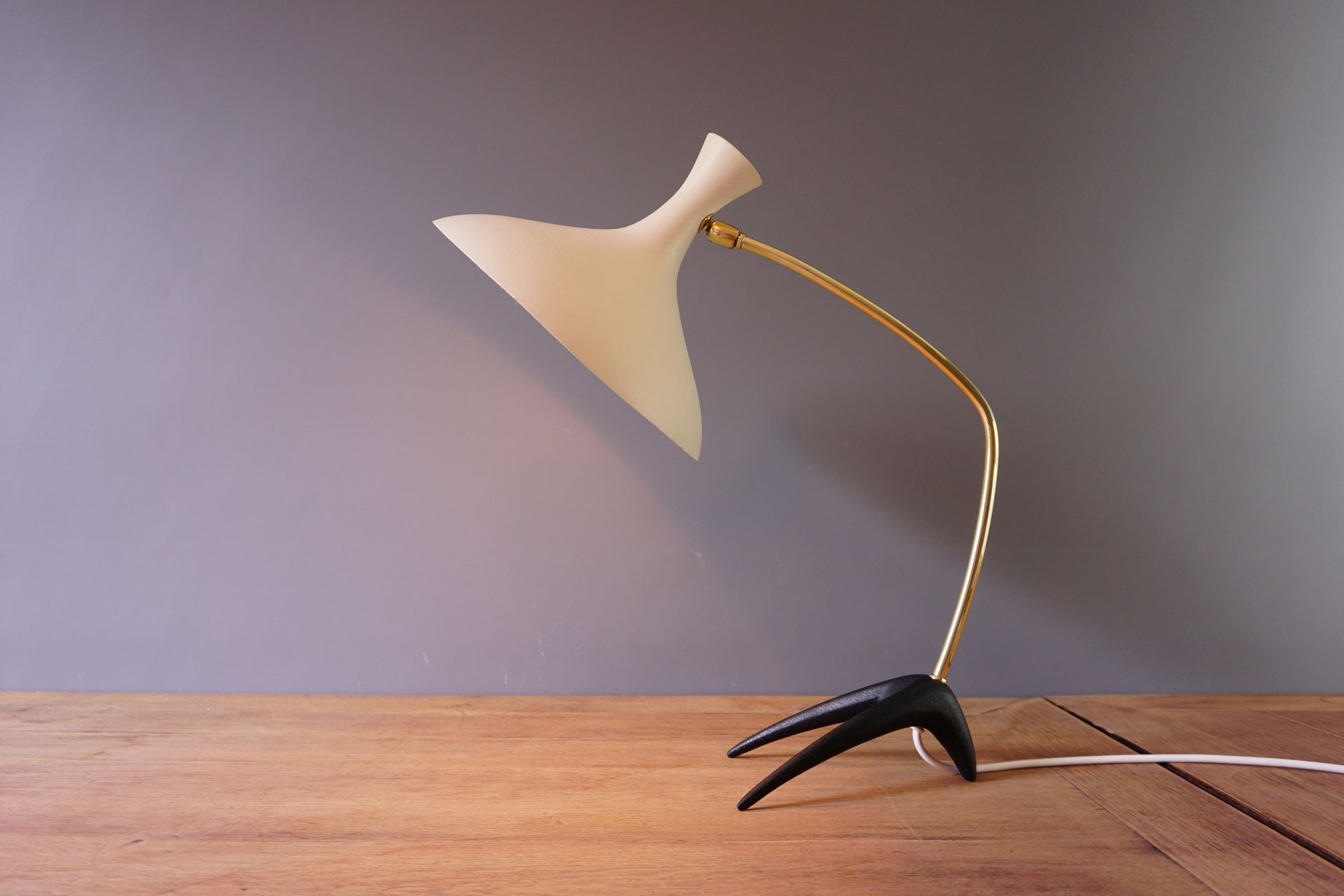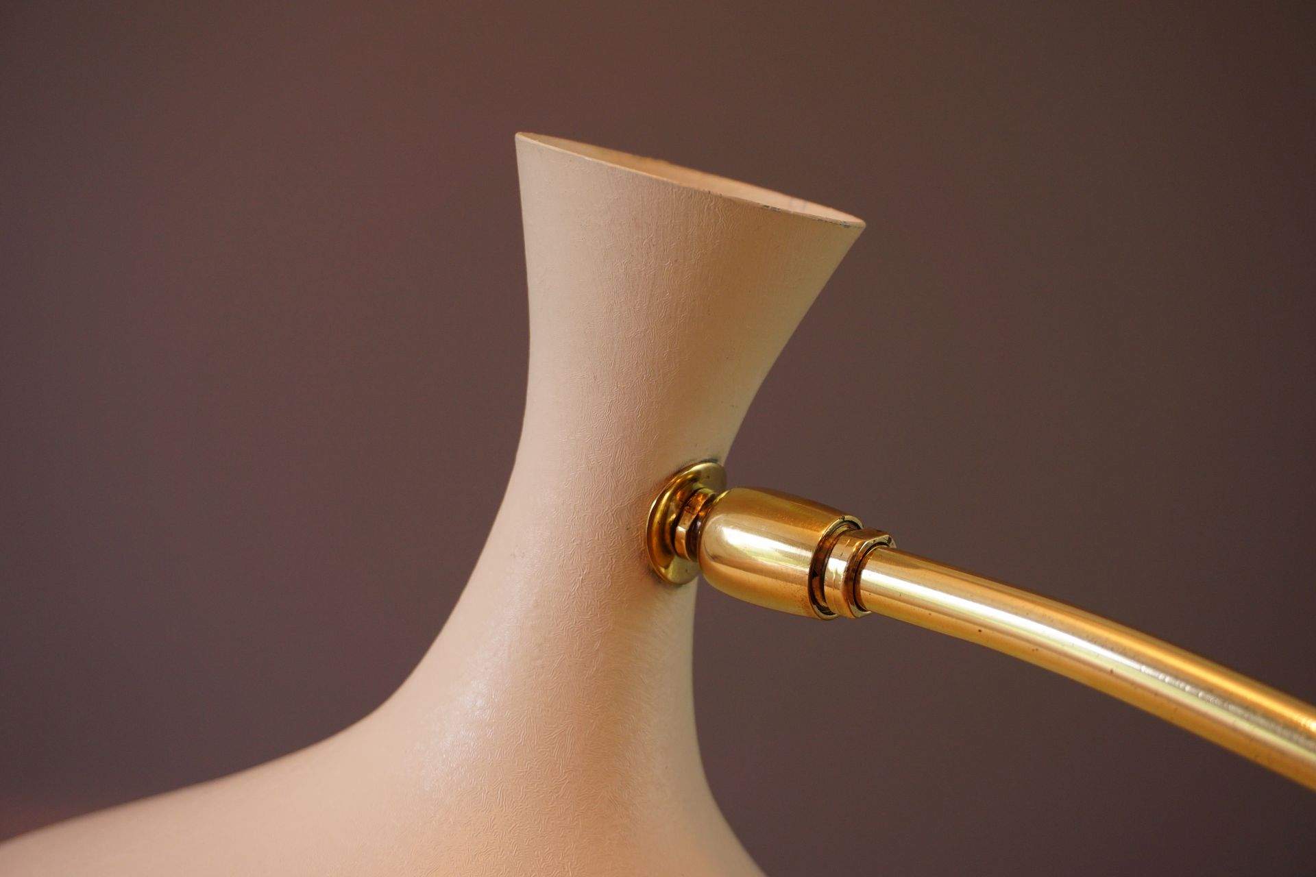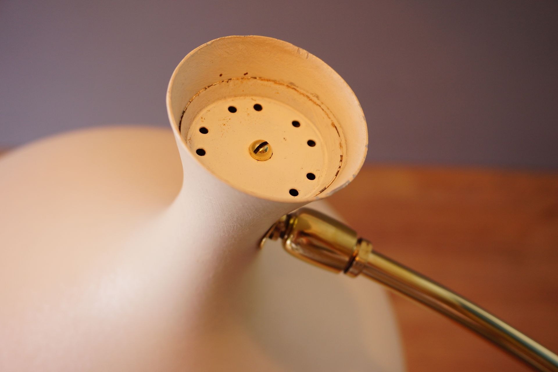 Both parts are connected by the elegantly curved and highly polished brass arm with ball joint.