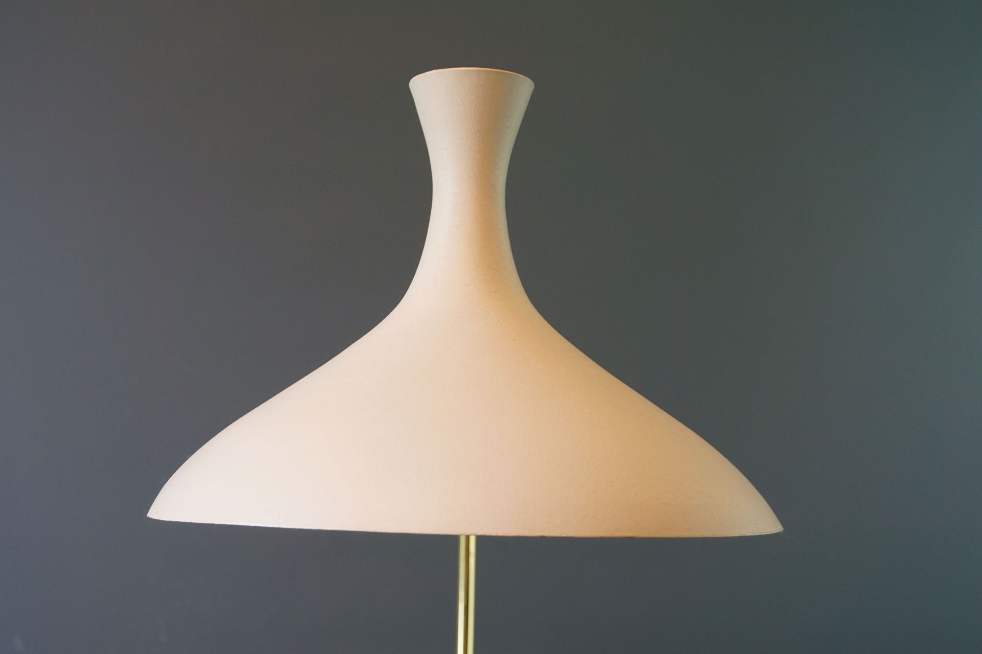 The diabolo-formed shade made of aluminum is painted with cream-colored wrinkle finish.