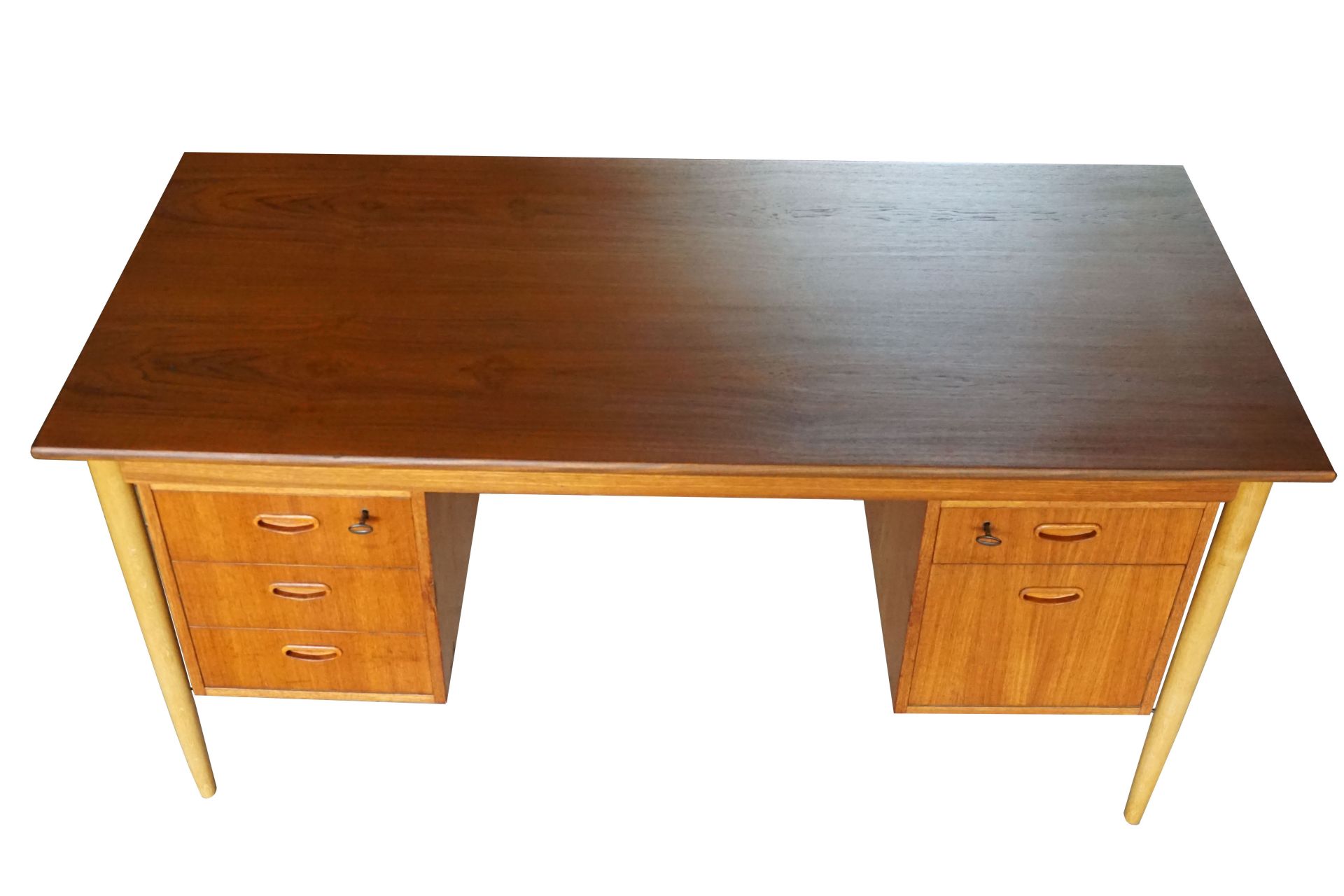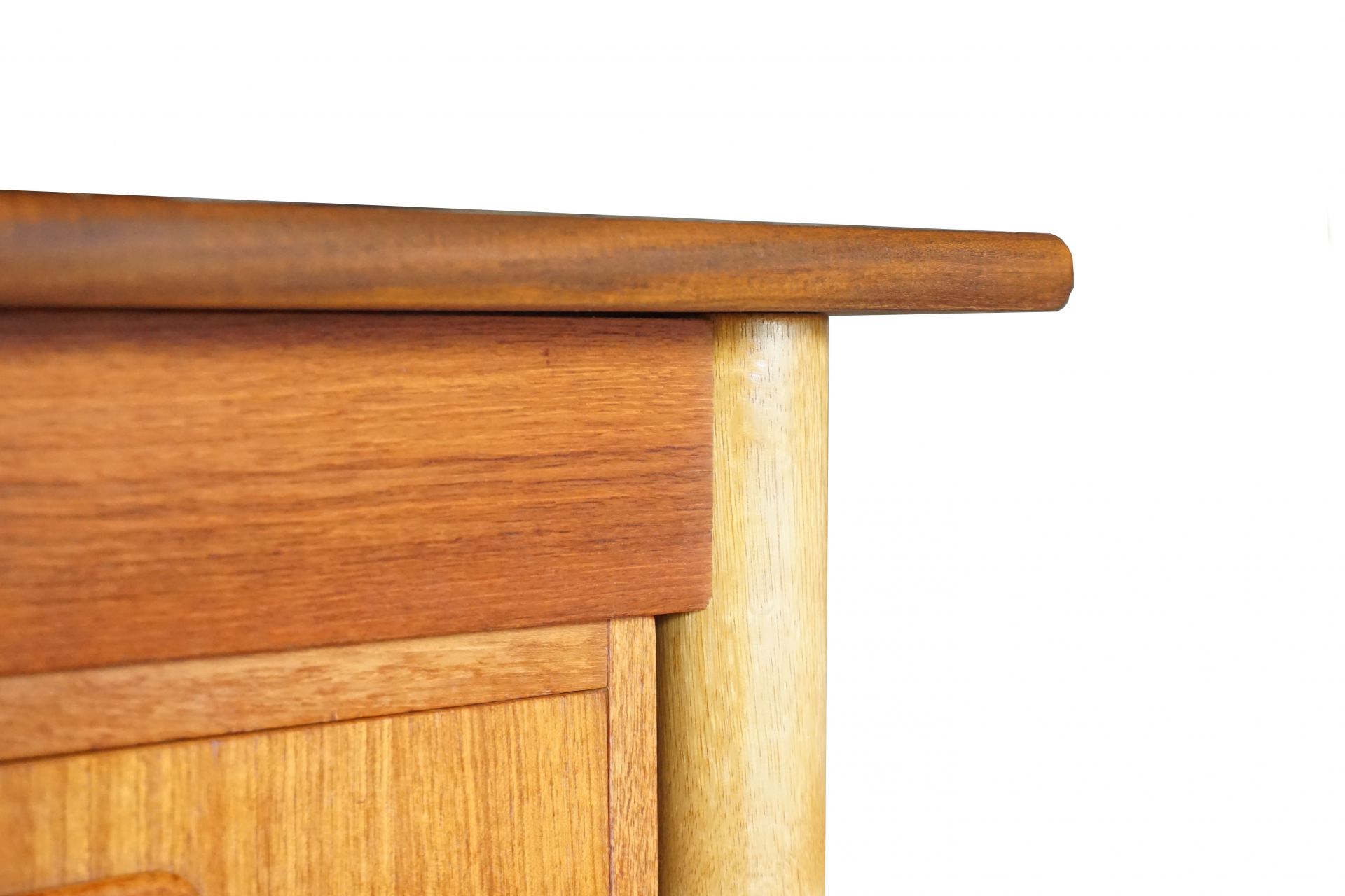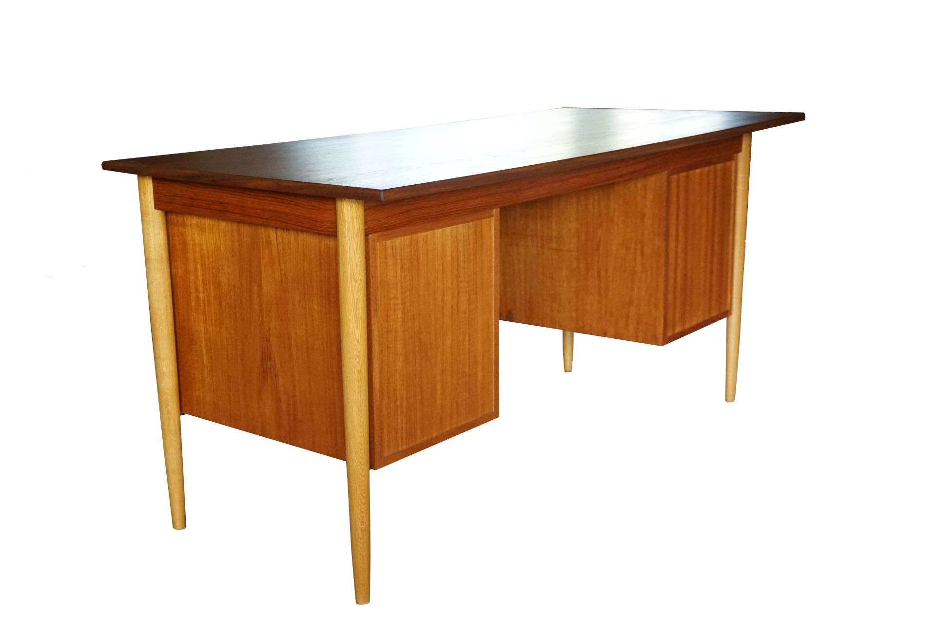 The desk can also be placed free inside a room, because the backside is also covered with teakwood veneer.