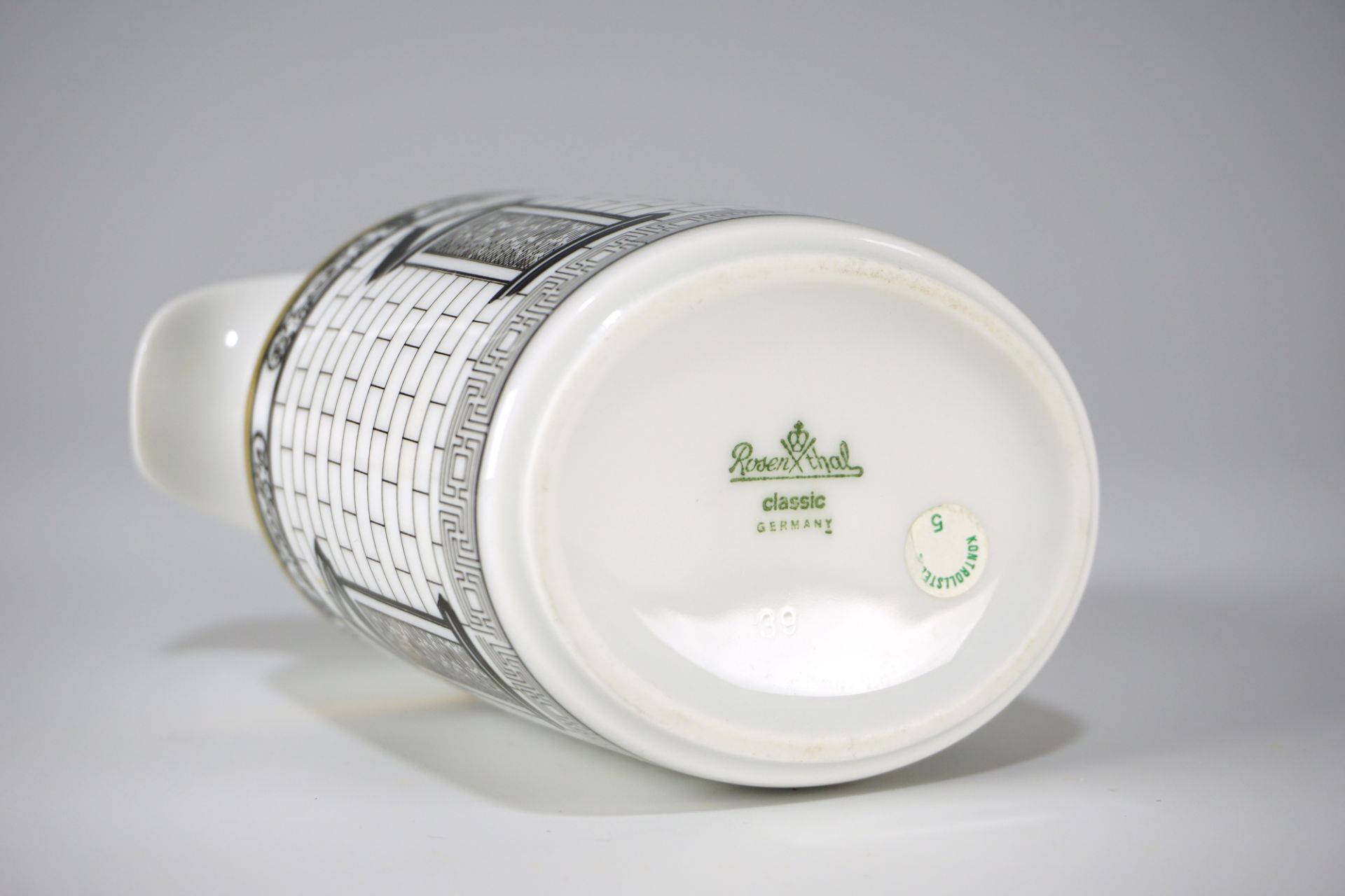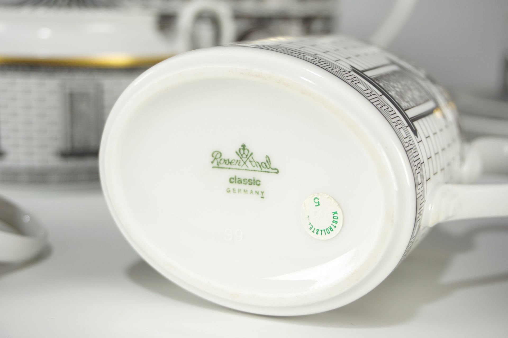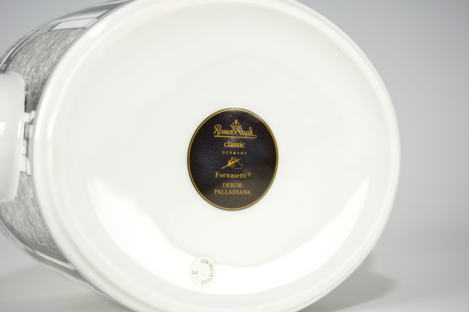 All parts are marked Rosenthal. Milk jug & sugar bowl with the green Rosenthal mark, all other parts with the black Rosenthal mark and the addition Fornasetti.