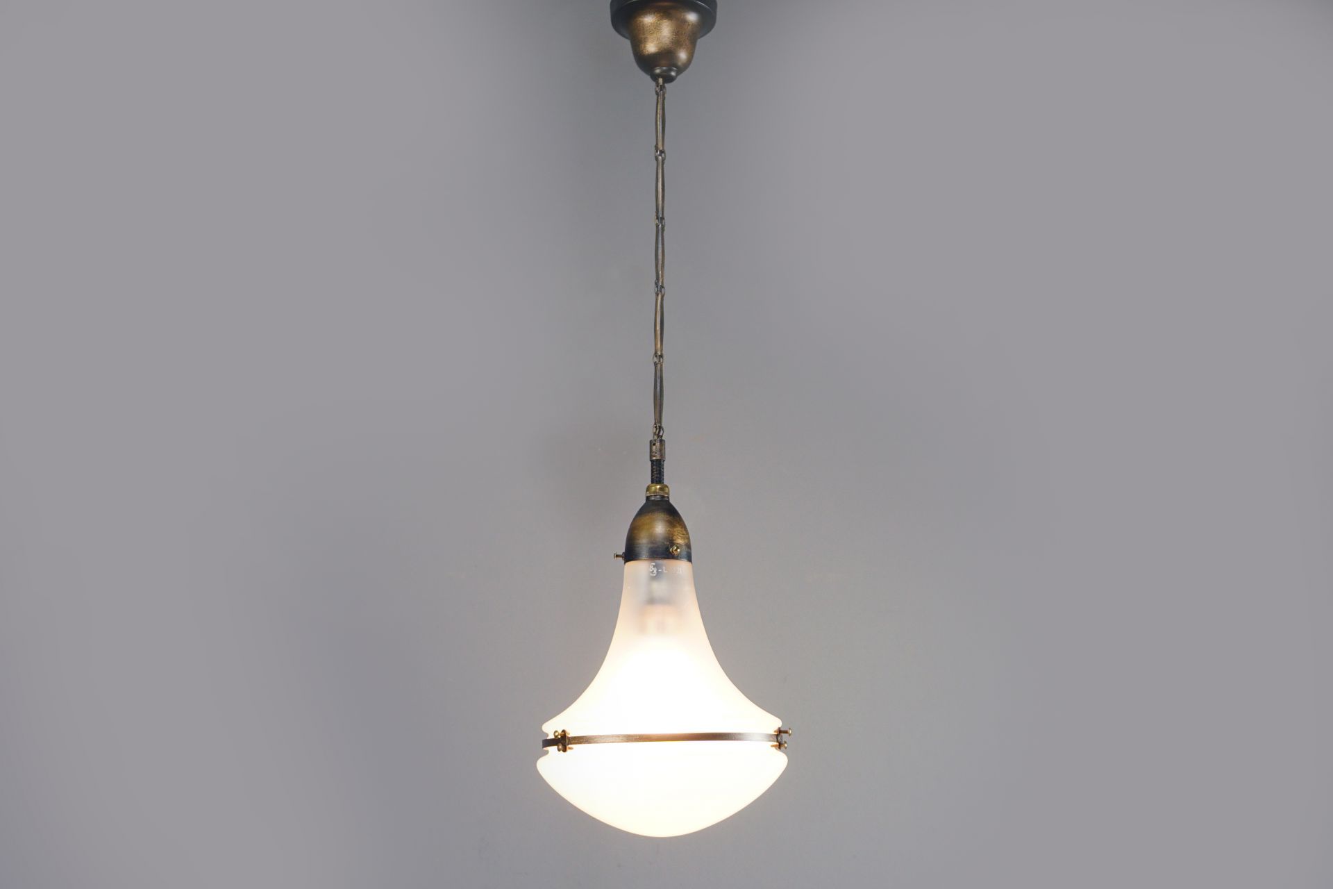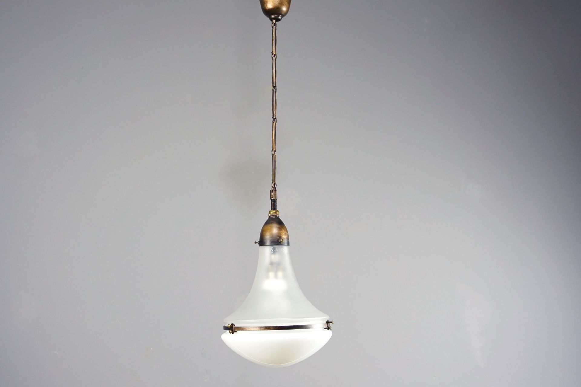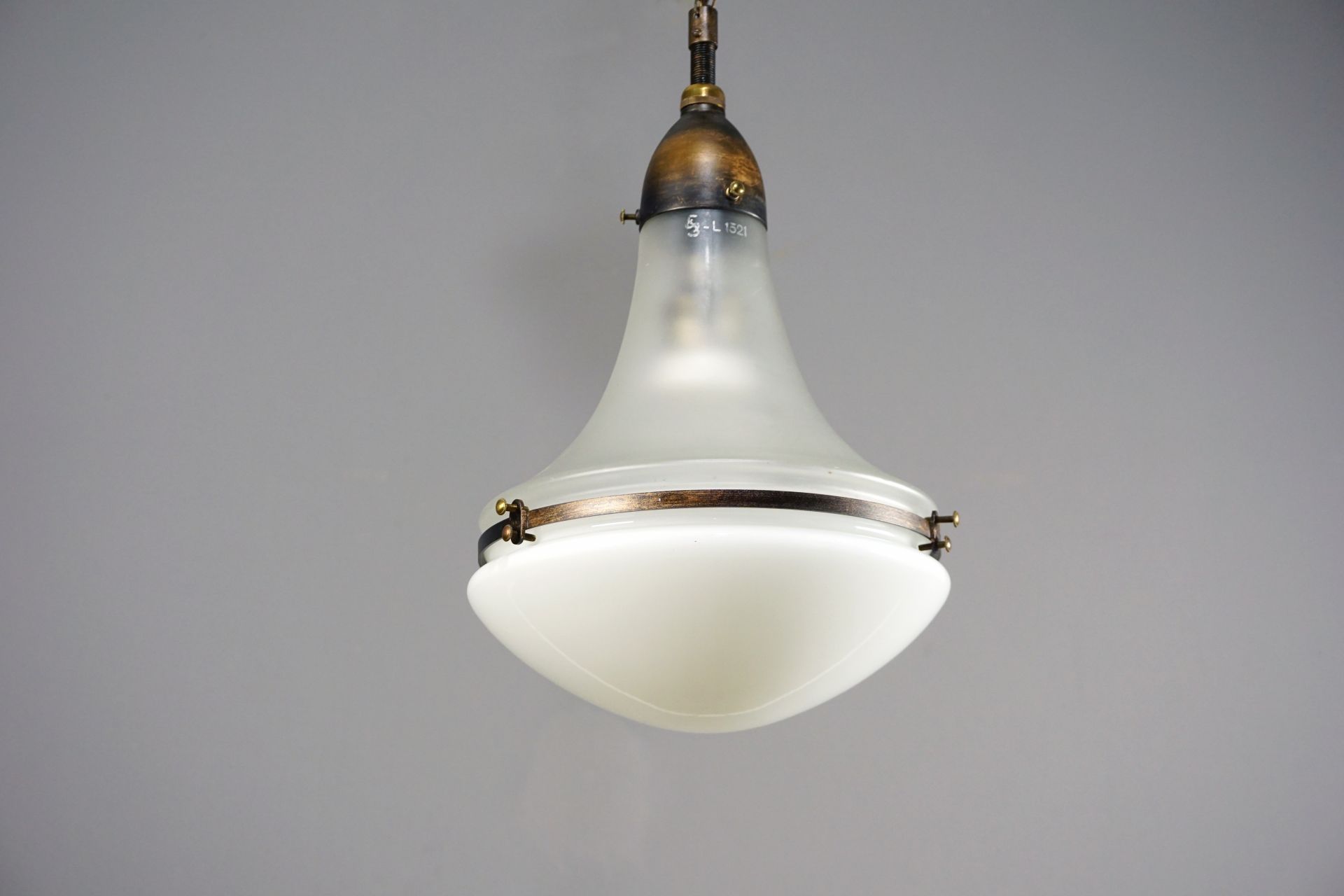 Top glass satined with Siemens Schuckert signet and model number L 1521 - Lower glass in opal glass