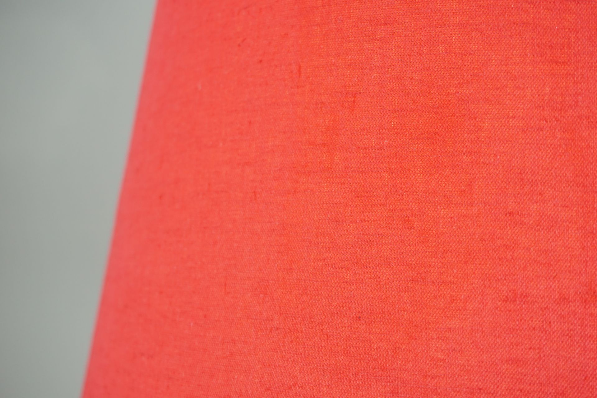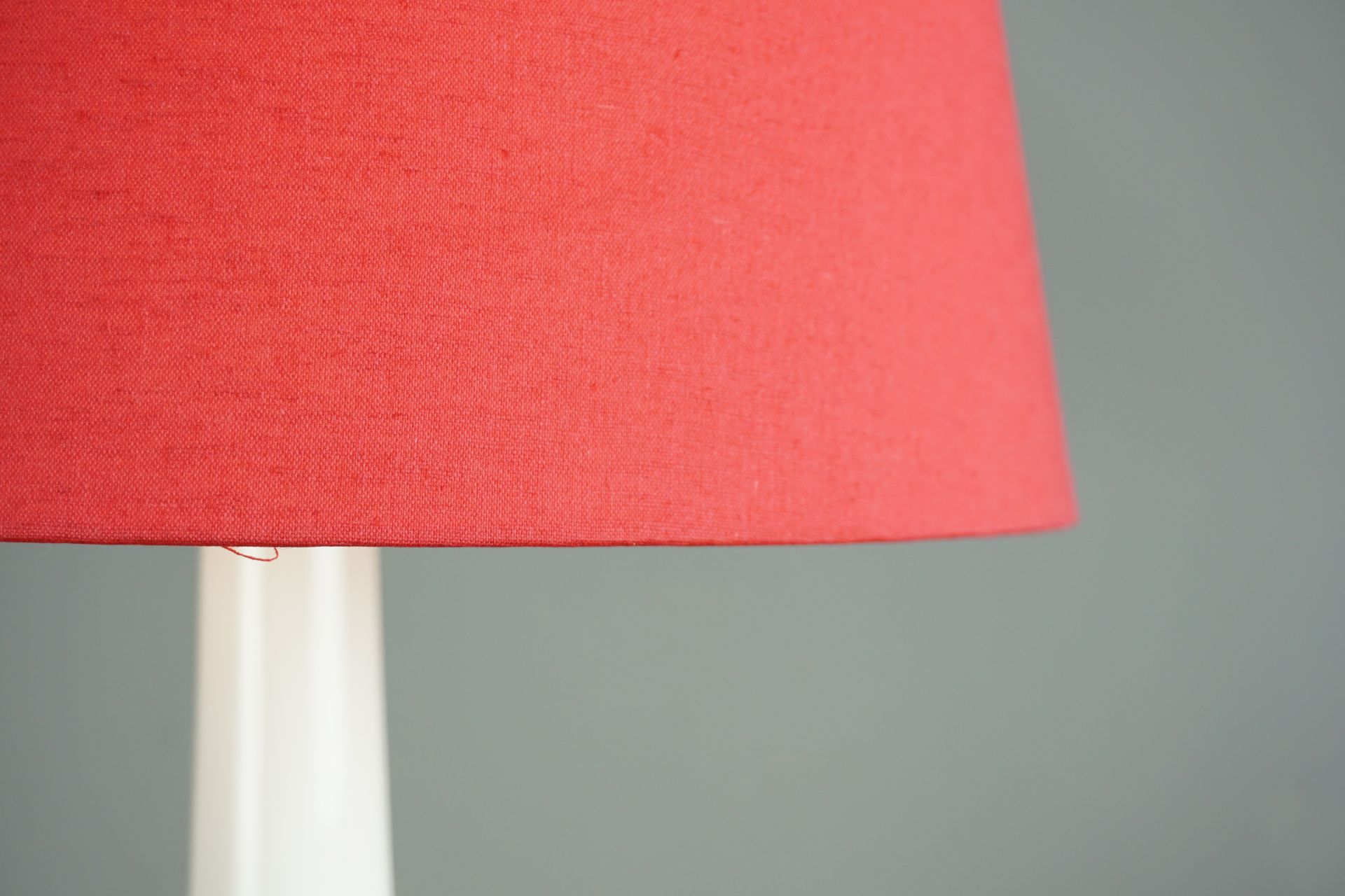Version in the national colors of Denmark, with white, timeless ceramic base and a changeable red fabric shade.