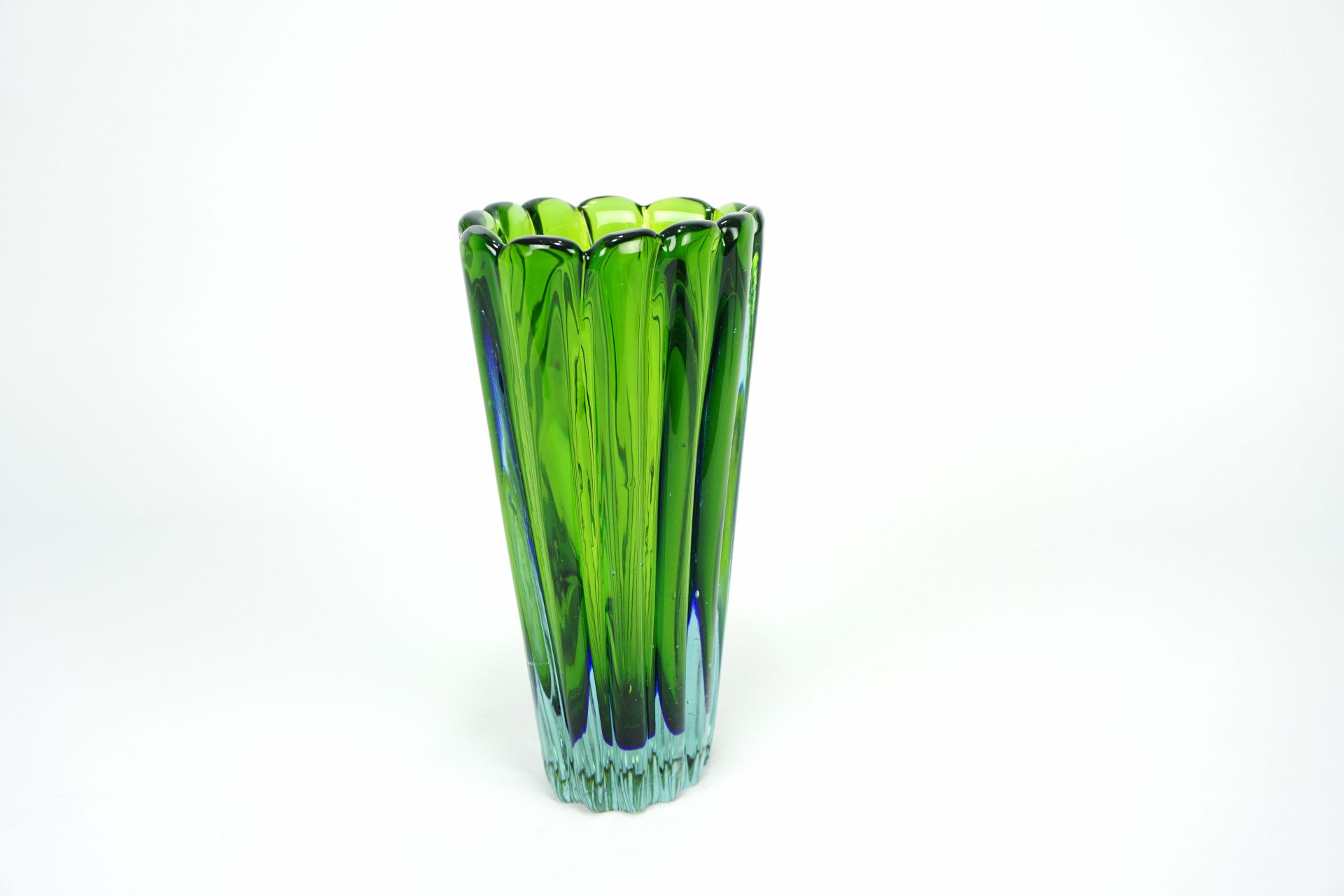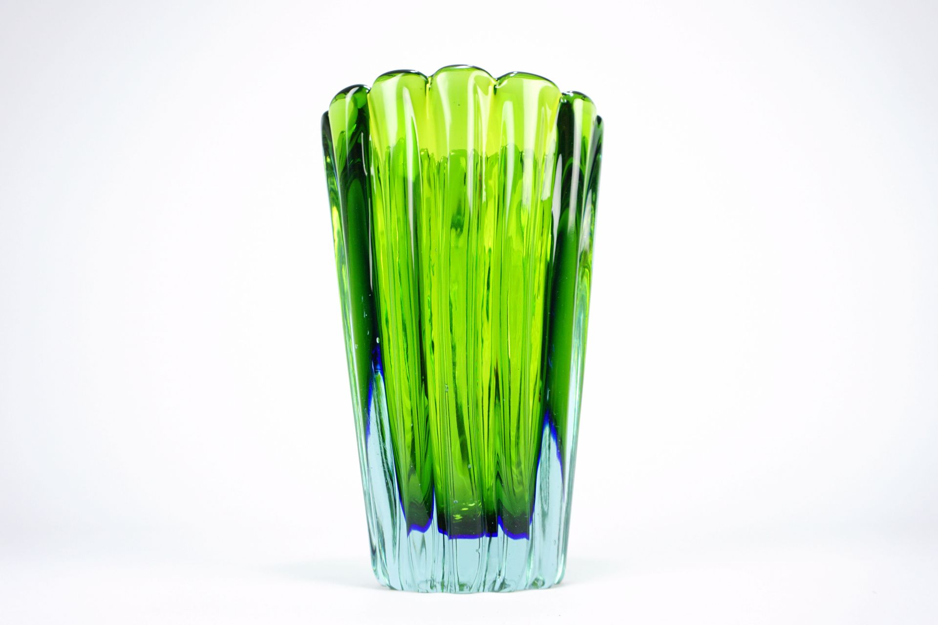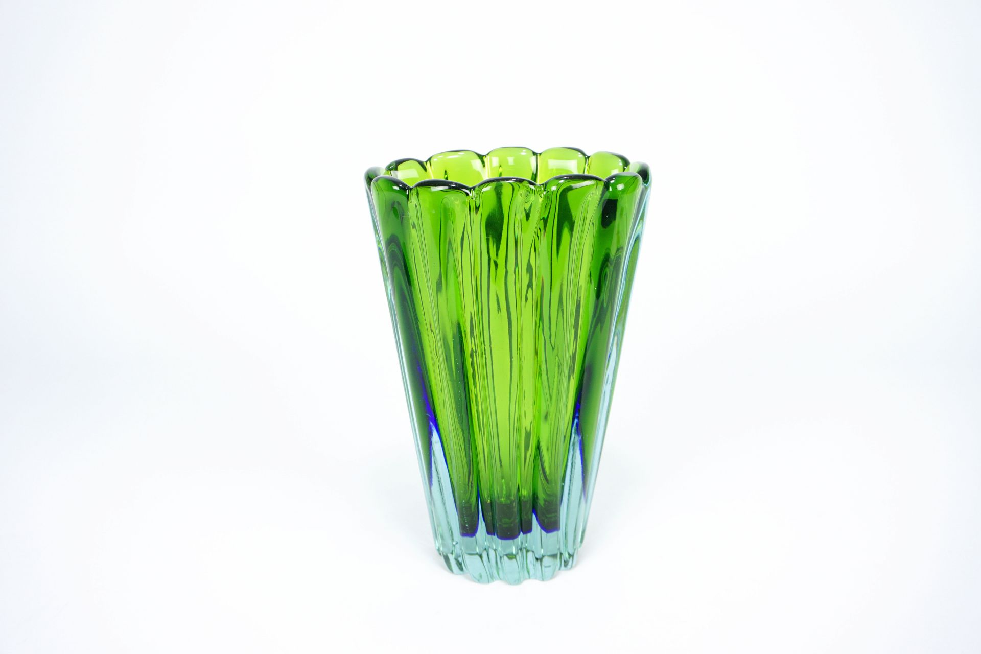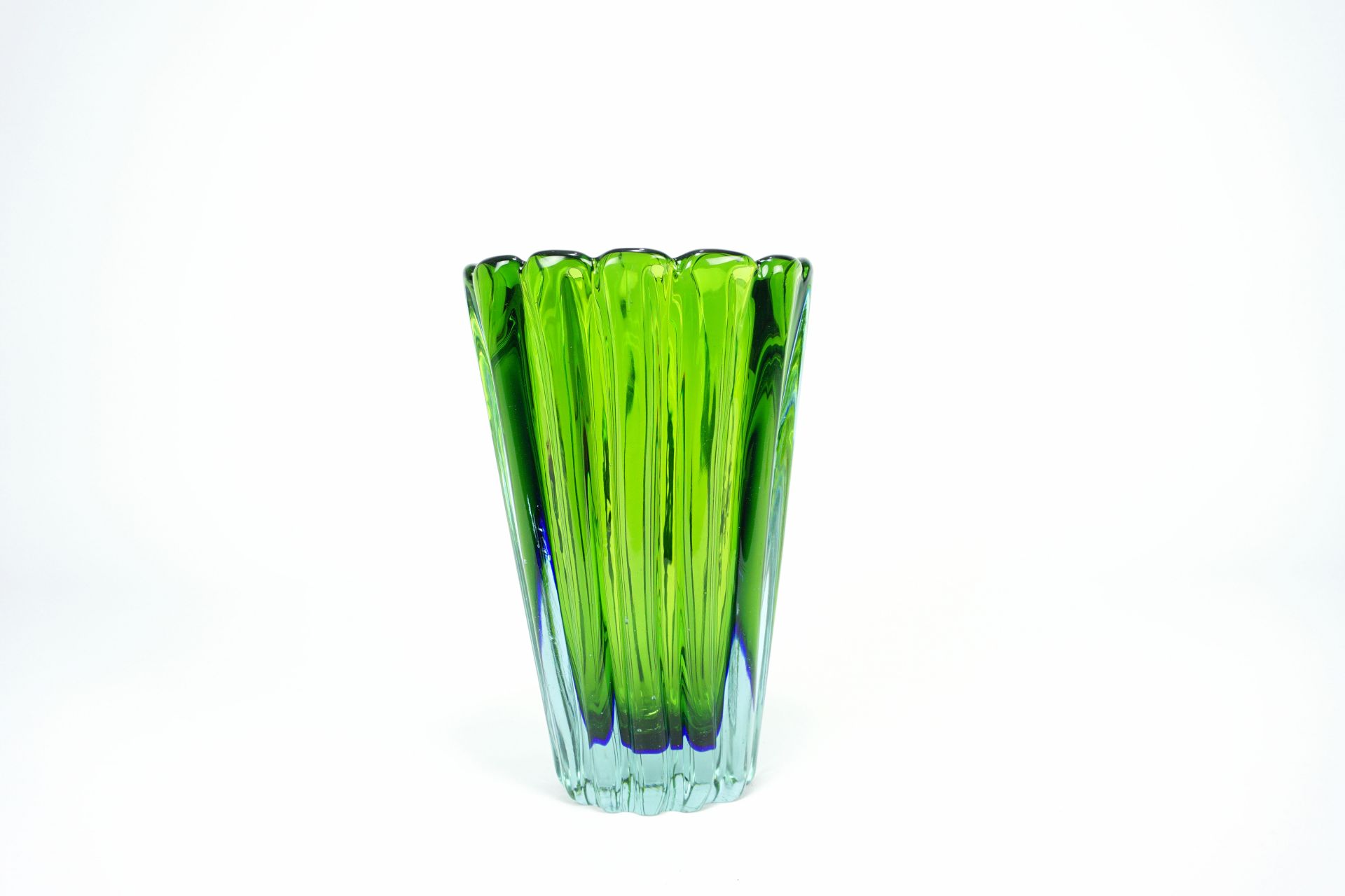 Beautiful large and heavy Sommerso a coste glass vase by Flavio Poli for Seguso Vetri d'Arte.