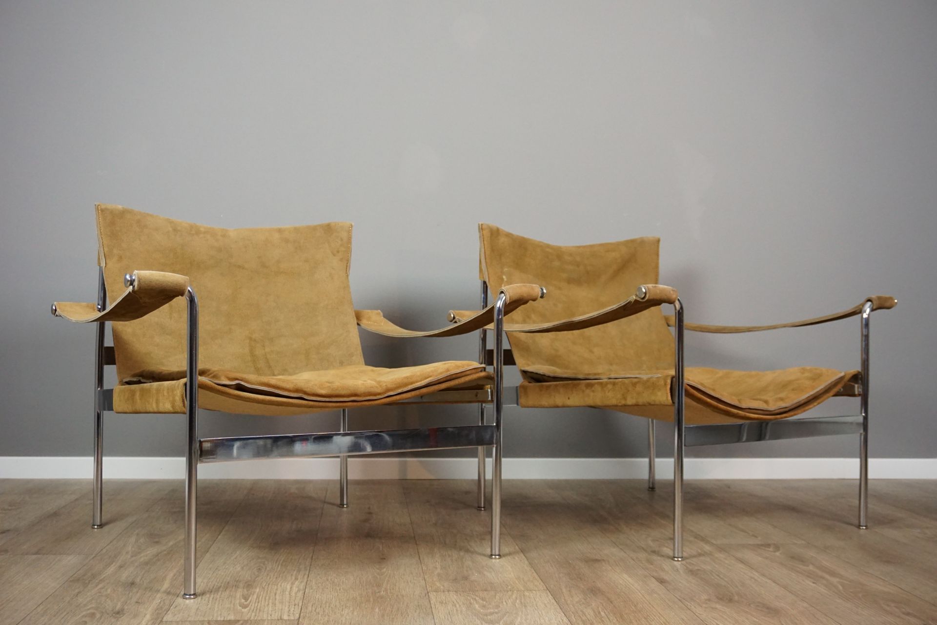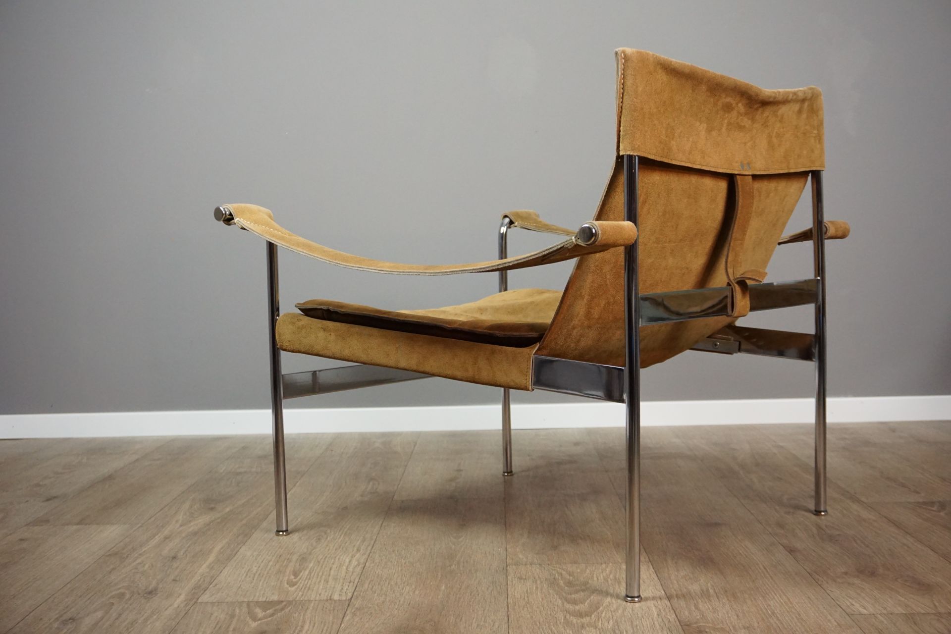 Natural wild leather with tubular chromed steelframe