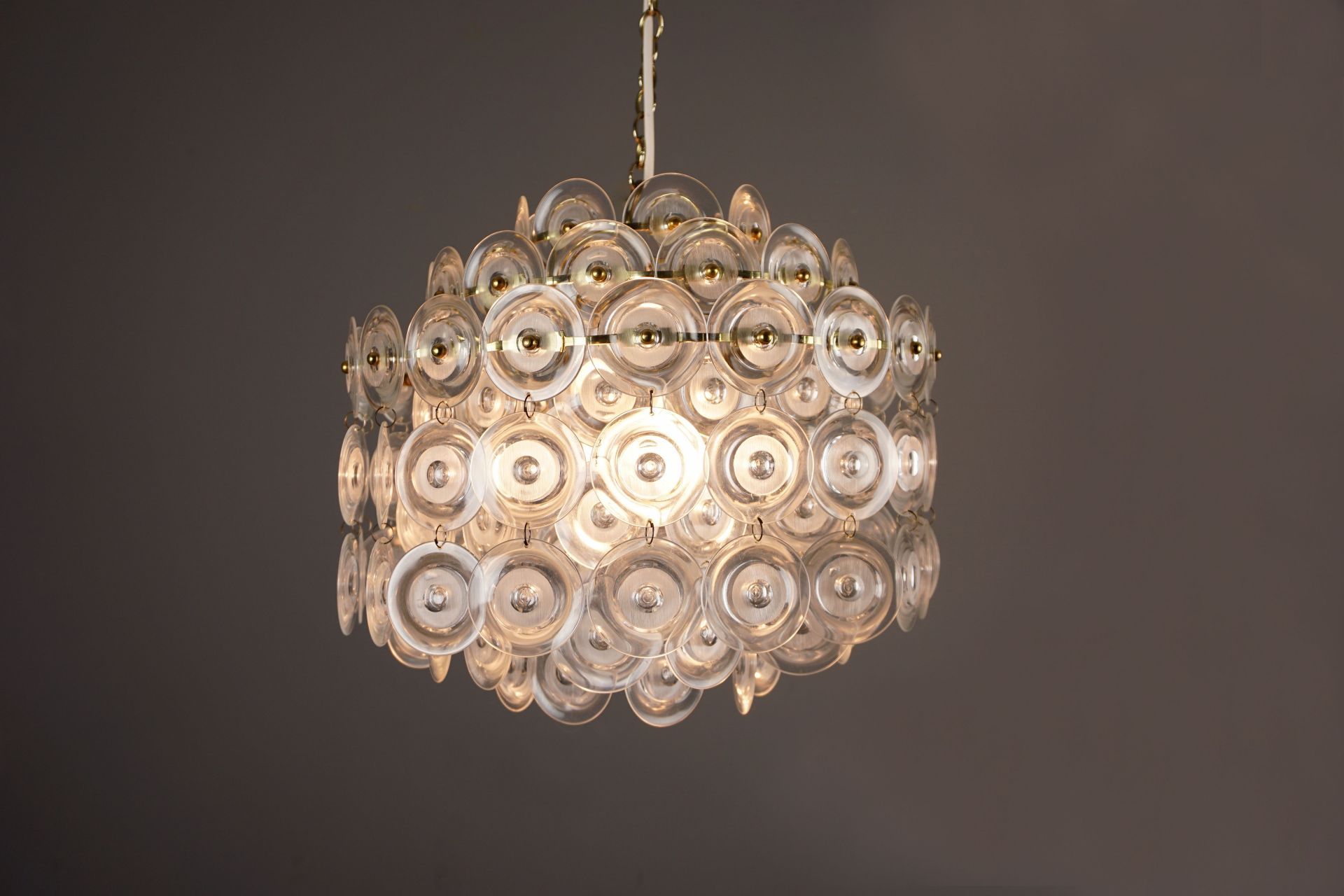 Good condition. The lamp was completely dismantled. All lucite lenses/rows have been cleaned and polished.