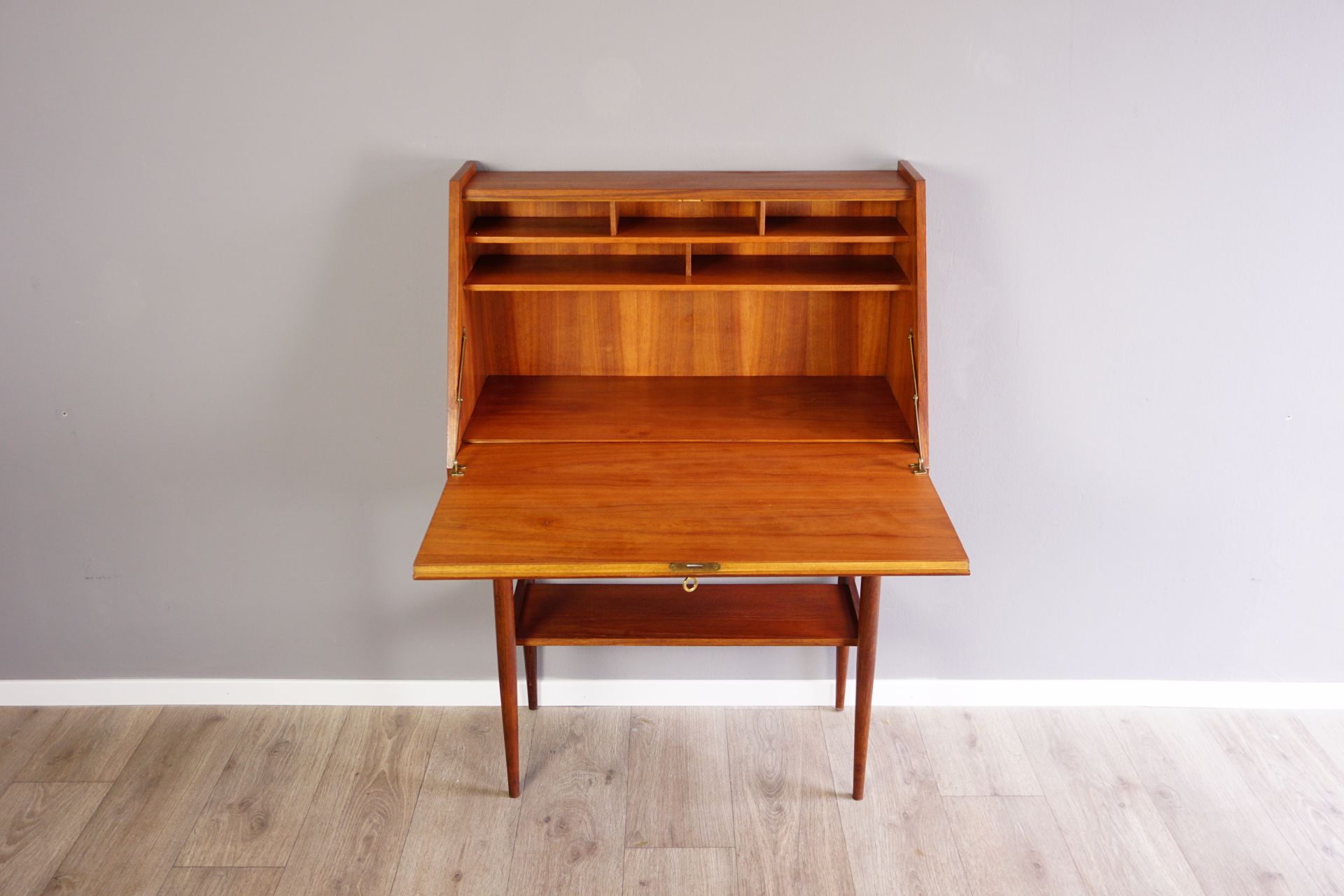 Offered is this practical, as well as timelessly elegant teak secretary from Denmark.