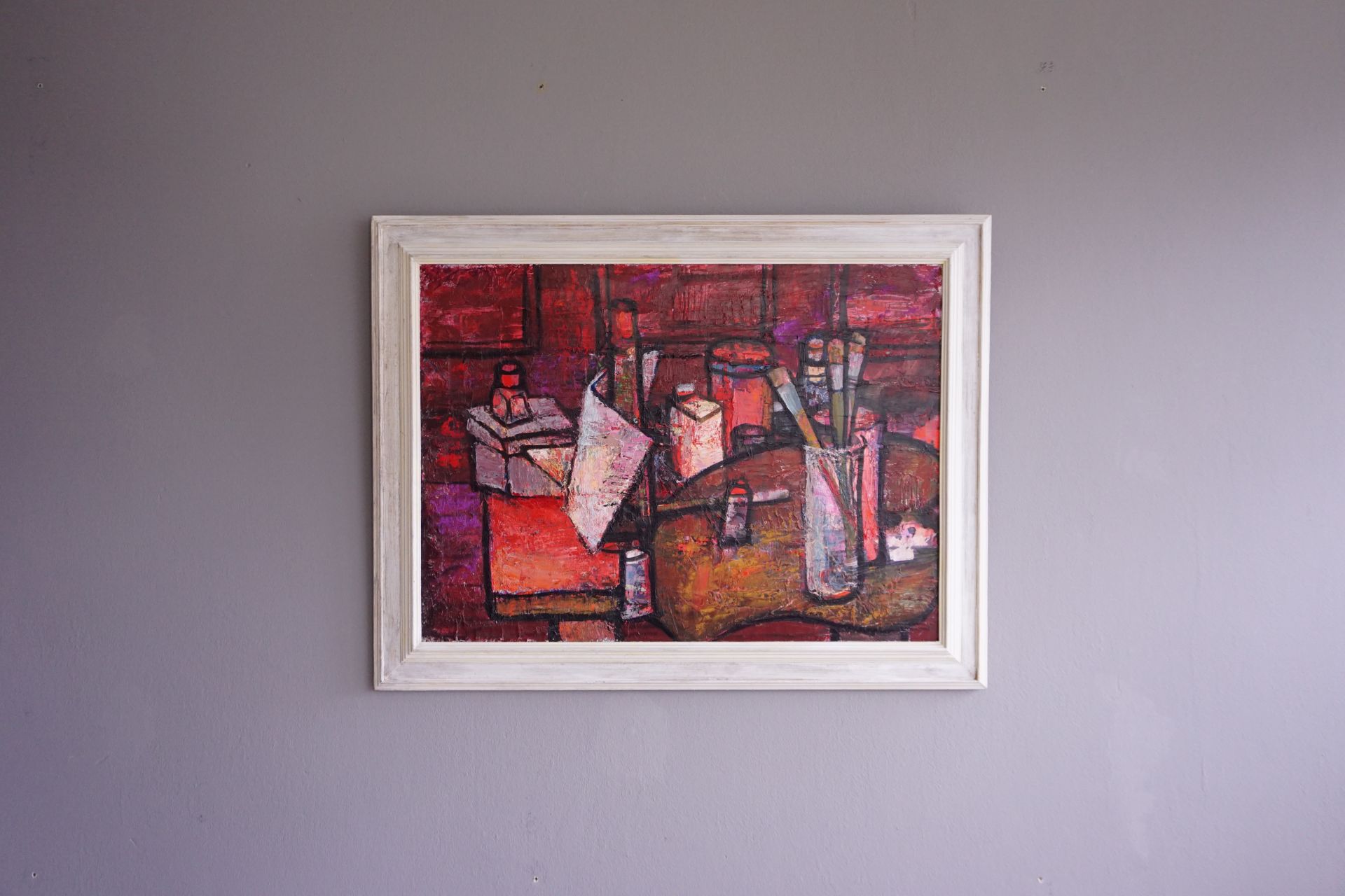 Offered is this wonderful expressionist still life with the motif of the studio of the artist Waltraud Lamers.