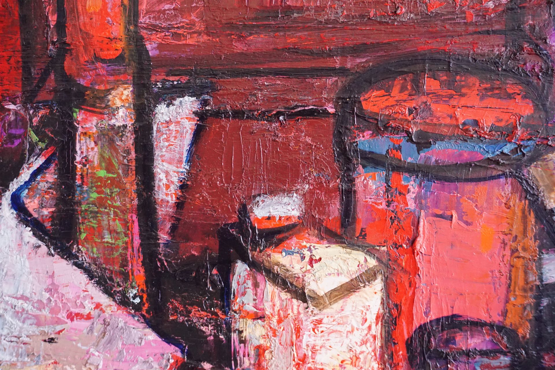 Reddish tones dominate the picture, which was also created with a strong impasto in paint and spatula technique.