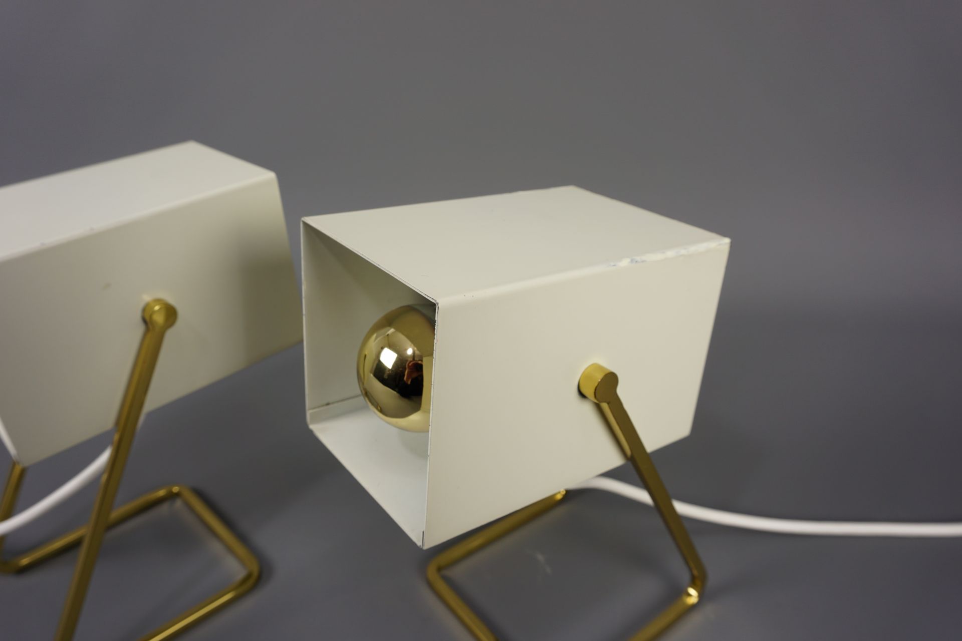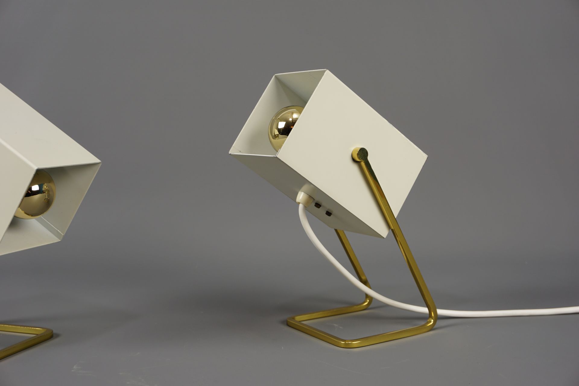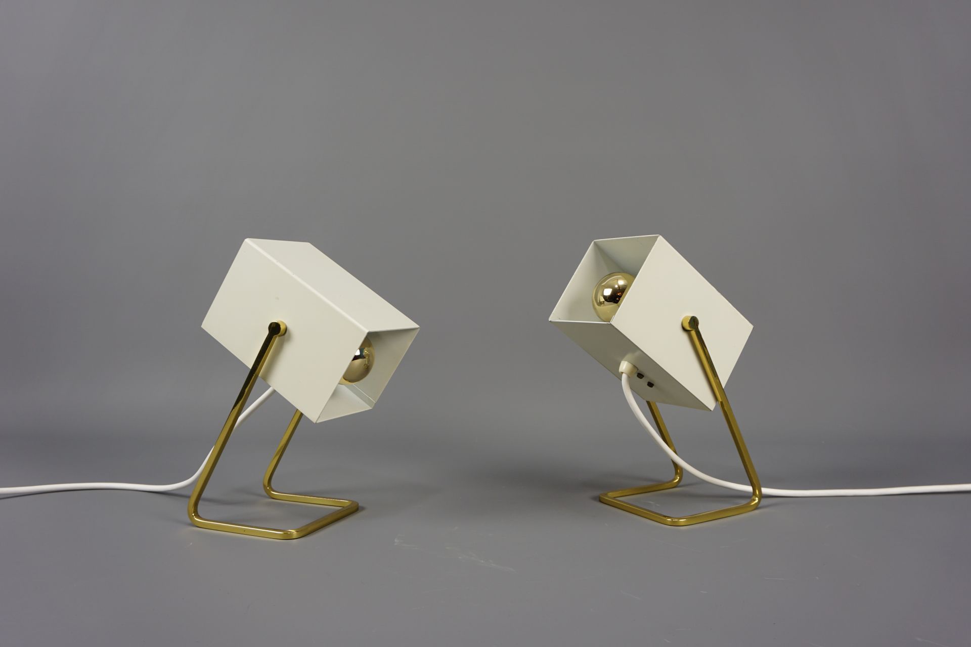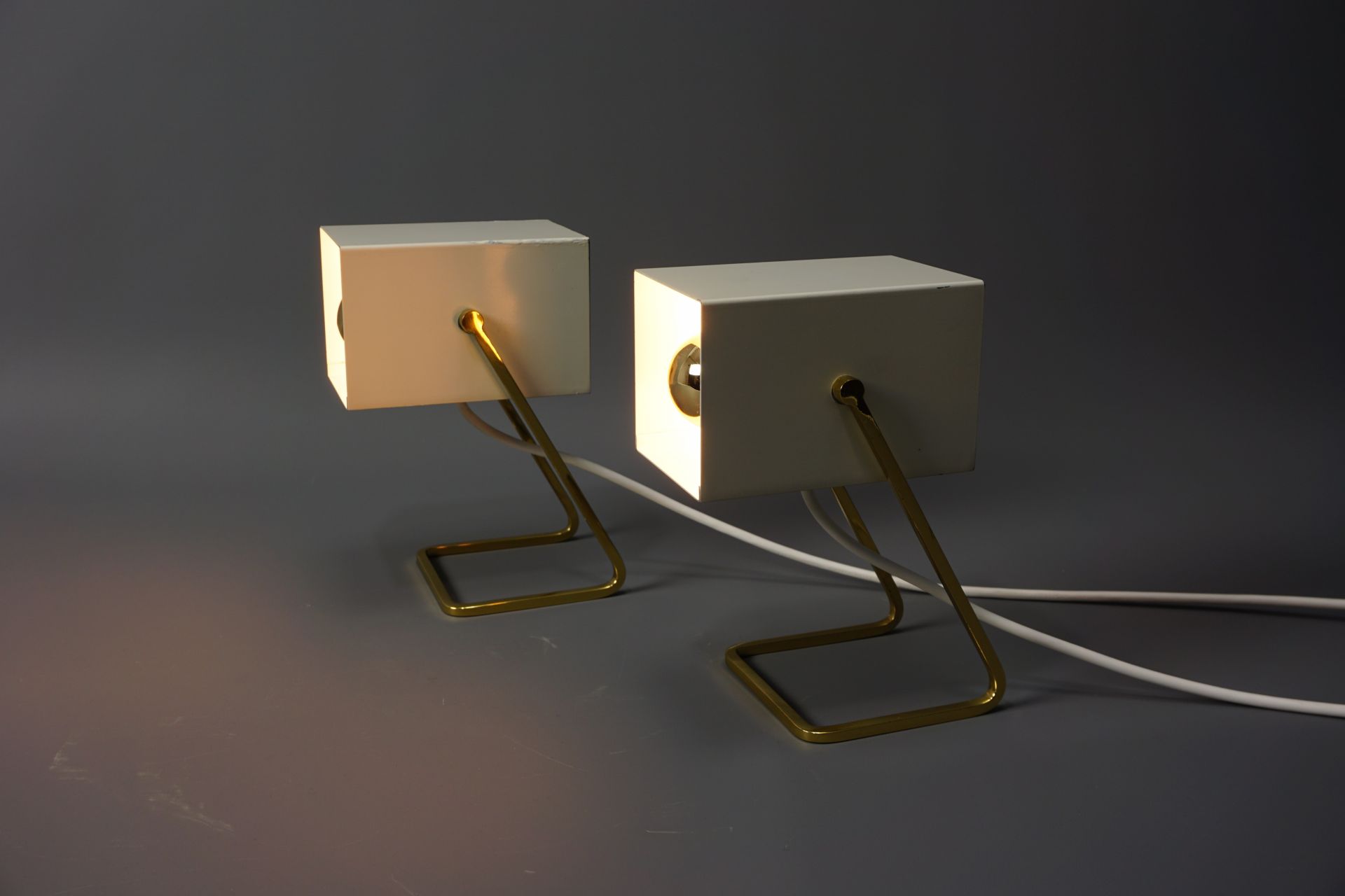 Angeboten wird dieses schöne Paar an Tischleuchten im Cube Design von Kaiser Leuchten.