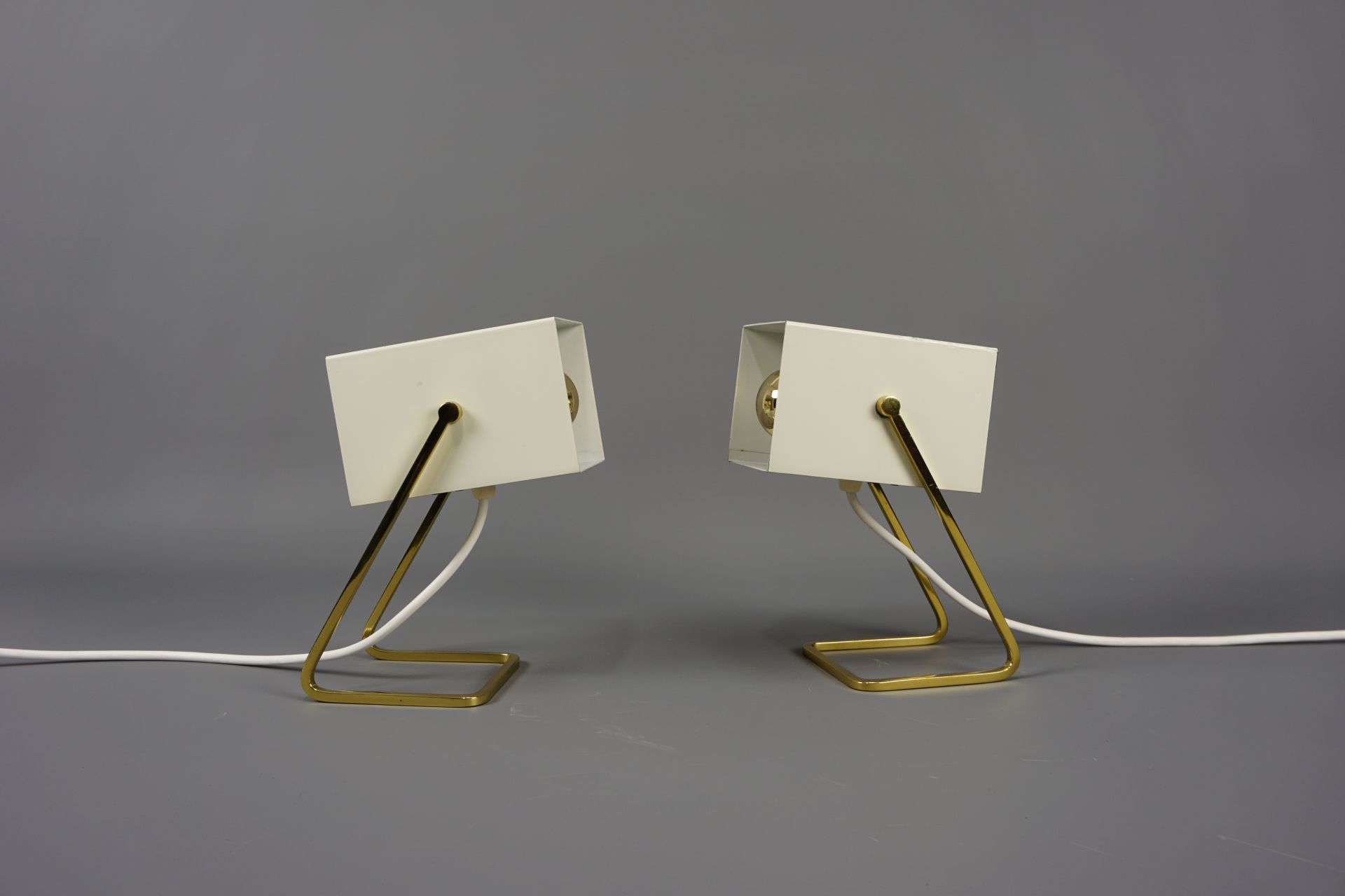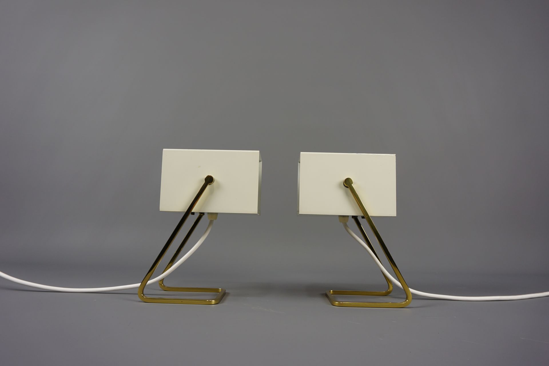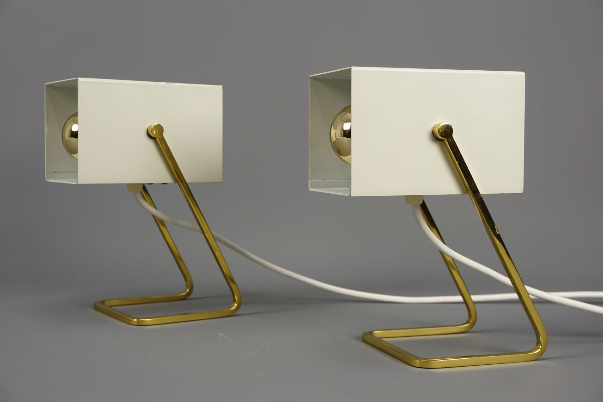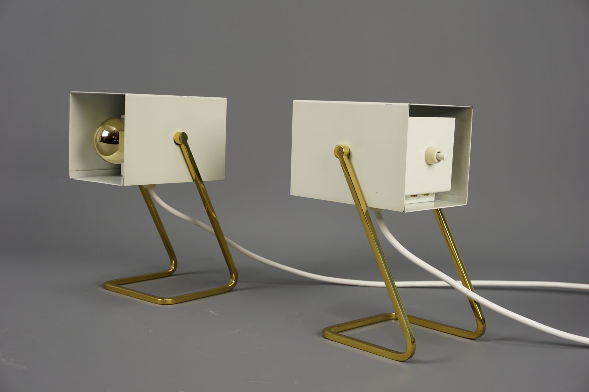 Angeboten wird dieses schöne Paar an Tischleuchten im Cube Design von Kaiser Leuchten.