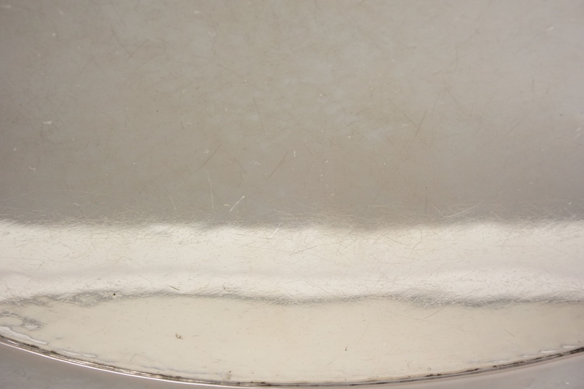 Es wurde im Stile der Moderne von der schweizer Silberschmiede Wiskemann - Knecht in Zürich in den 1920er/30er Jahren handgetrieben und hergestellt. Man erkennt eine wunderschöne leichte Martellierung des getriebenen Silberblechs.