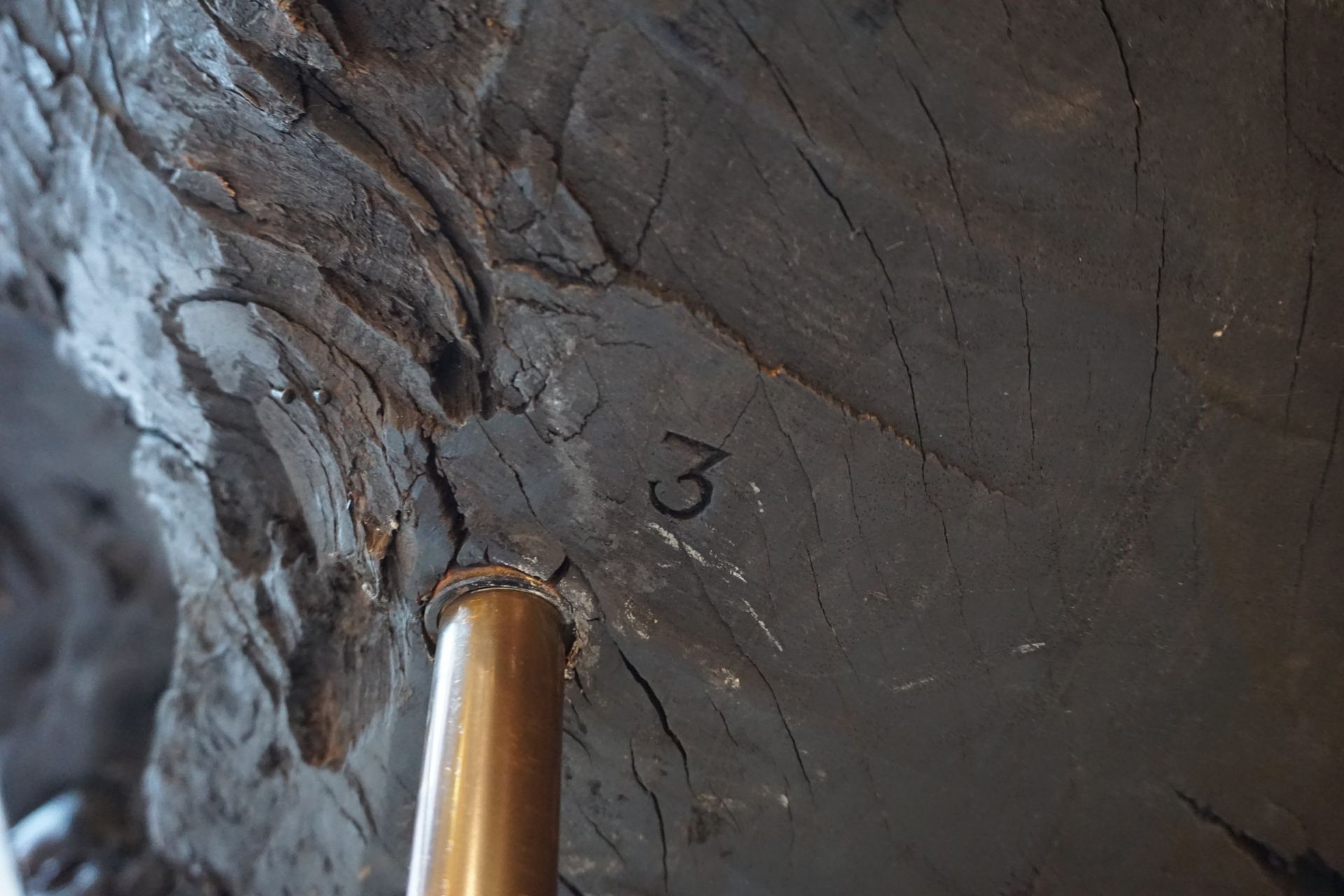 Aus erster Hand. Nussbaum Massiv Wurzelansatz mit 3 Messingbeinen.