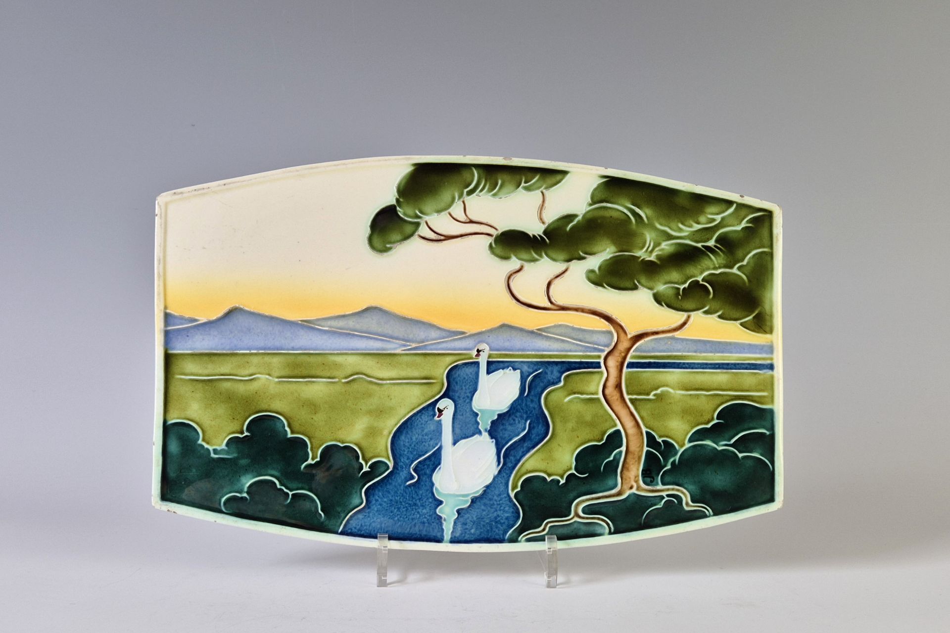 Wunderschöne naturalistisch gestaltete große oval geometrische Jugendstilfliese aus der Zeit von 1896-1906.