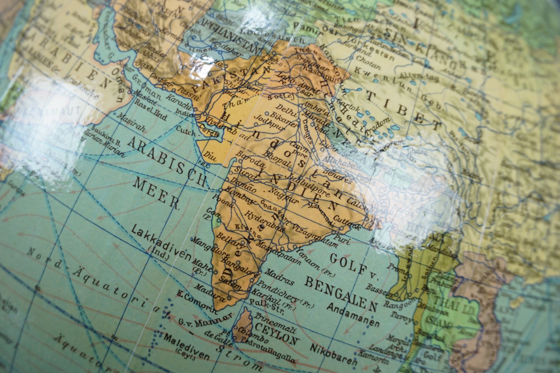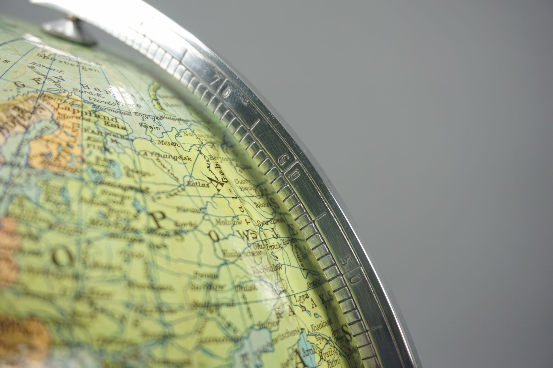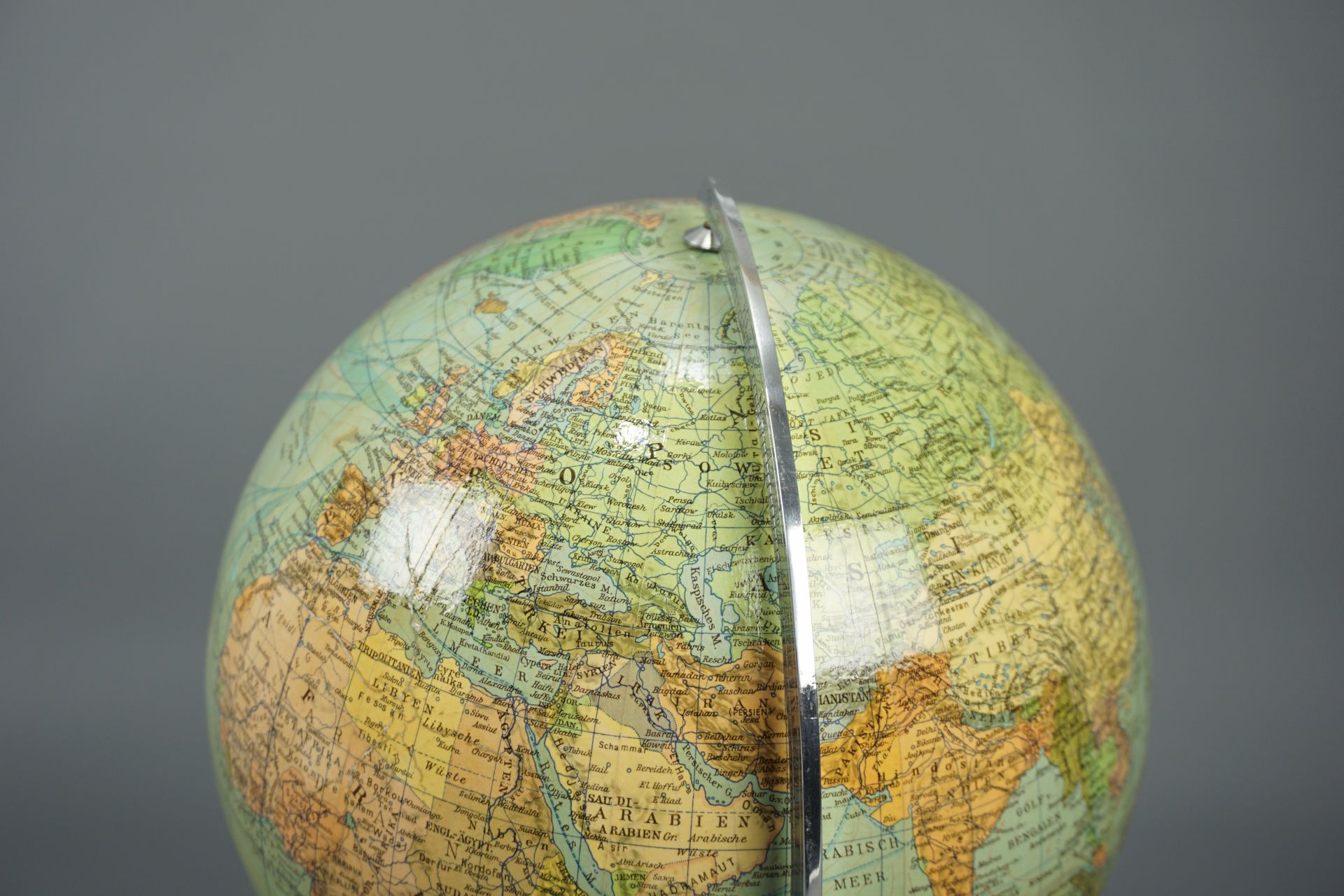 Schöner deutschsprachiger Globus der 1950er Jahre.