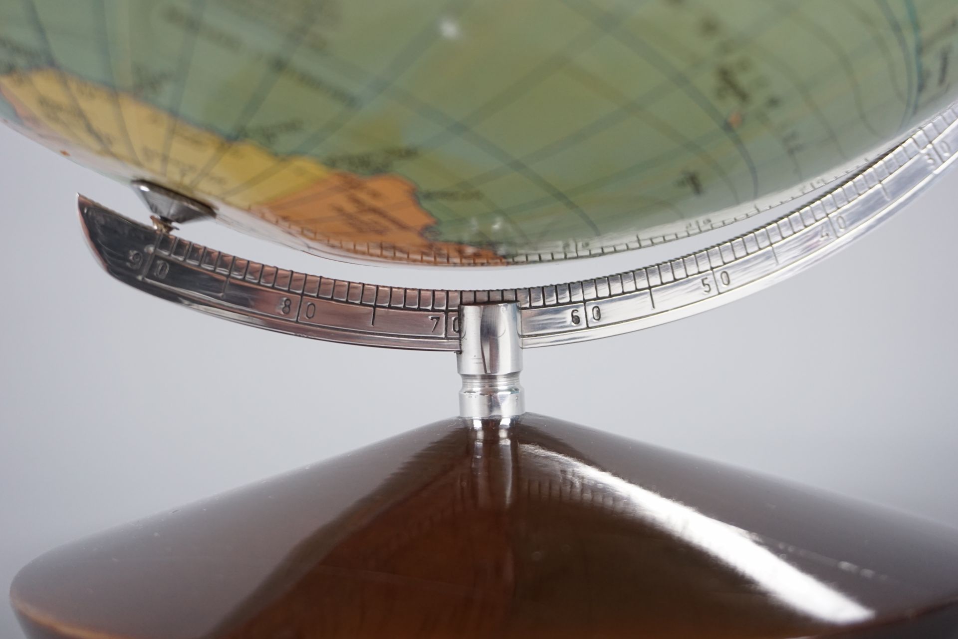 Der komplette Globus wurde zerlegt, gereinigt, poliert und mit einem PH neutralen farblosen Museumsschutzwachs konservatotisch geschützt.