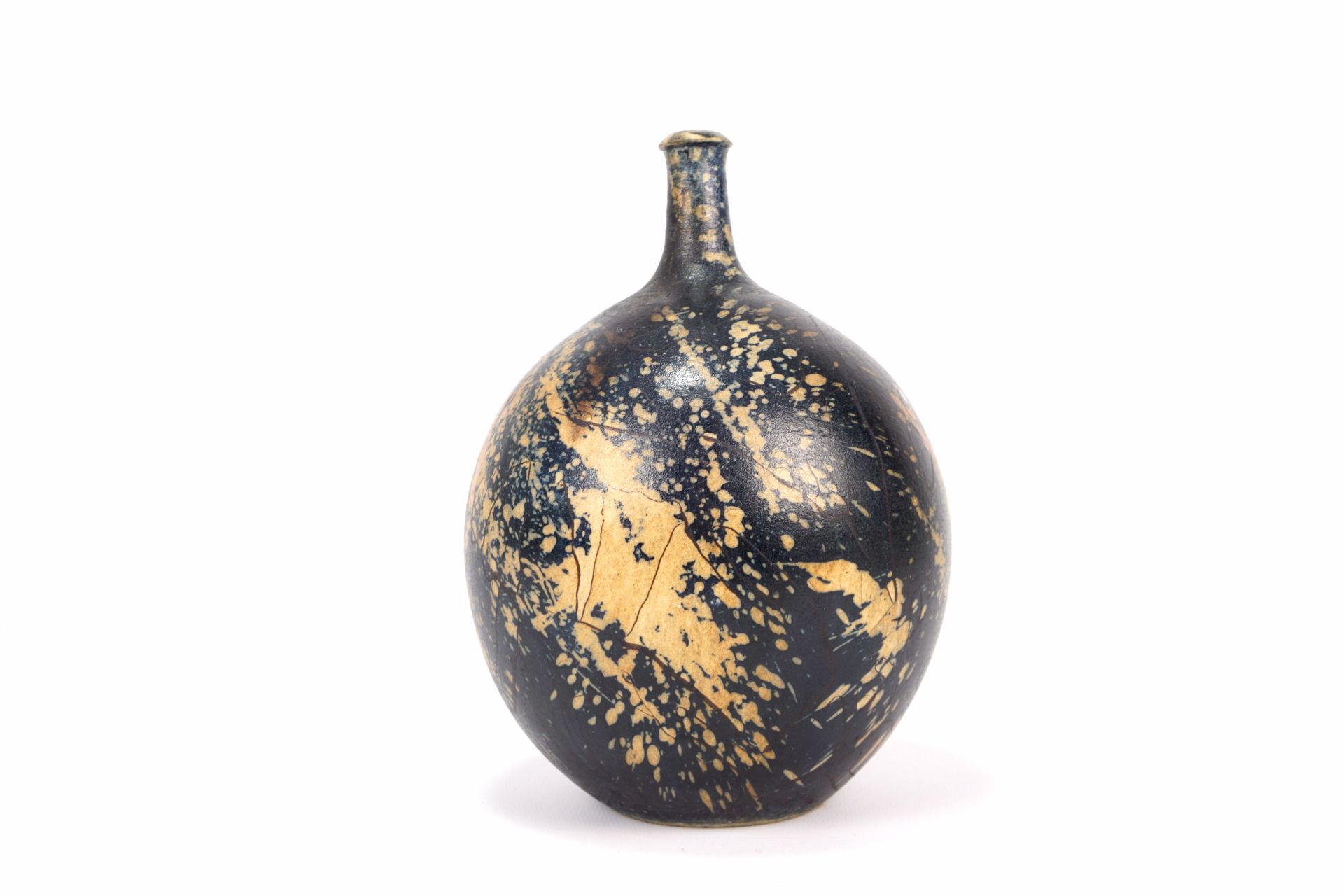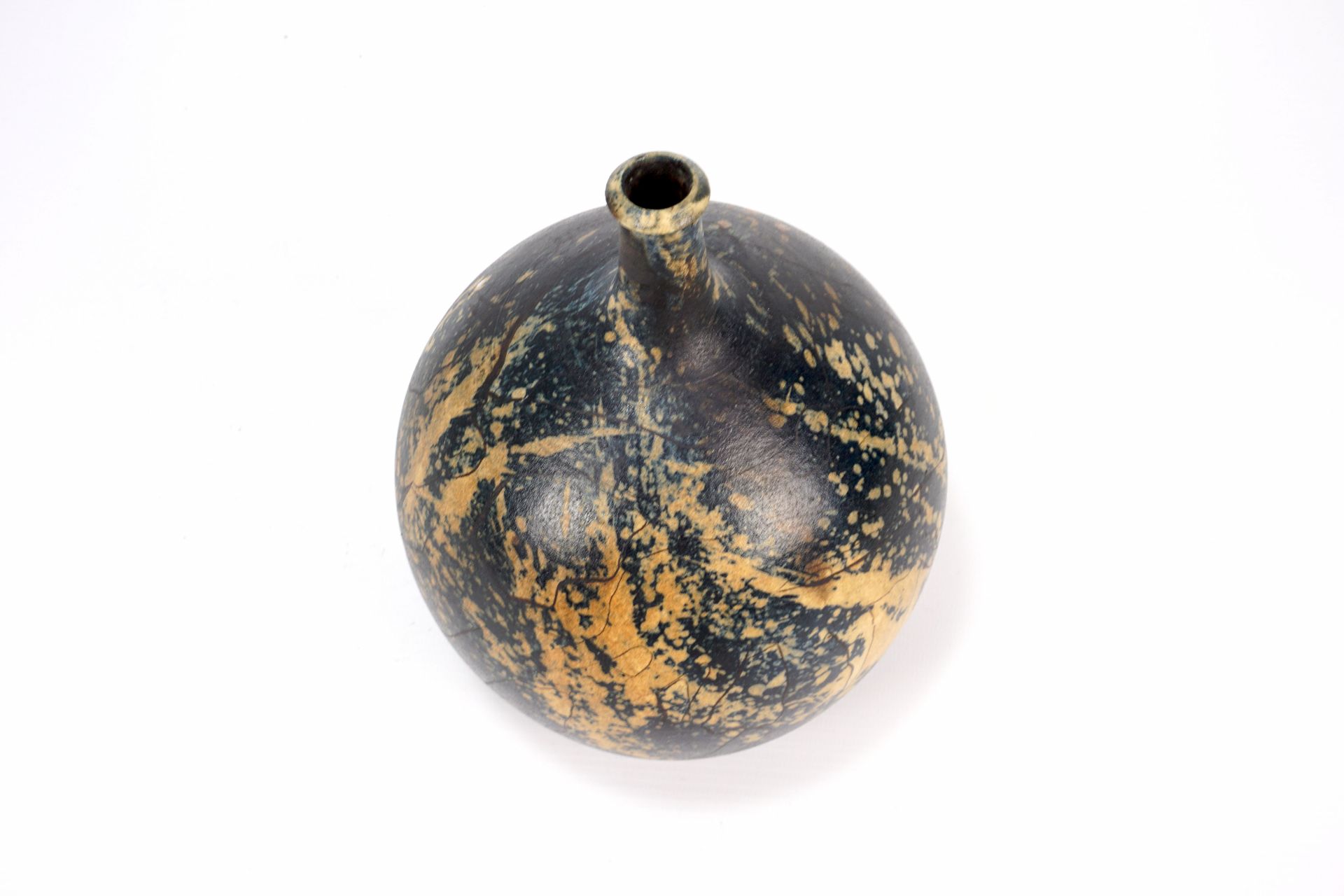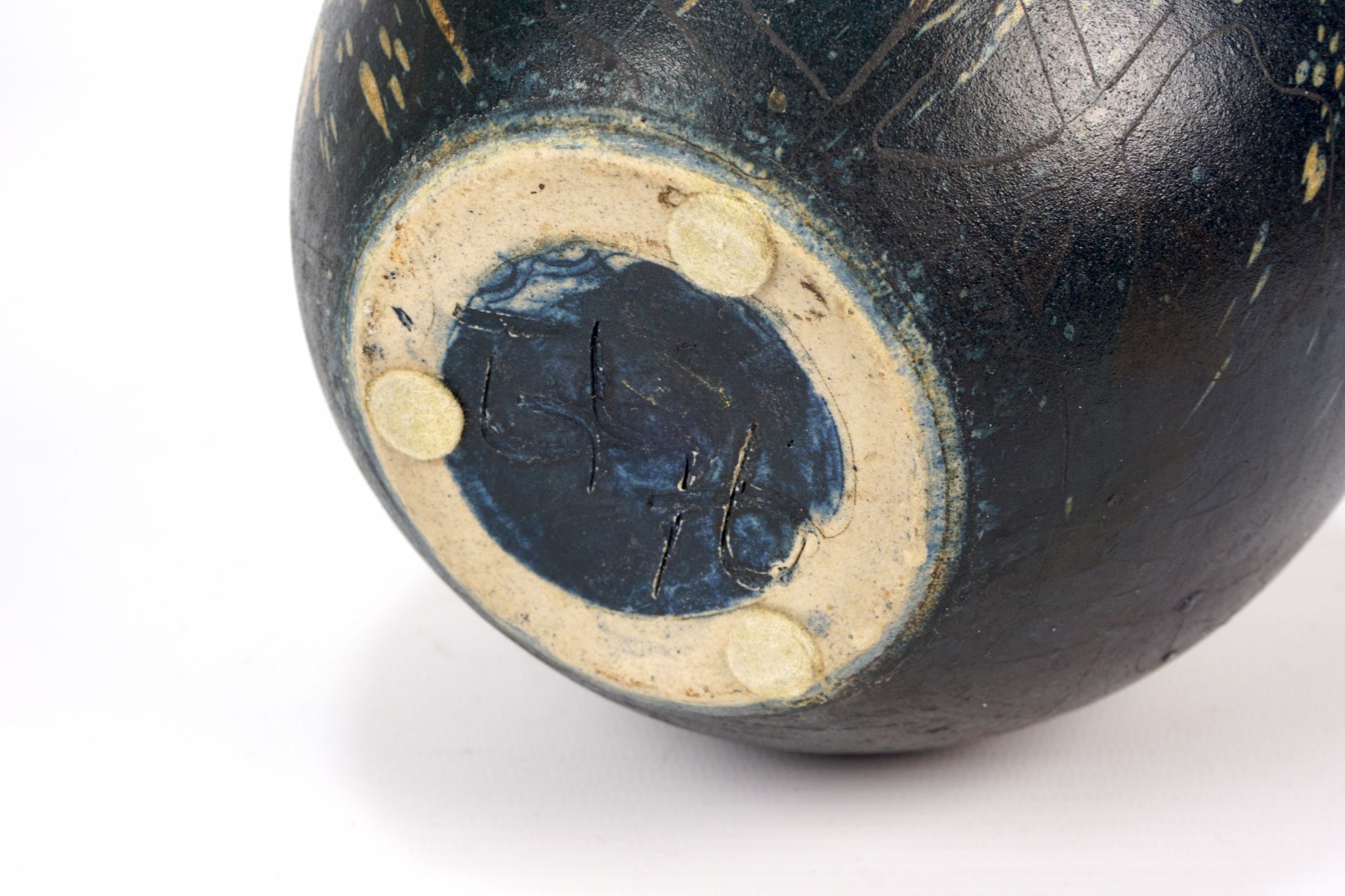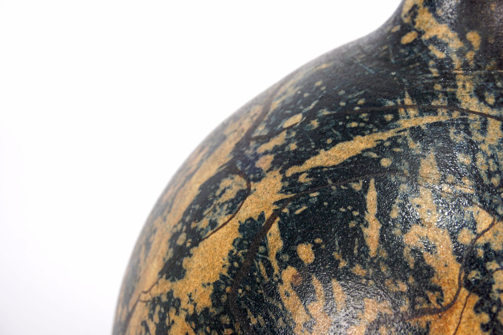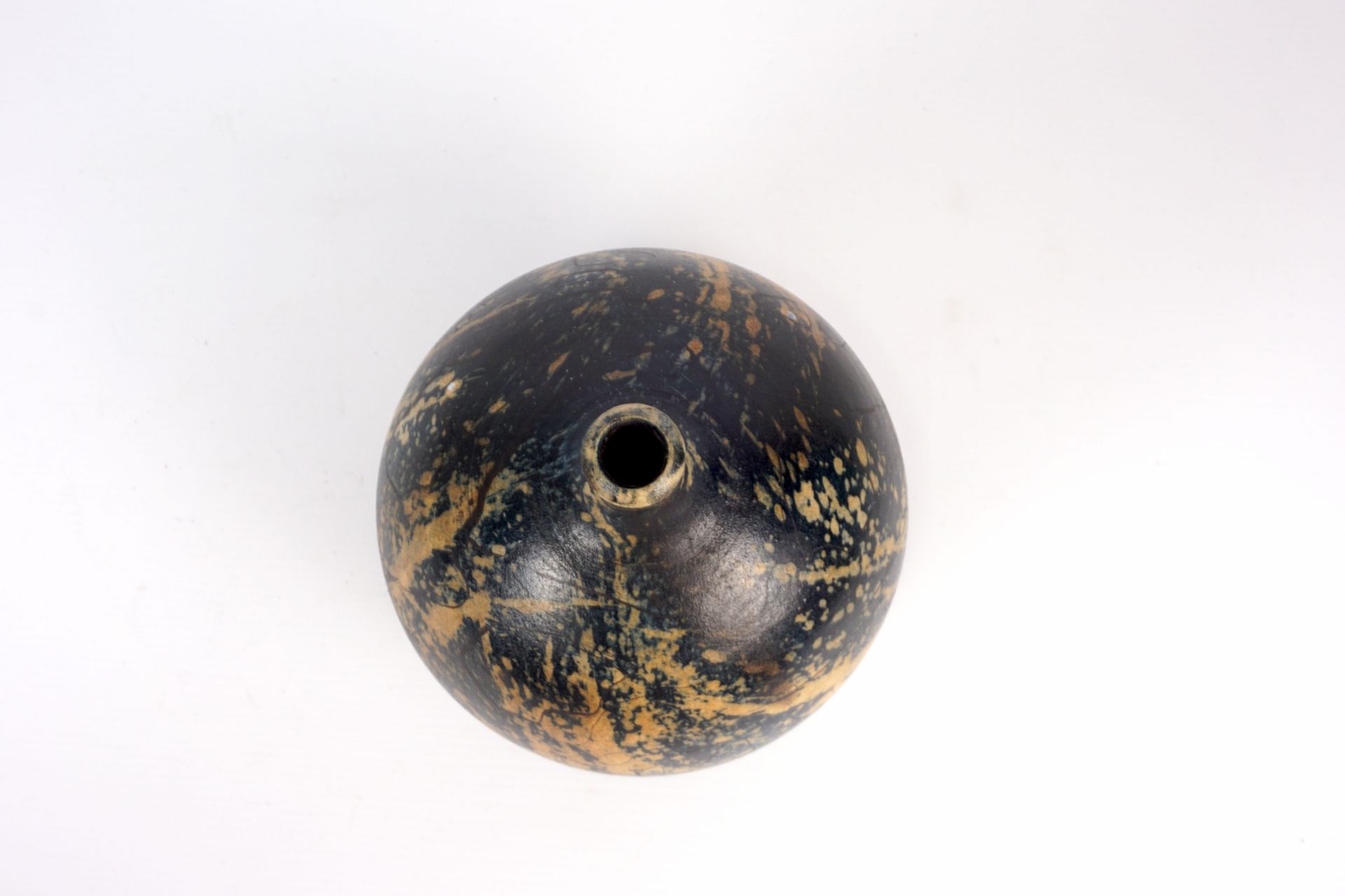 Sehr schöne Studiokeramik in Form einer Kugelvase mit schlankem Hals von 1976.