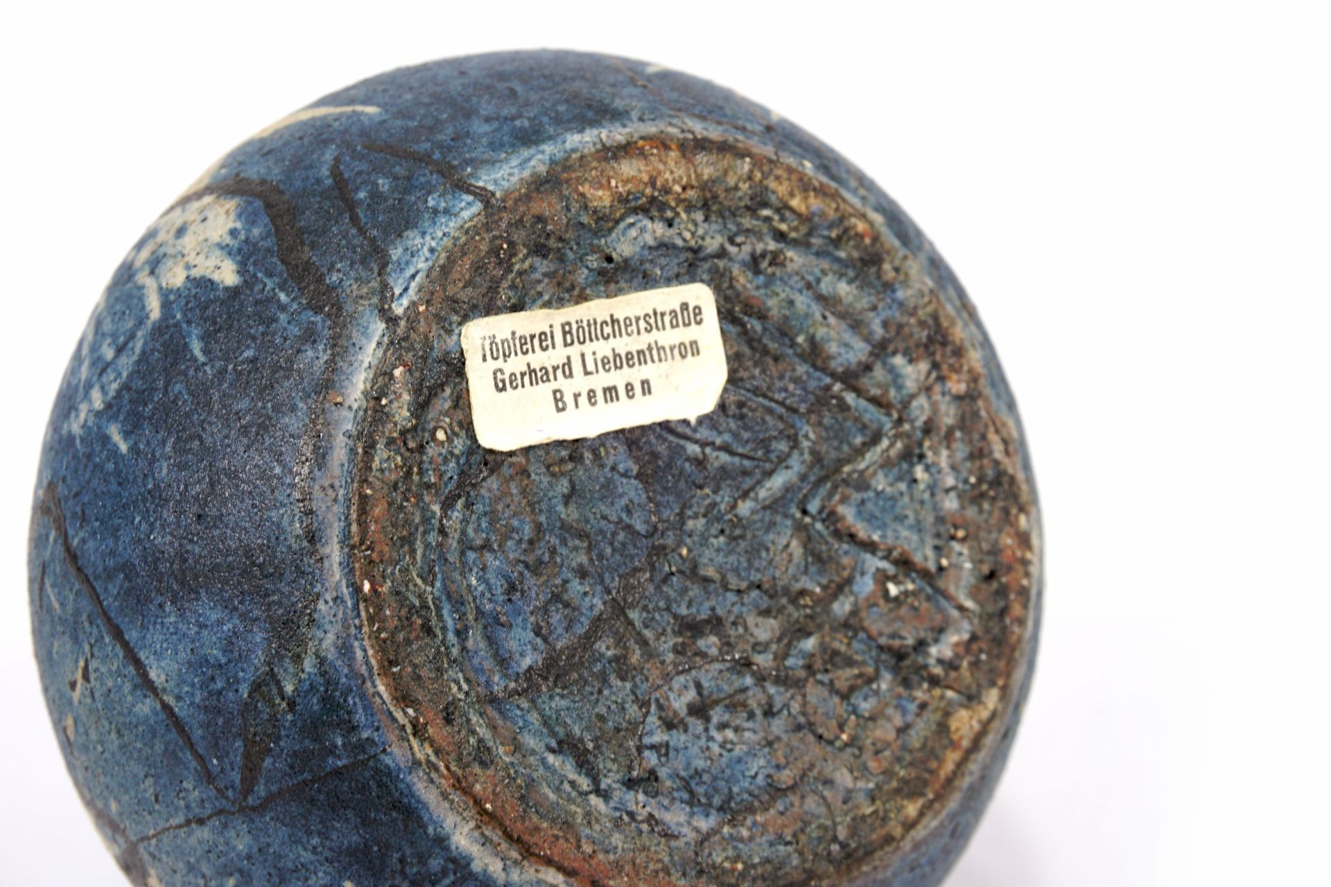 Liebenthron war ein Bremer Künstler (1925-2005) mit internationalen Ausstellungen und aussergewöhnlichen Keramiken. Expressive Glasur. Höhe 20 cm , Ø 14 cm. Unterseitig signiert mit GL und 76 für das Jahr 1976.