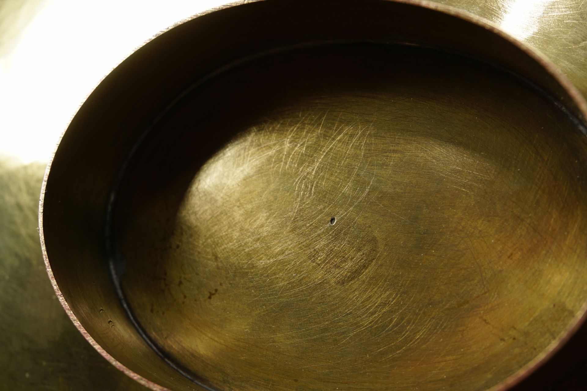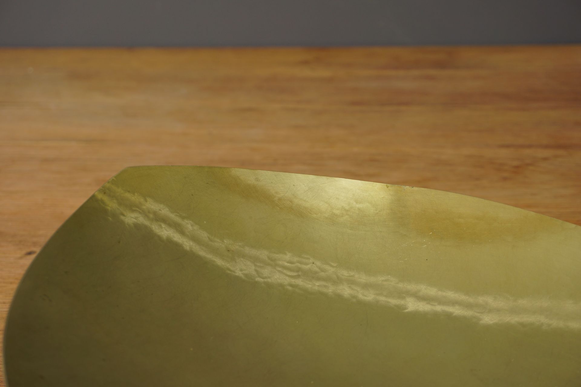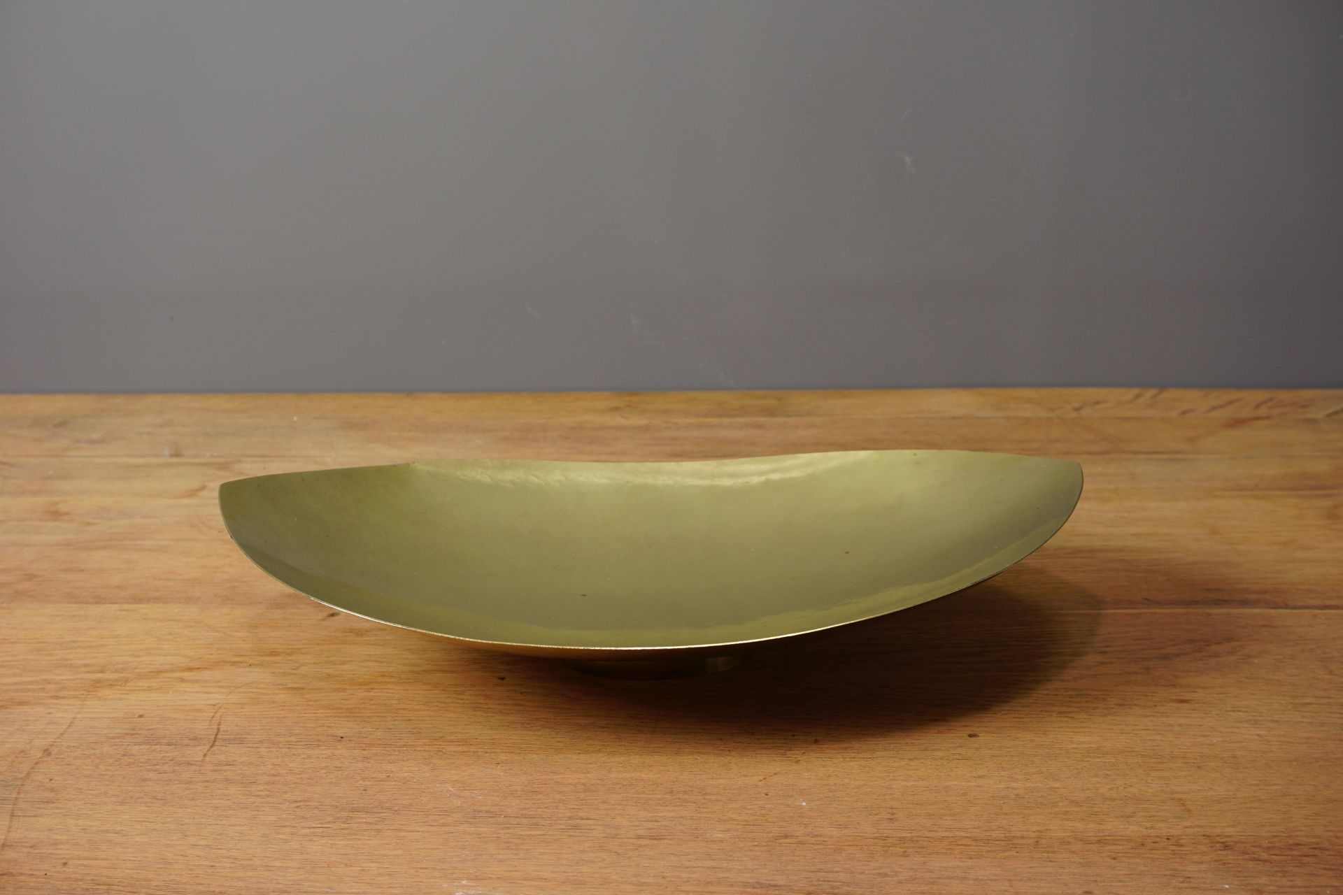 Die hier angebotene Schale dürfte in den 1930er Jahren gefertigt sein, und weist eine ungewöhnliche und elegante Bootsform auf. Messing handgetrieben mit ovalem Absatz.