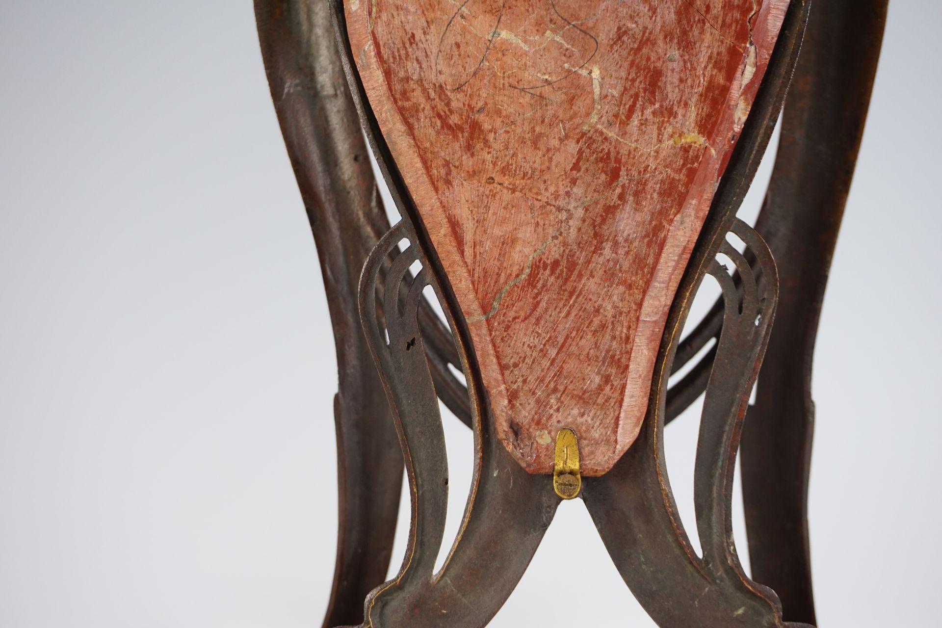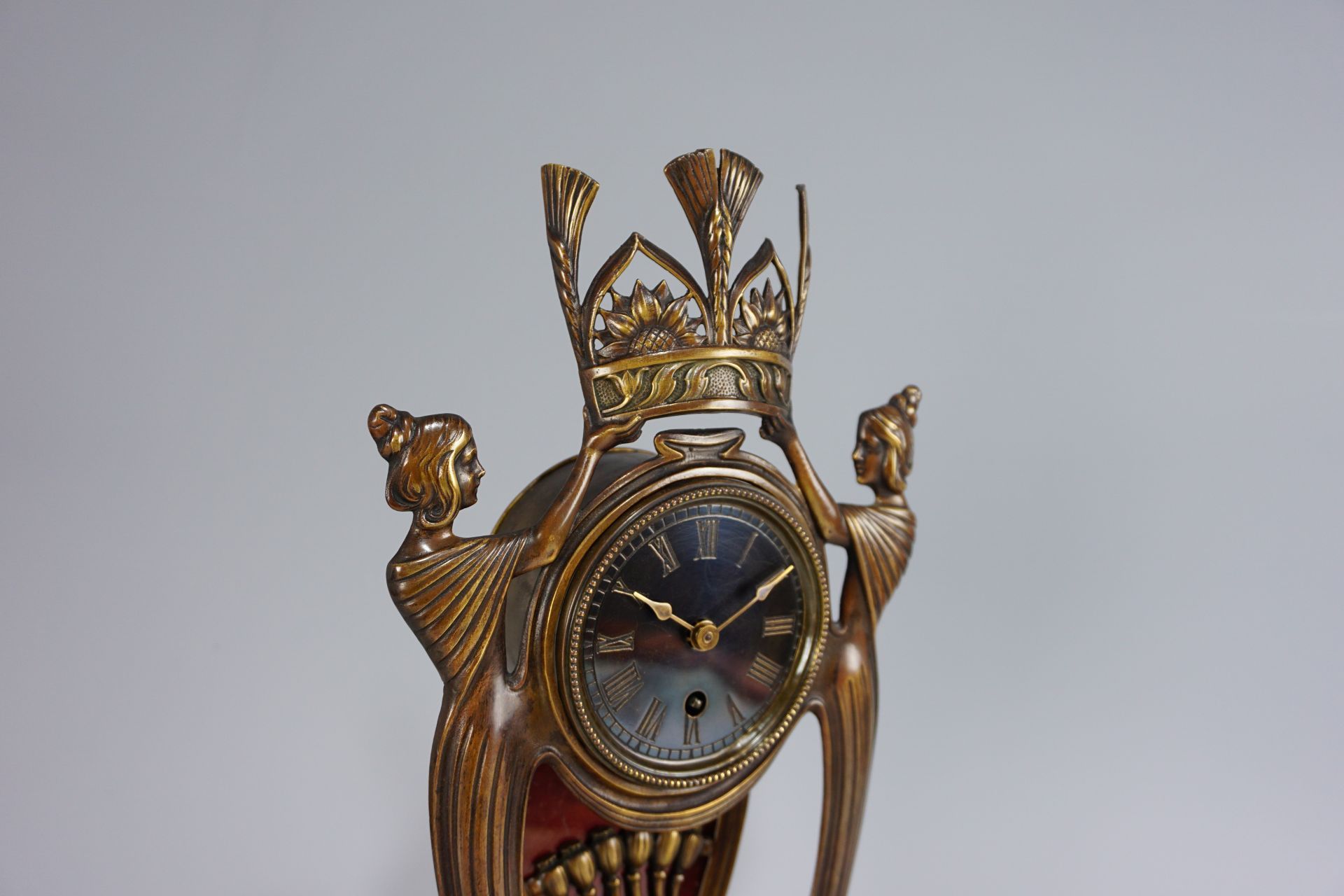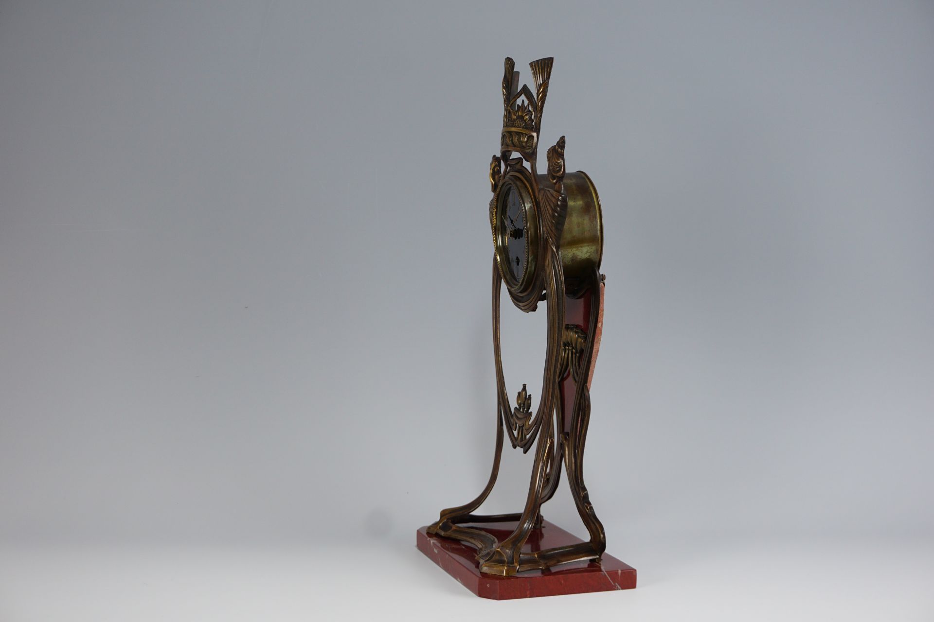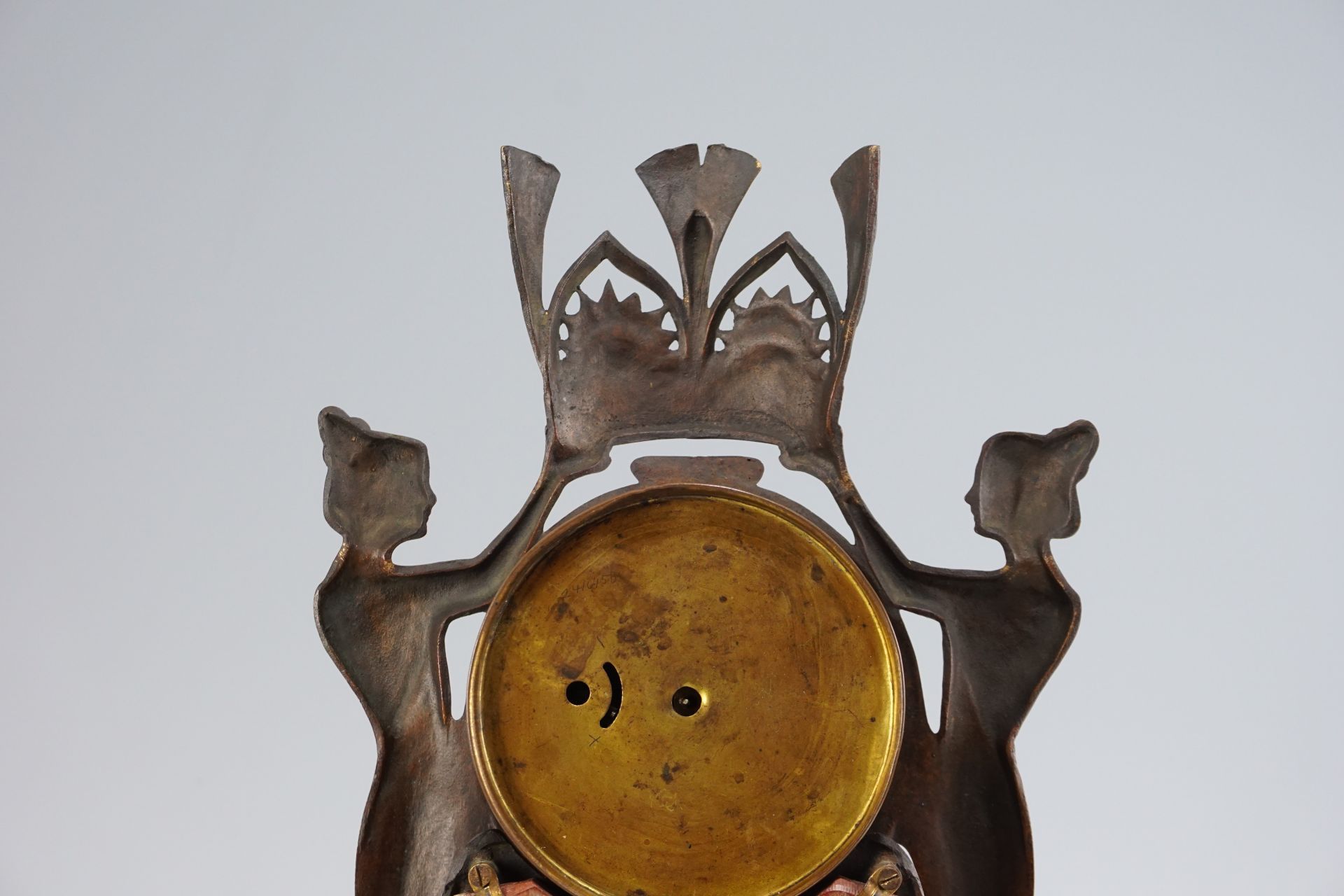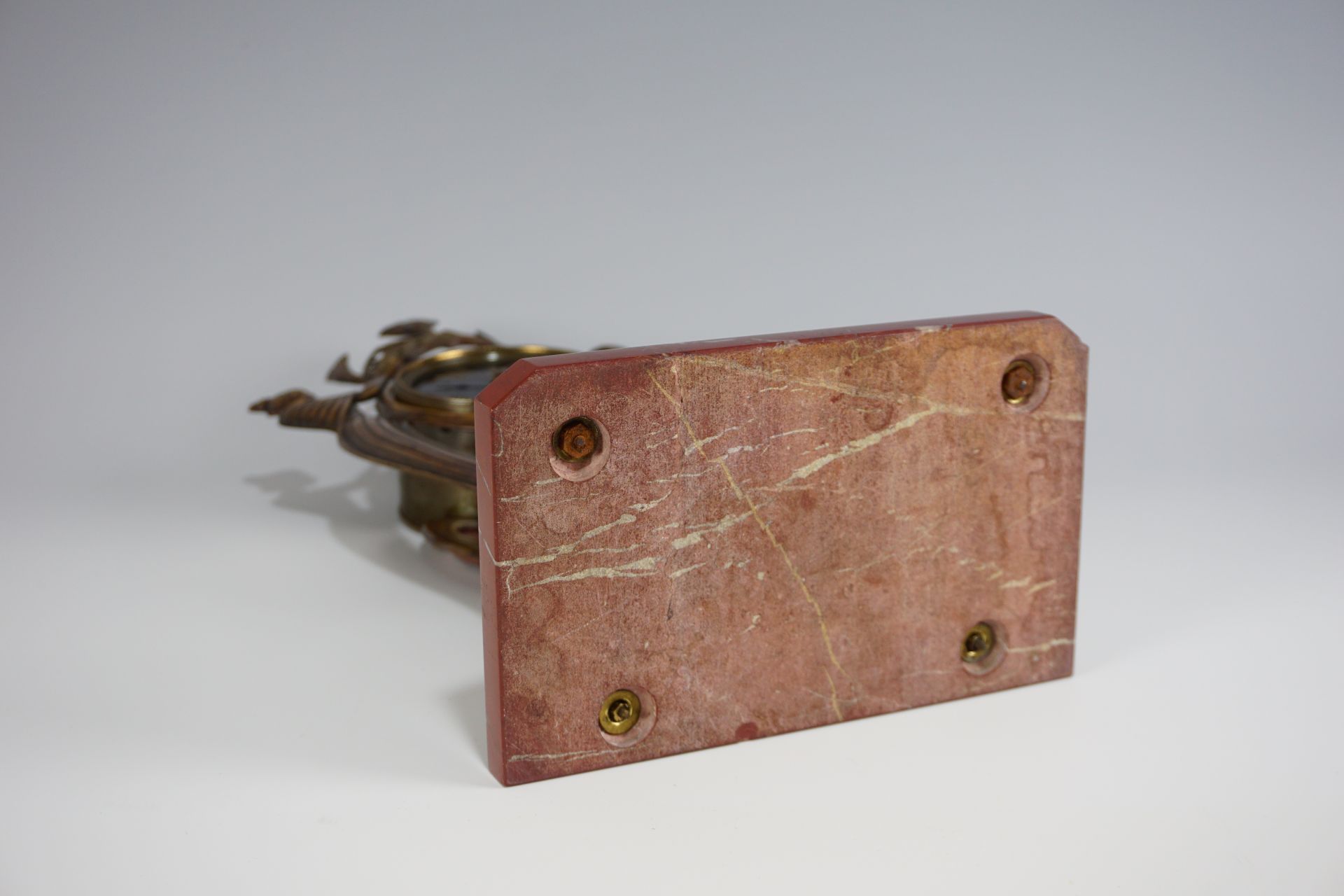 Junghans um 1890-1900. Rostroter Marmor in Kombination mit bronziertet Messingmontur.