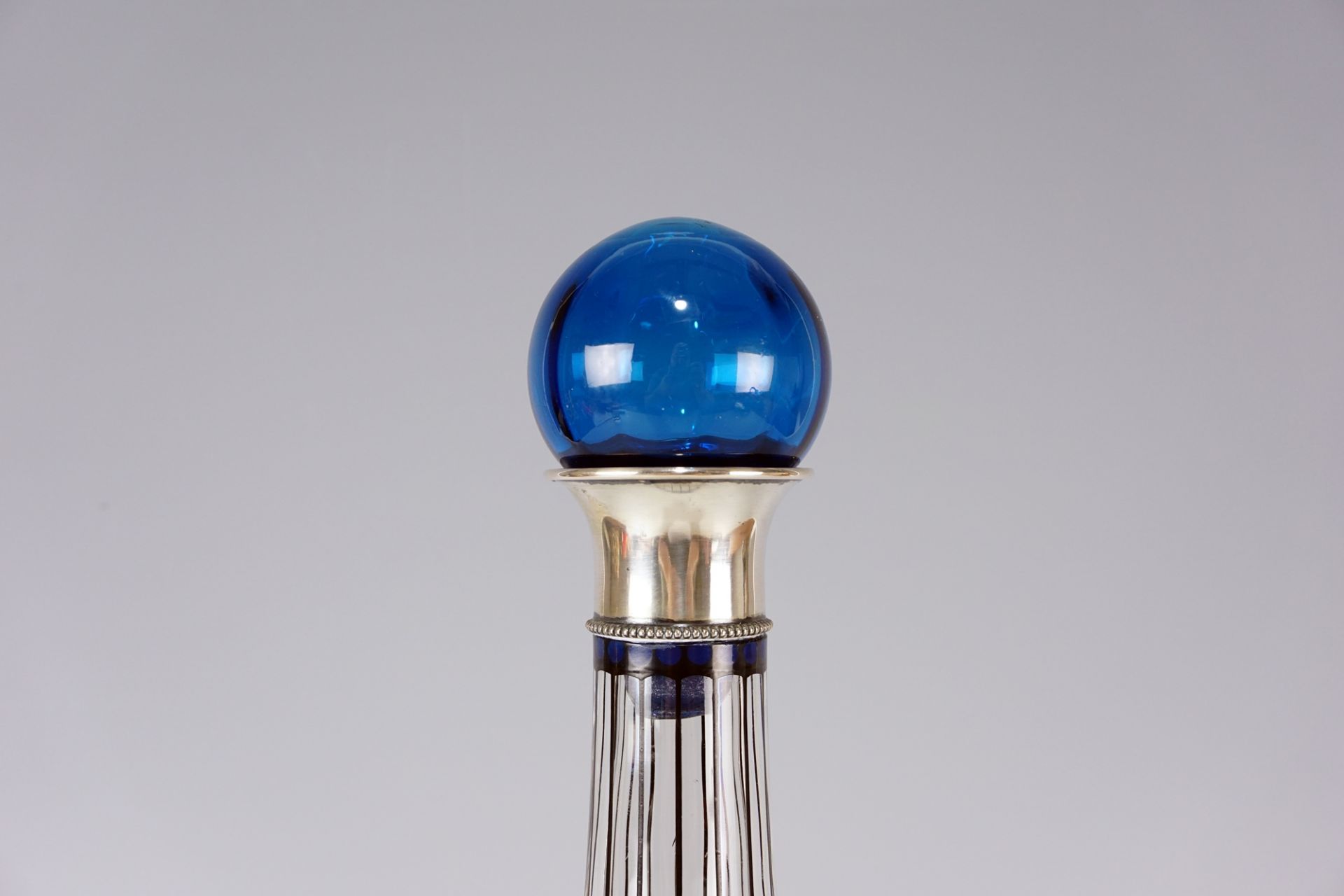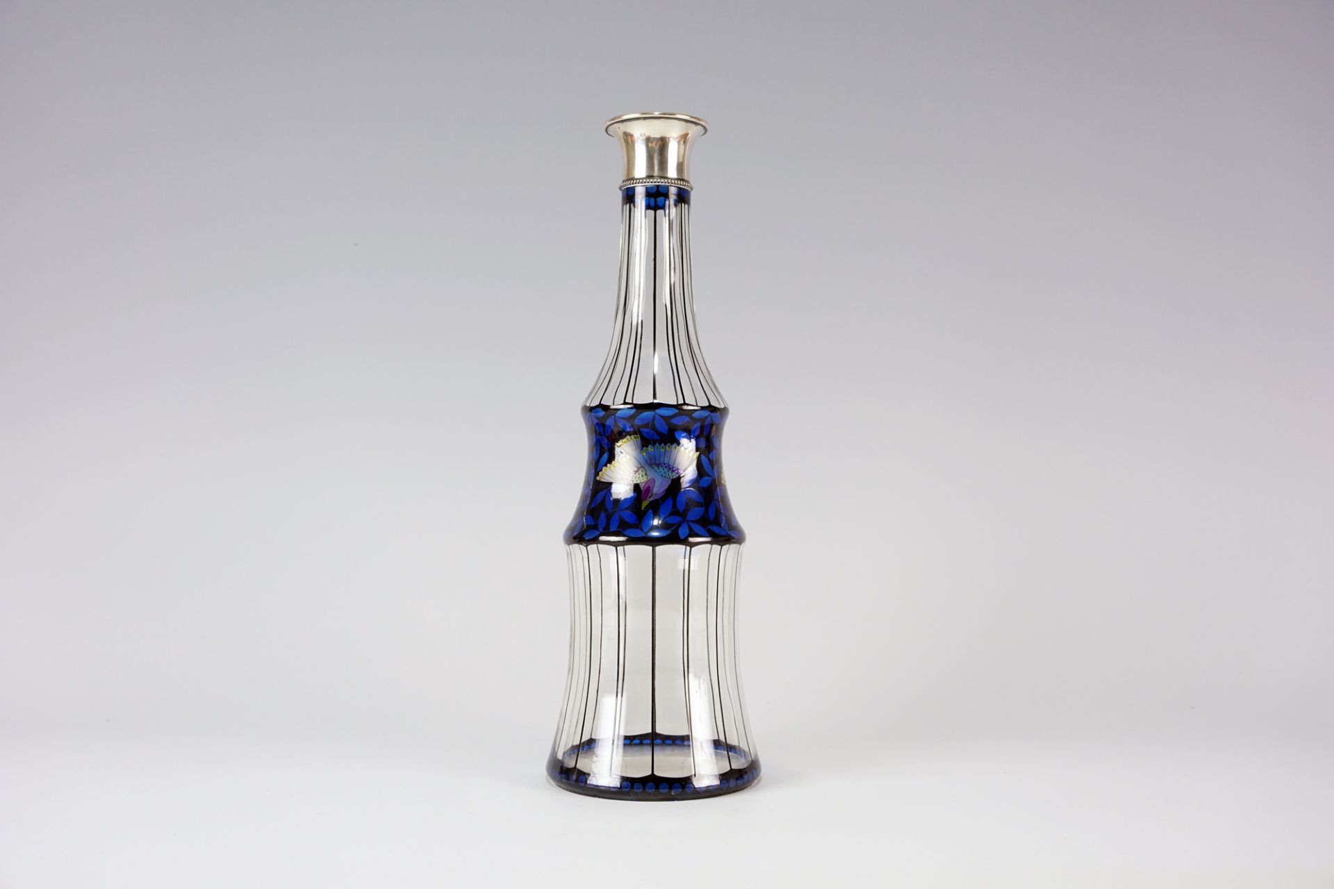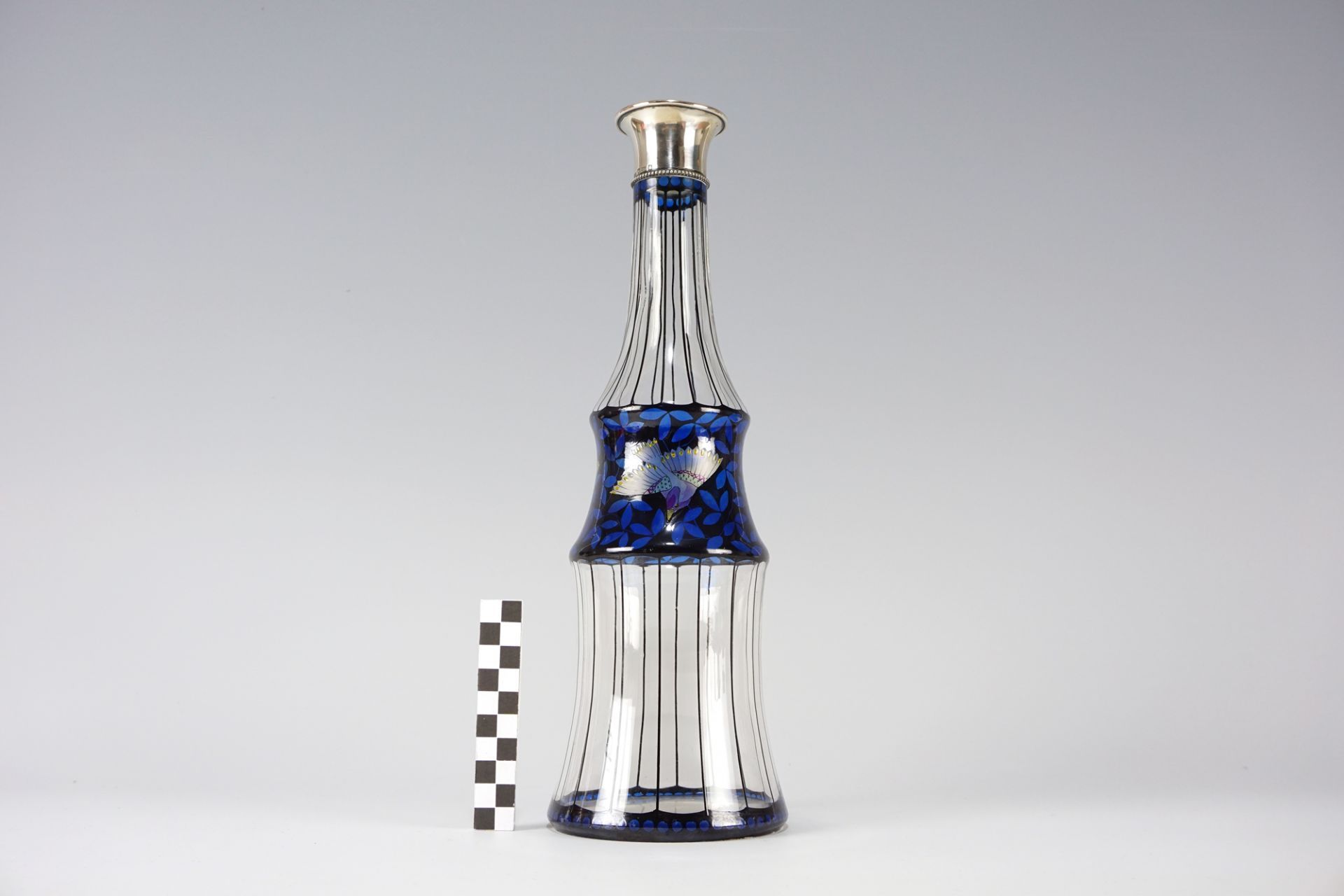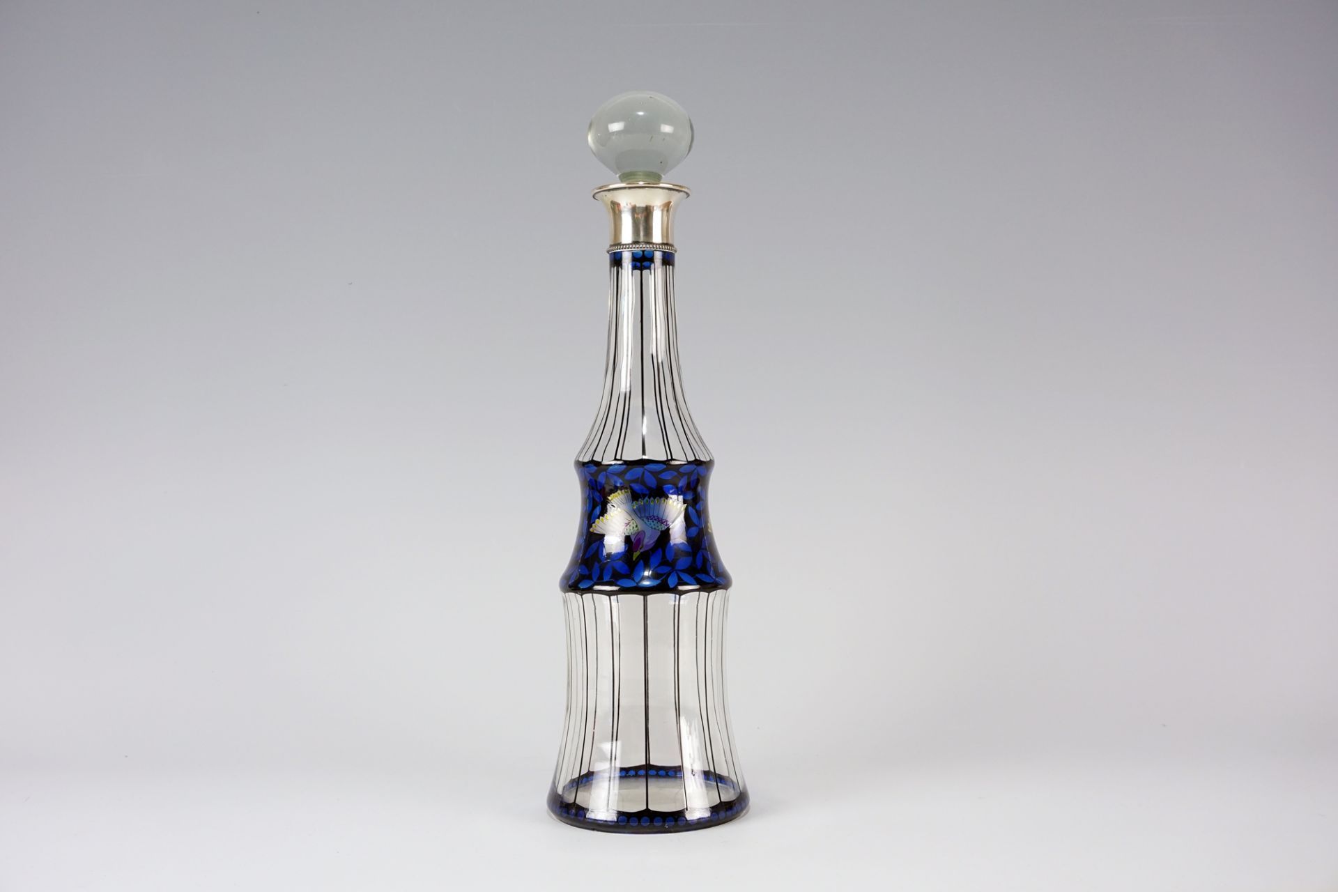 Äusserst elegante und schlanke Jugendstil Glaskaraffe mit Silbermontur.