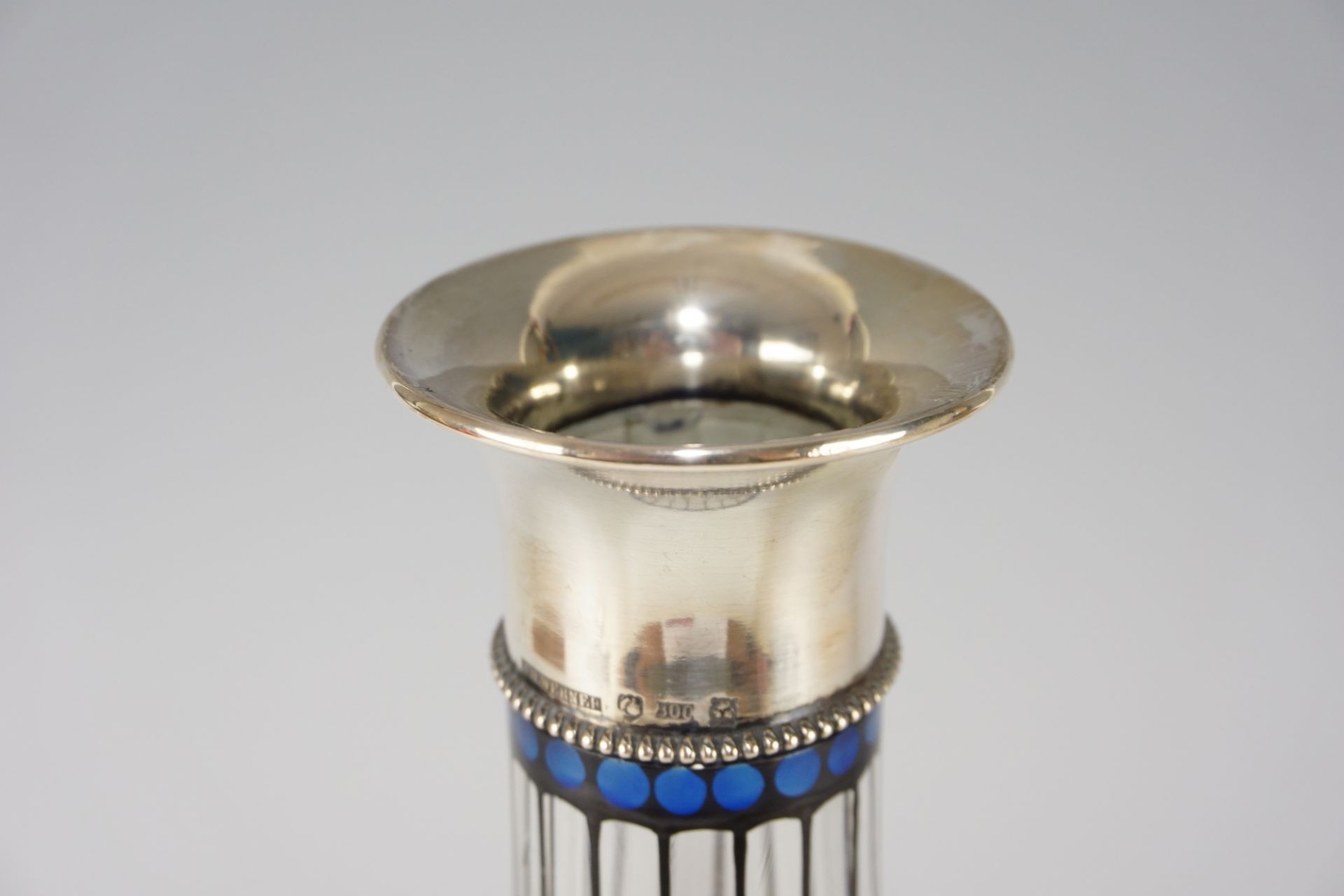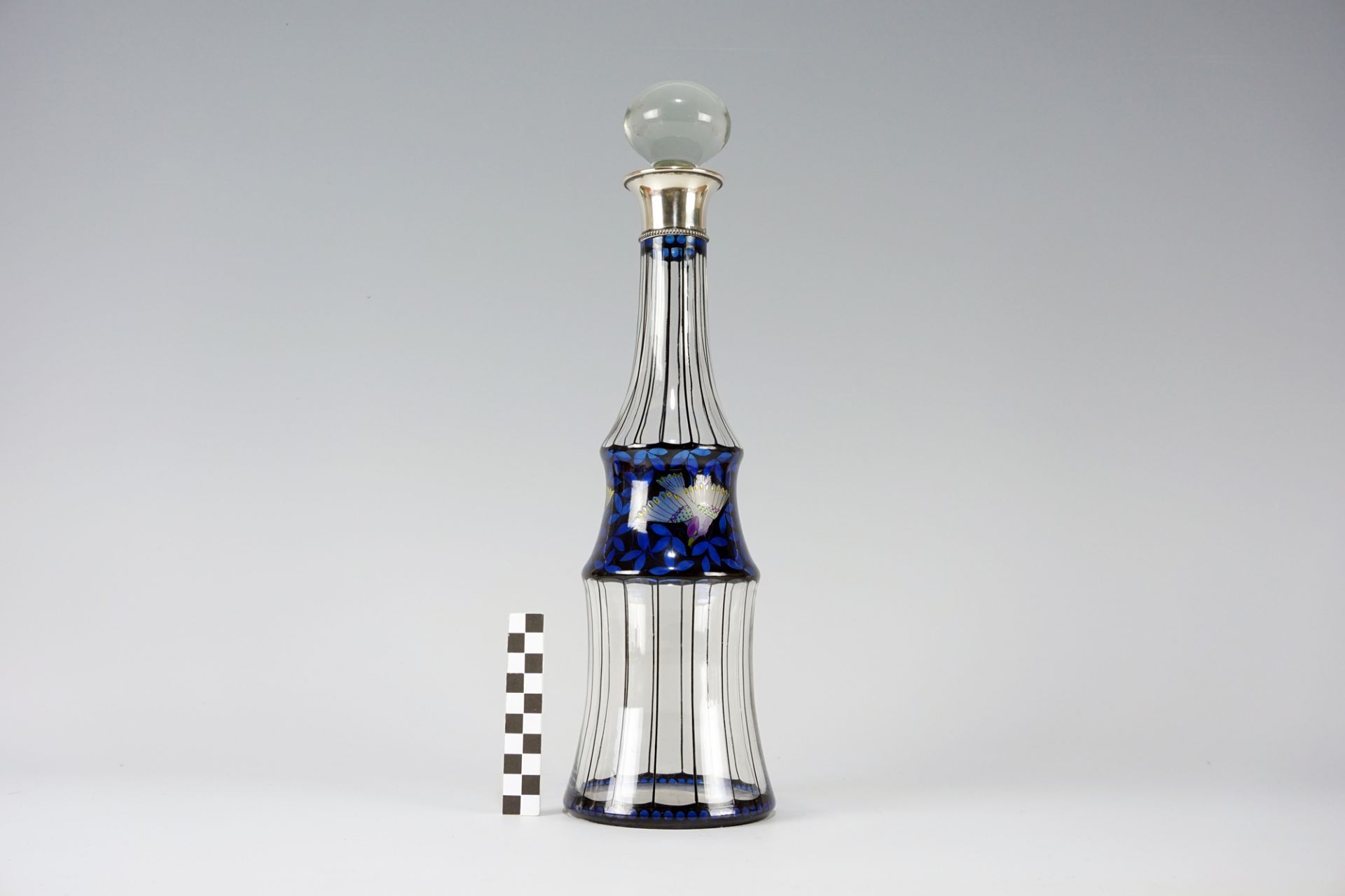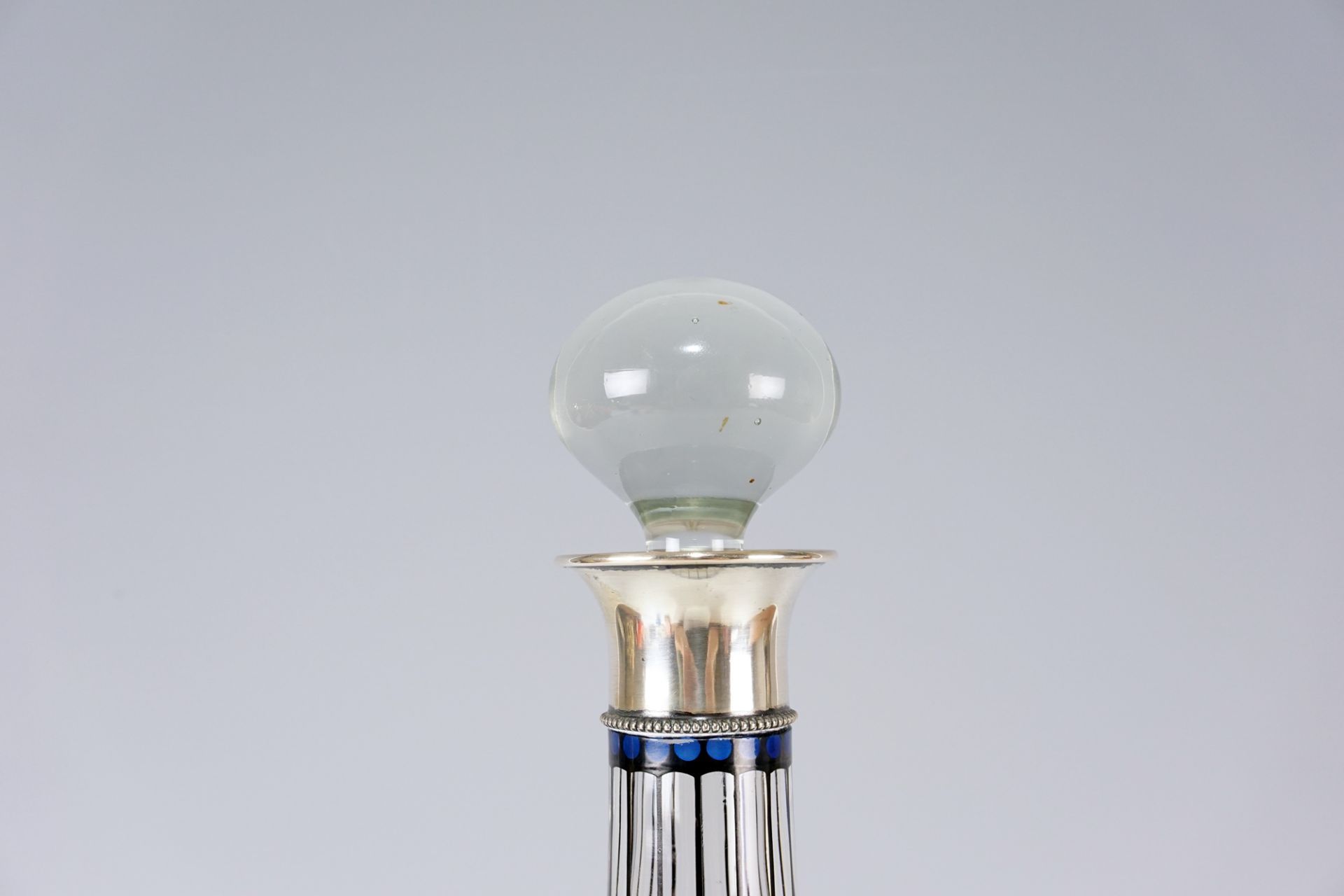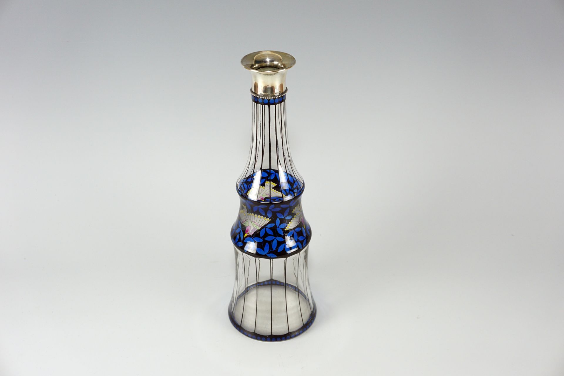 Äusserst elegante und schlanke Jugendstil Glaskaraffe mit Silbermontur.