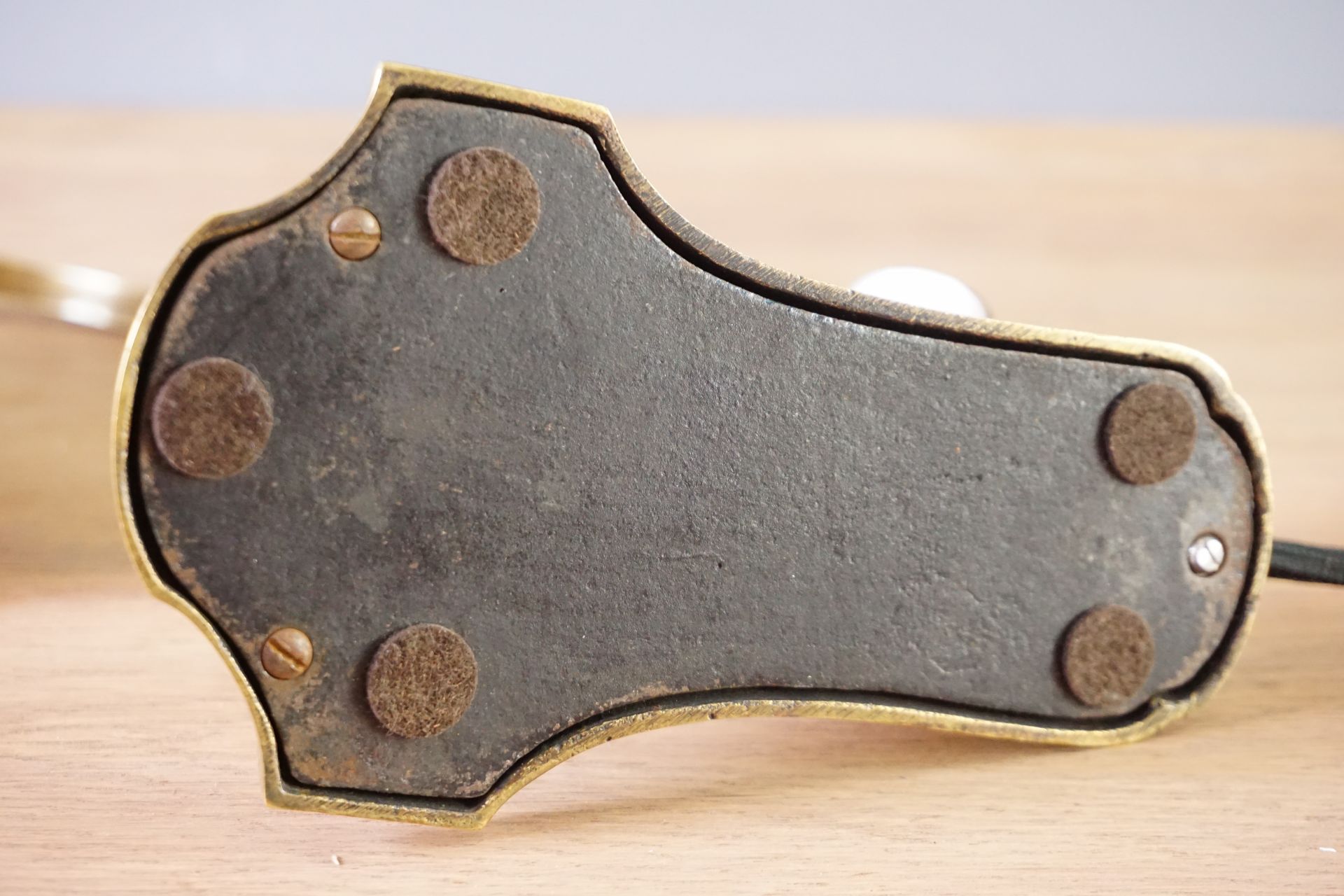 Sollten Sie die Leuchte im Sinne ihrer eigentlichen Funktion nutzen wollen, müssten Sie diese von einem zertifizierten Fachmann überprüfen lassen. Die verbauten Komponenten wie Fassung und Wippschalter sind ebenso alt (~ 100 Jahre) und entsprechen mitunter nicht mehr aktuellen Normen und sind im Sinne eines Sammlerobjektes natürlich noch Bestandteil der Leuchte. Gerade der Wippschalter ist speziell.
