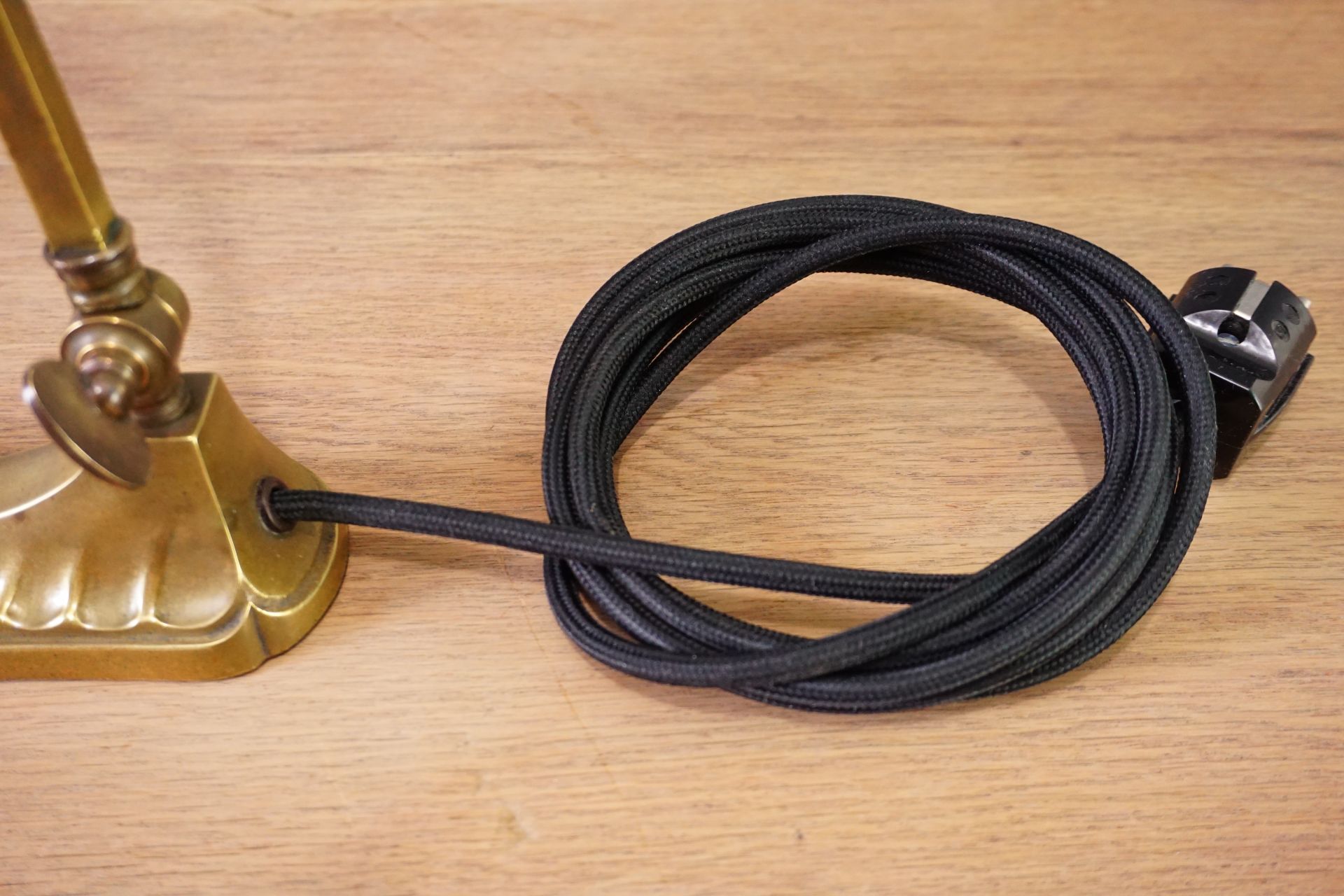 Die Lampe besteht aus massivem Messing und ist mehrfach verstellbar.