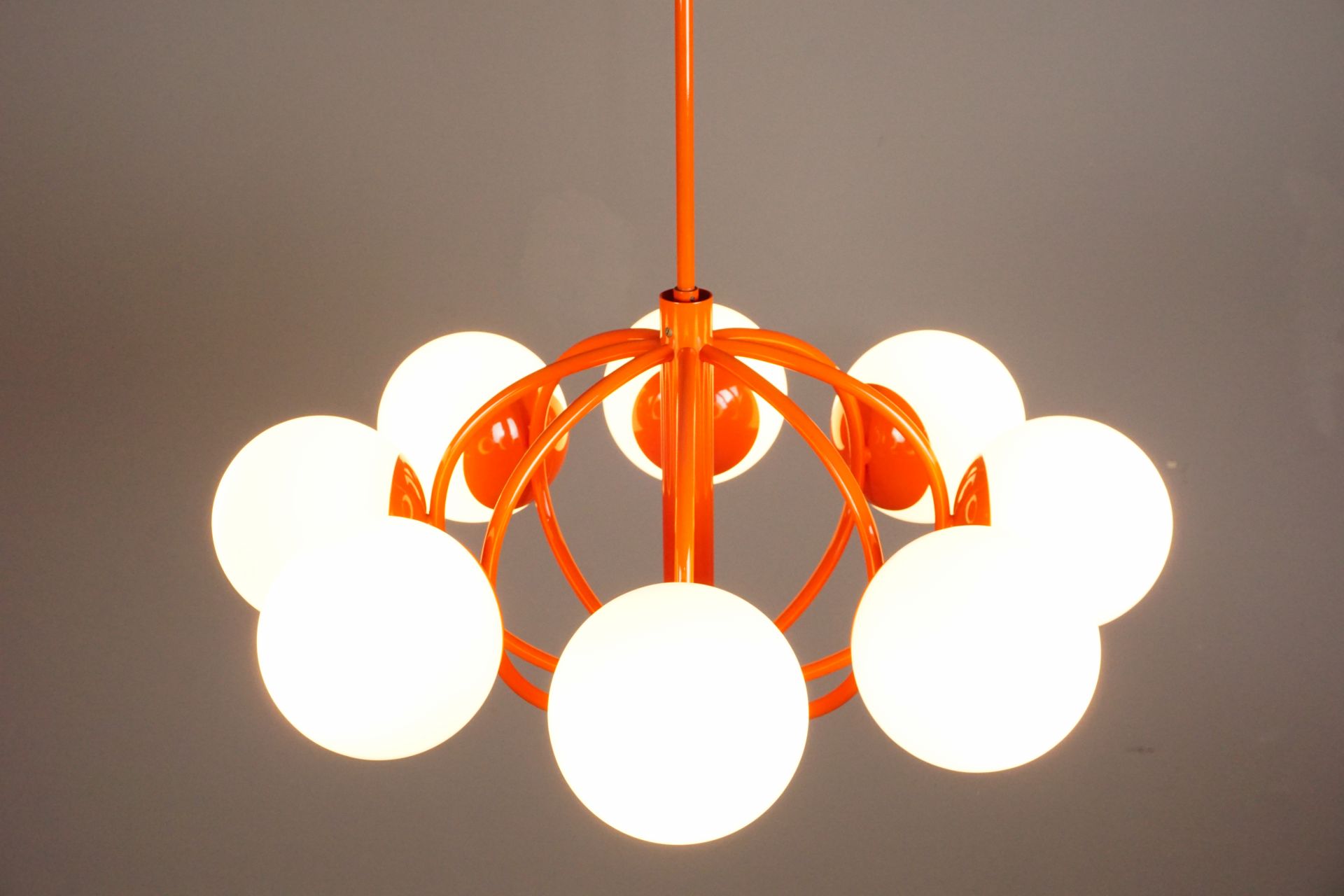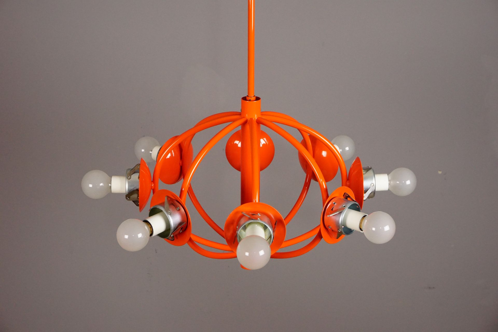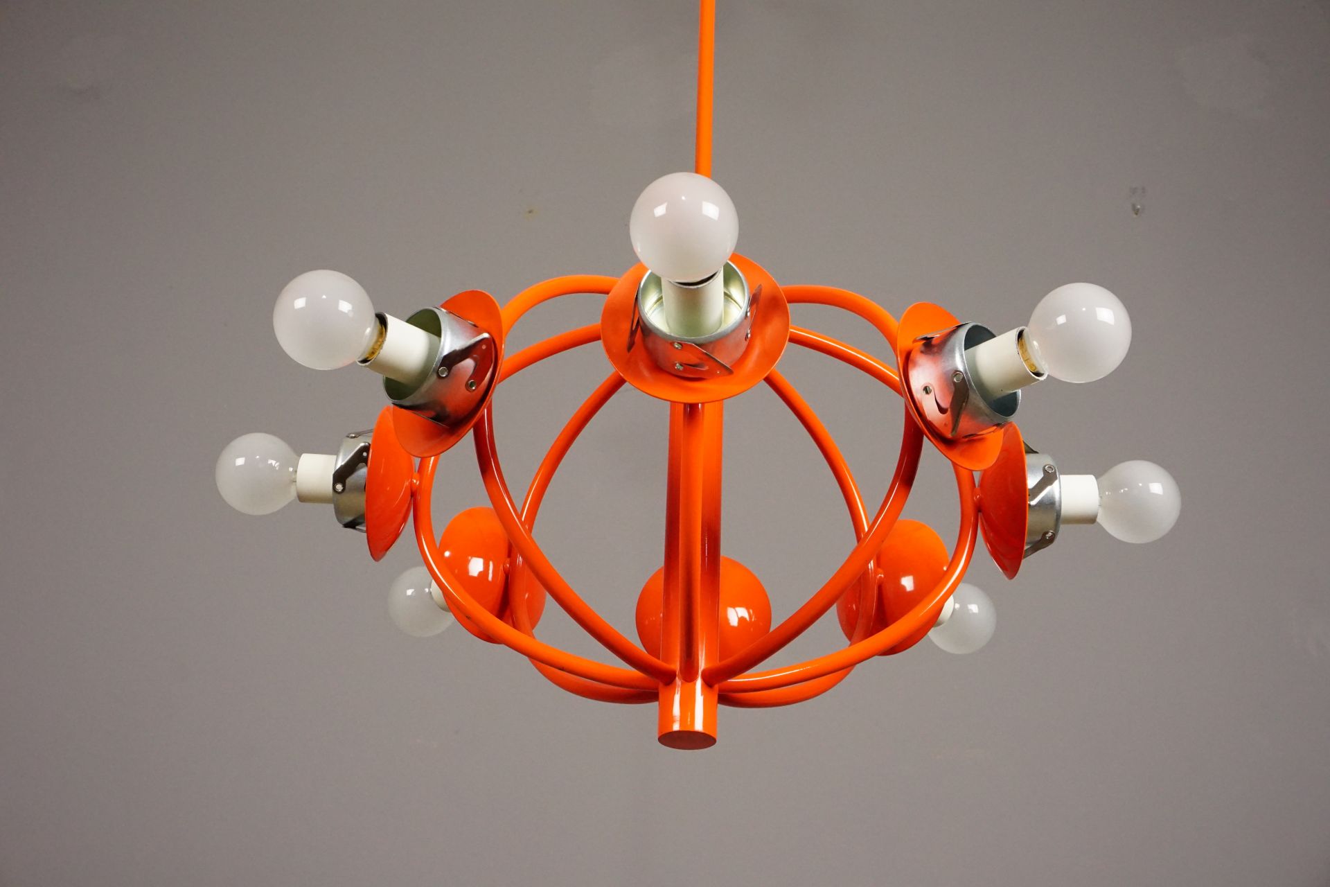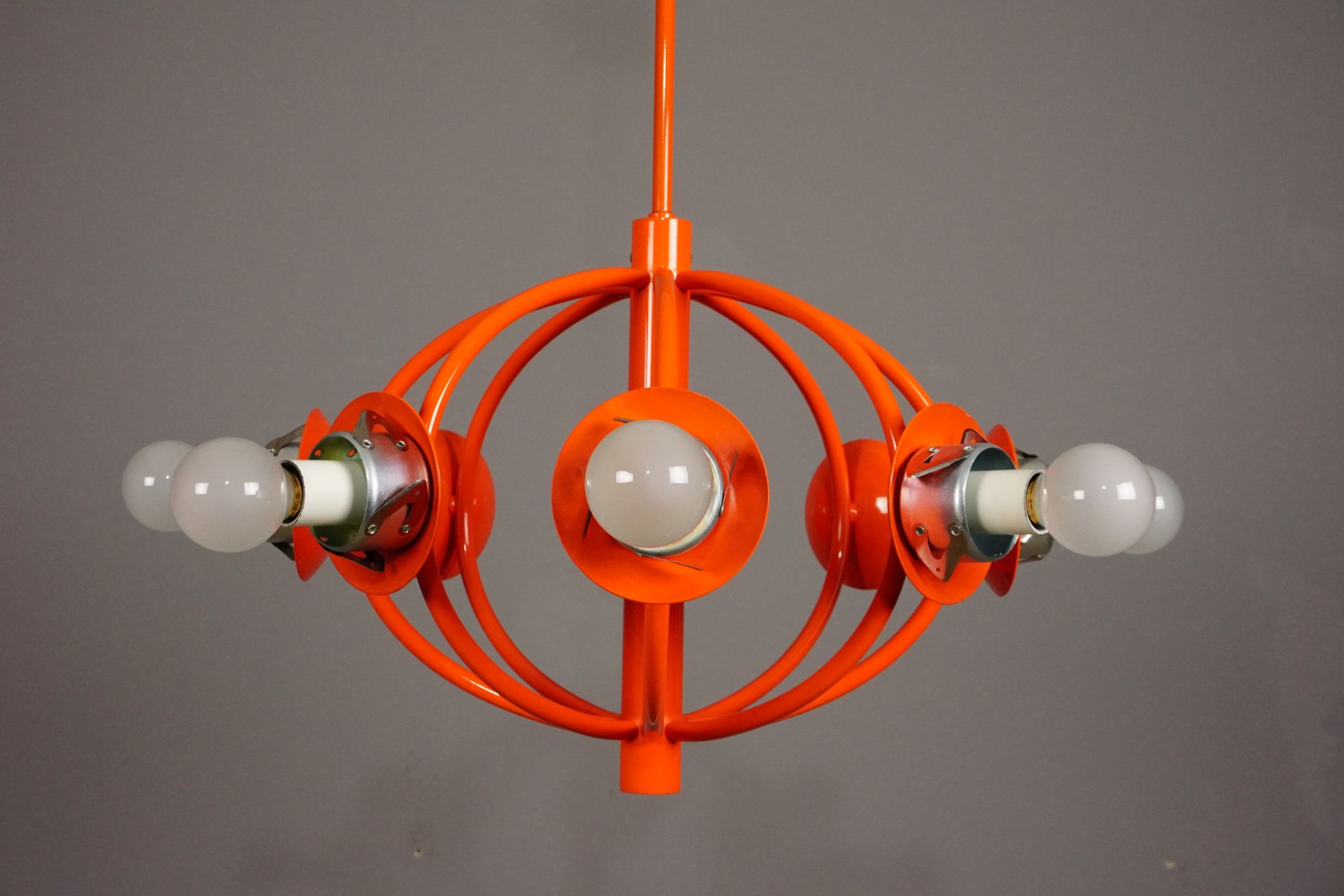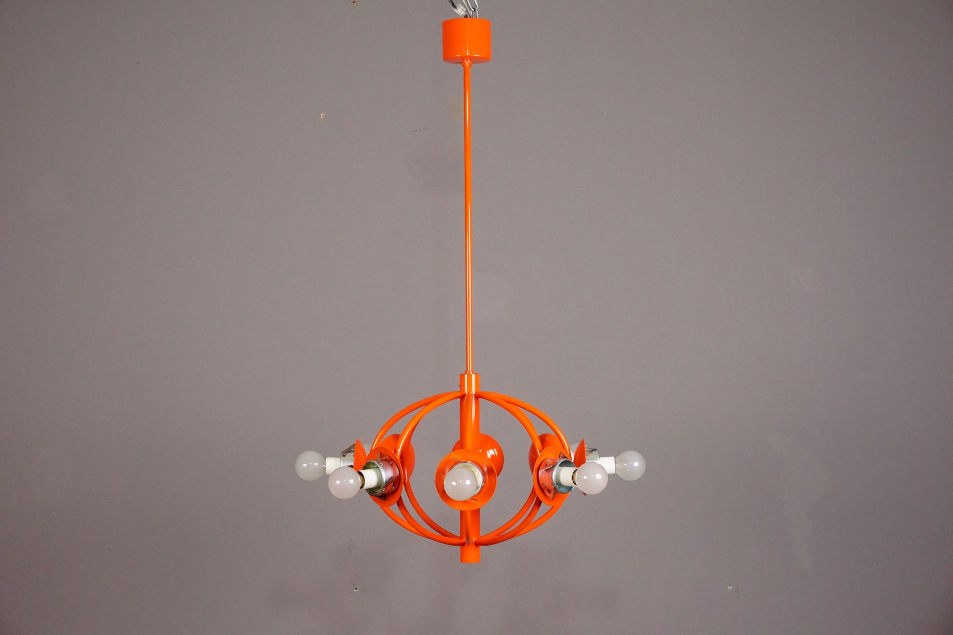 Angeboten wird diese wunderschöne Deckenleuchte im Orbitdesign der 1960er/70er Jahre.