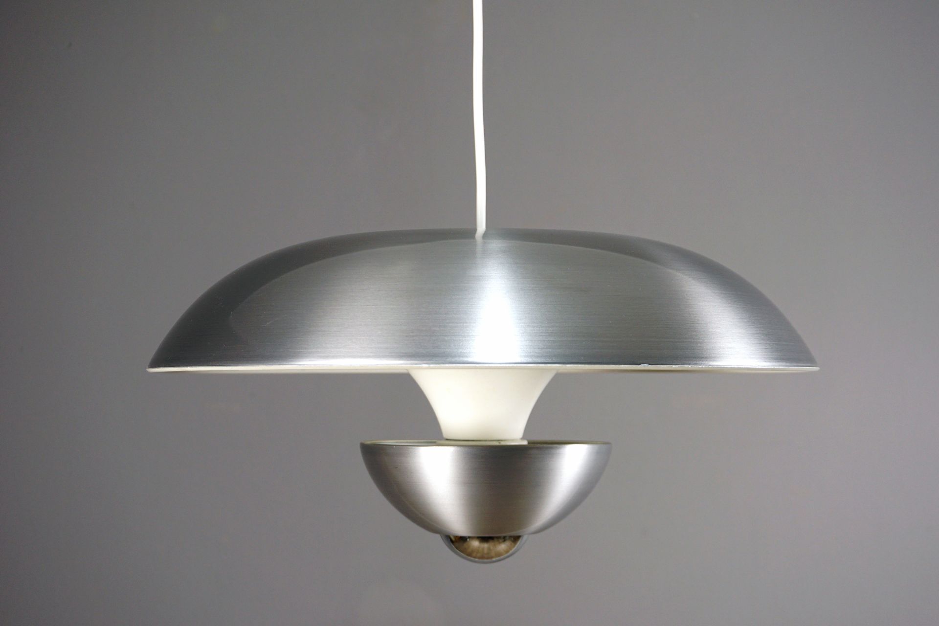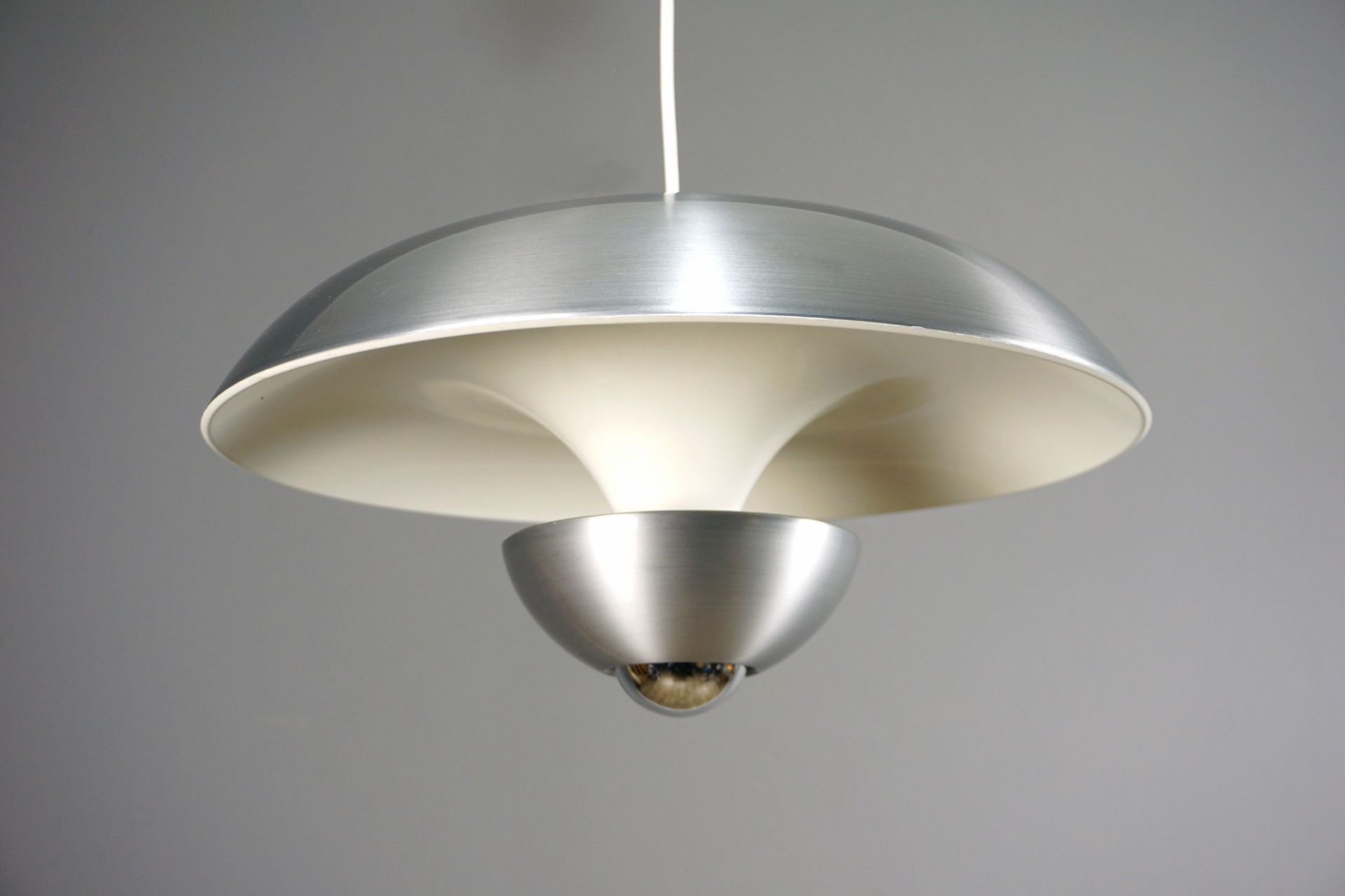 Neben dem grandiosen Design besticht die Kaiser Leuchte auch durch die Farbgebung...pures gebürstetes silbriges Aluminium, welches das damalige Zeitalter der Entdeckung des Weltalls besser wiederspiegelt als jegliche bunte Farbgebung.